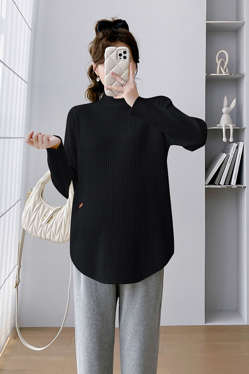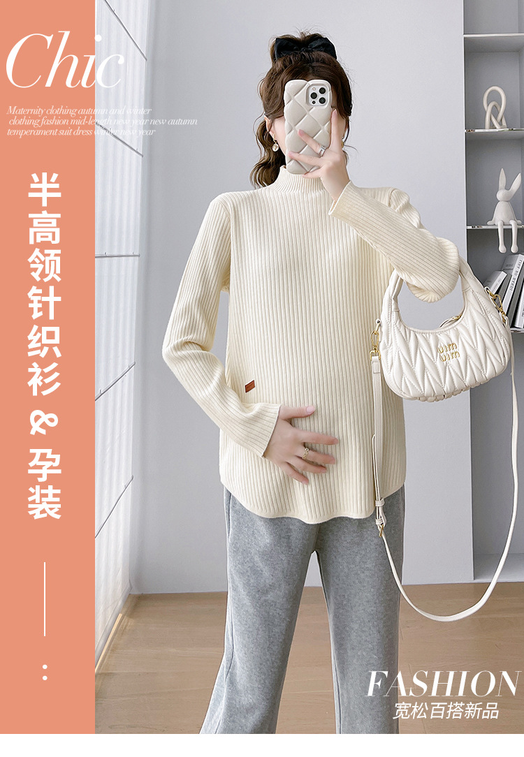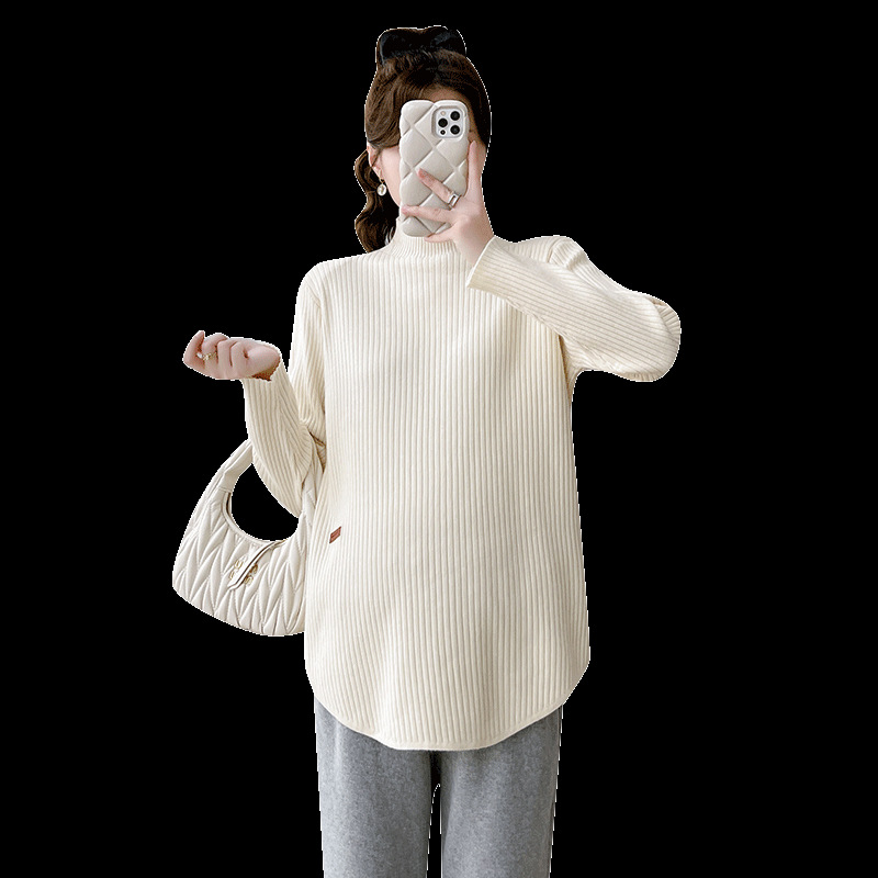 Базовая рубашка для беременных, осенне-зимняя верхняя одежда, маленький свитер с высоким воротом, вязаный Топ с длинным рукавом для кормления грудью, весна и осень