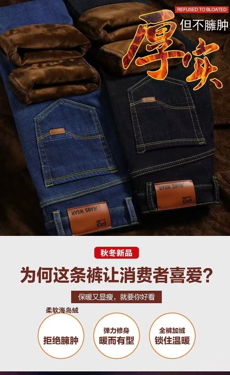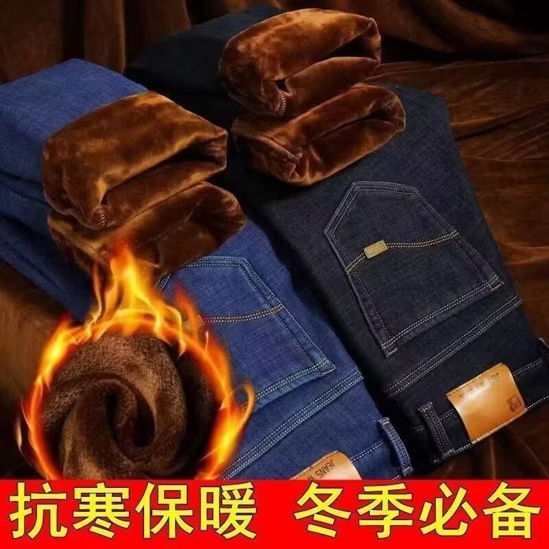 Пятно плюшевые толстые джинсы оптом мужской осень-зима новый прямой теплый мужской зимний отдых