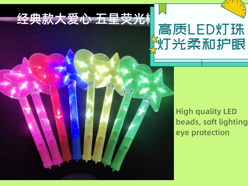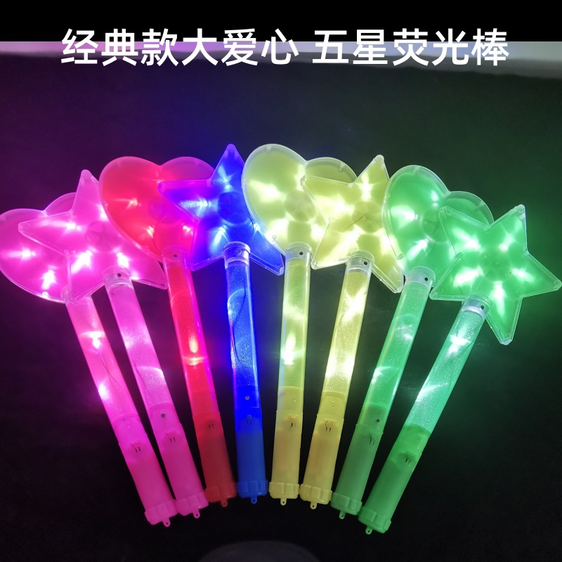 Классическая плоская светящаяся палочка в форме сердца и пятиконечной звезды для концертов, детская светящаяся игрушка, реквизит для выступлений, ручной светильник