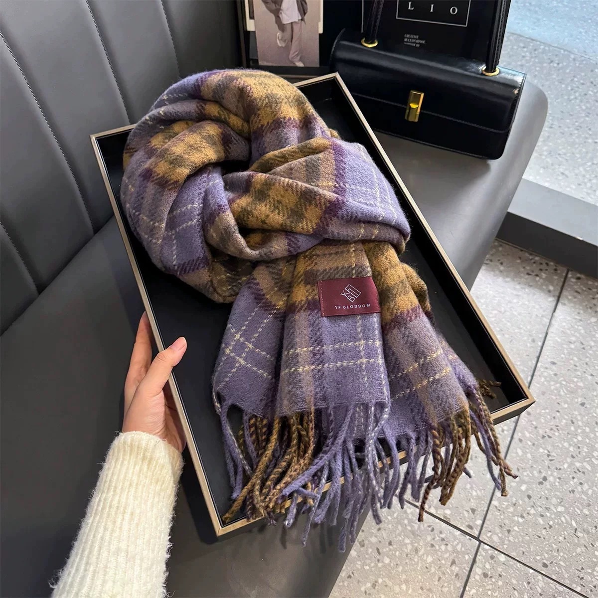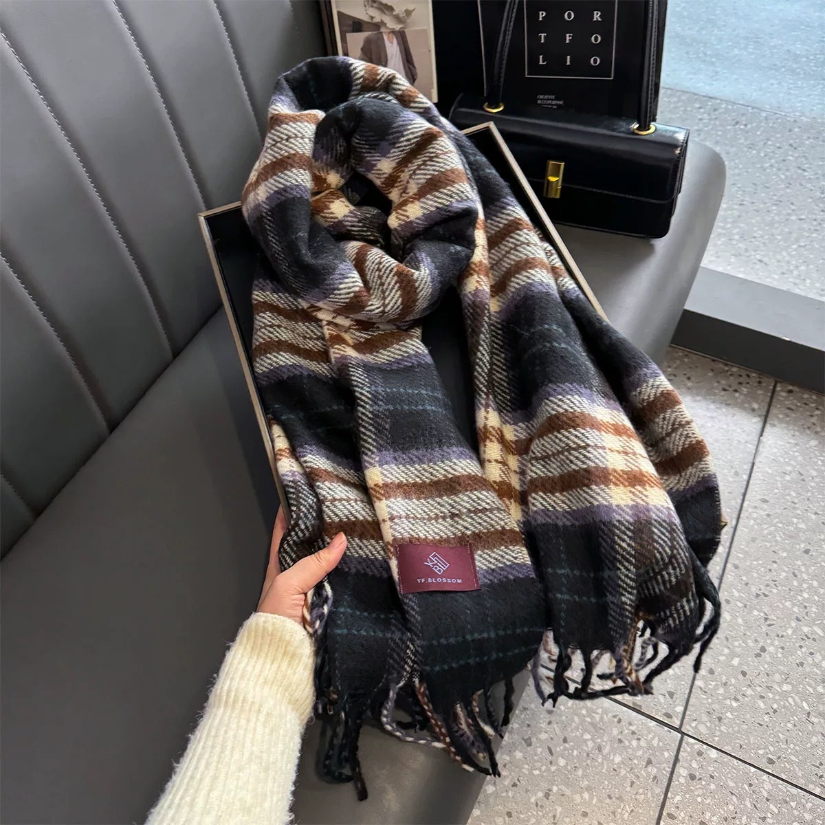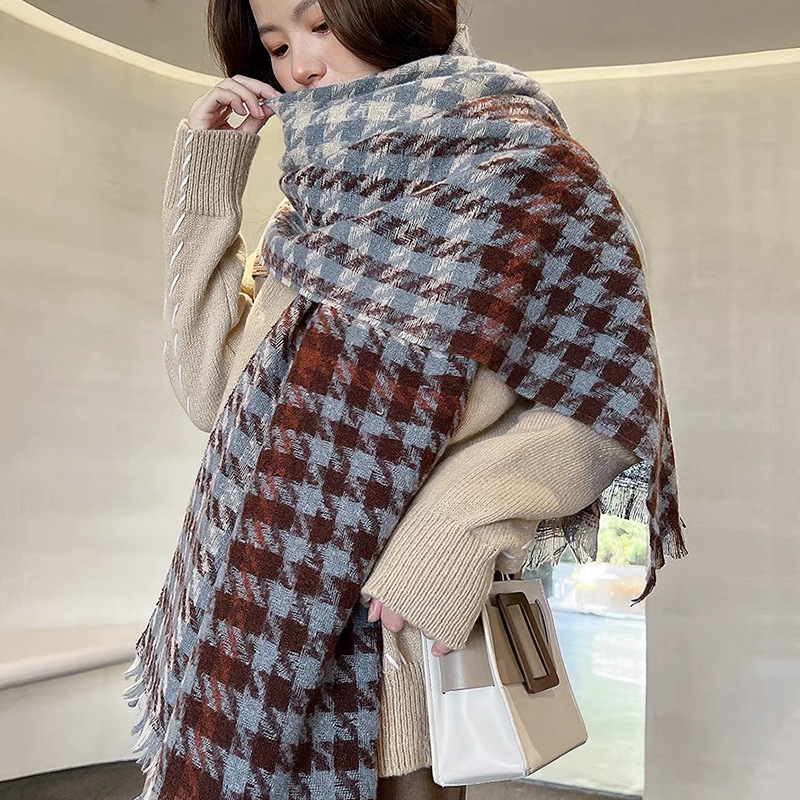 Шарф Tonglu для женщин, шаль в клетку «гусиная лапка», двойного назначения, в корейском стиле, универсальный, популярный, теплый, новый зимний высококачественный шарф-бандана для студентов.