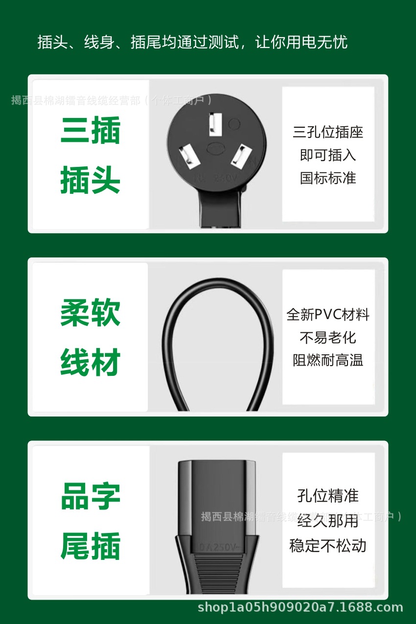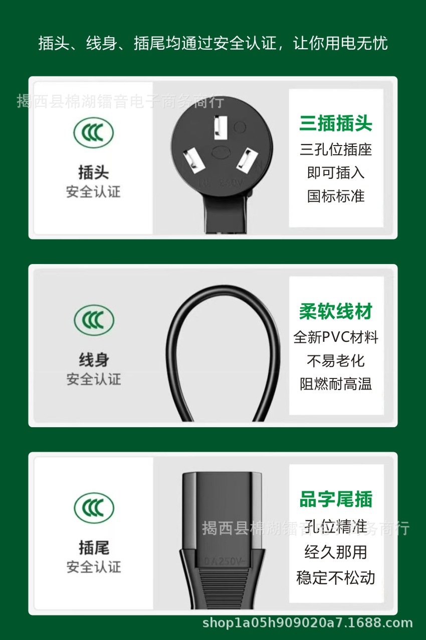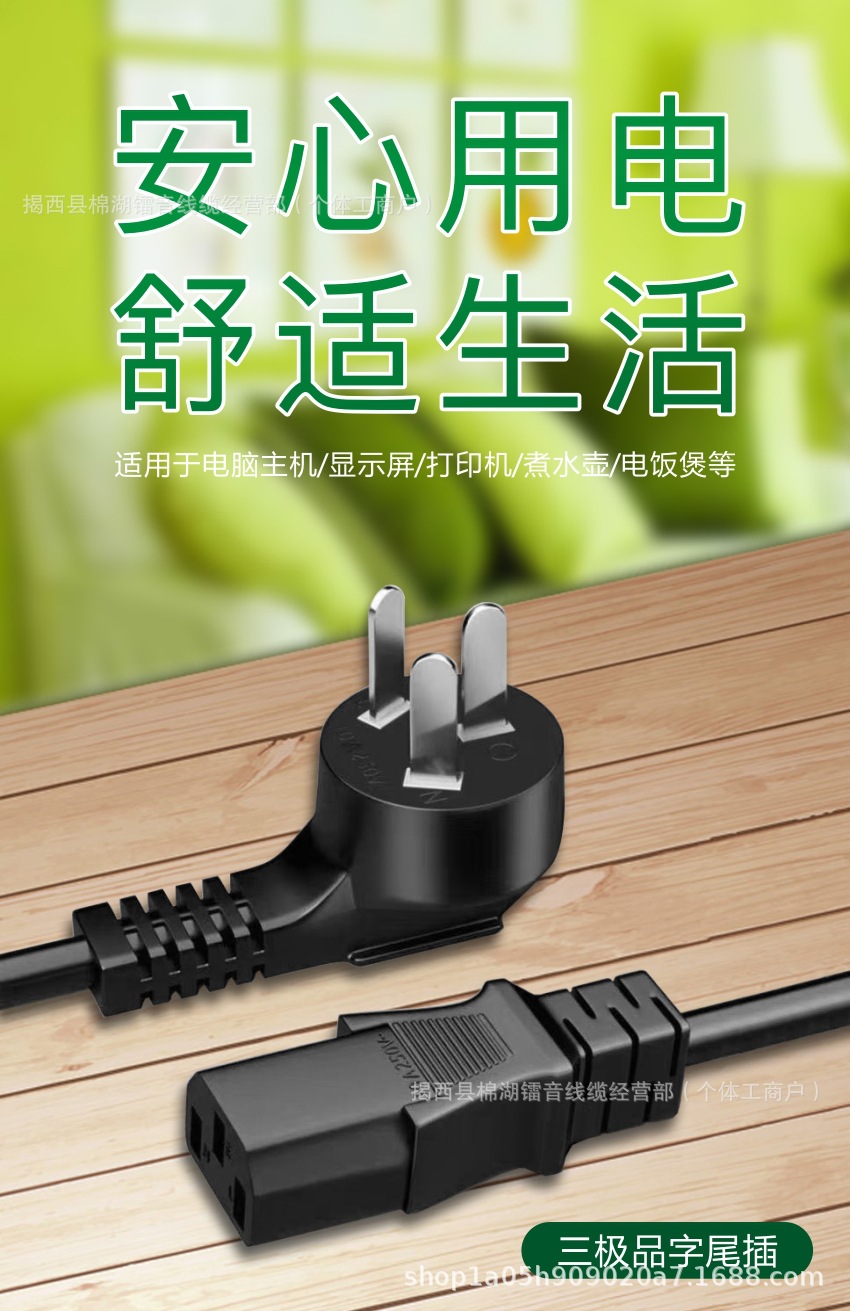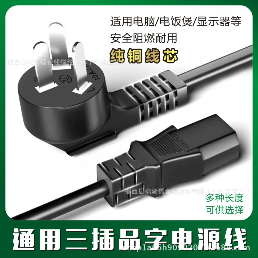 Кабель питания из чистой меди, вилка с тремя контактами по национальному стандарту, подходит для компьютеров, рисоварок, электронных весов, аппаратов для маджонга, принтеров, высокопроводящая чистая медь.
