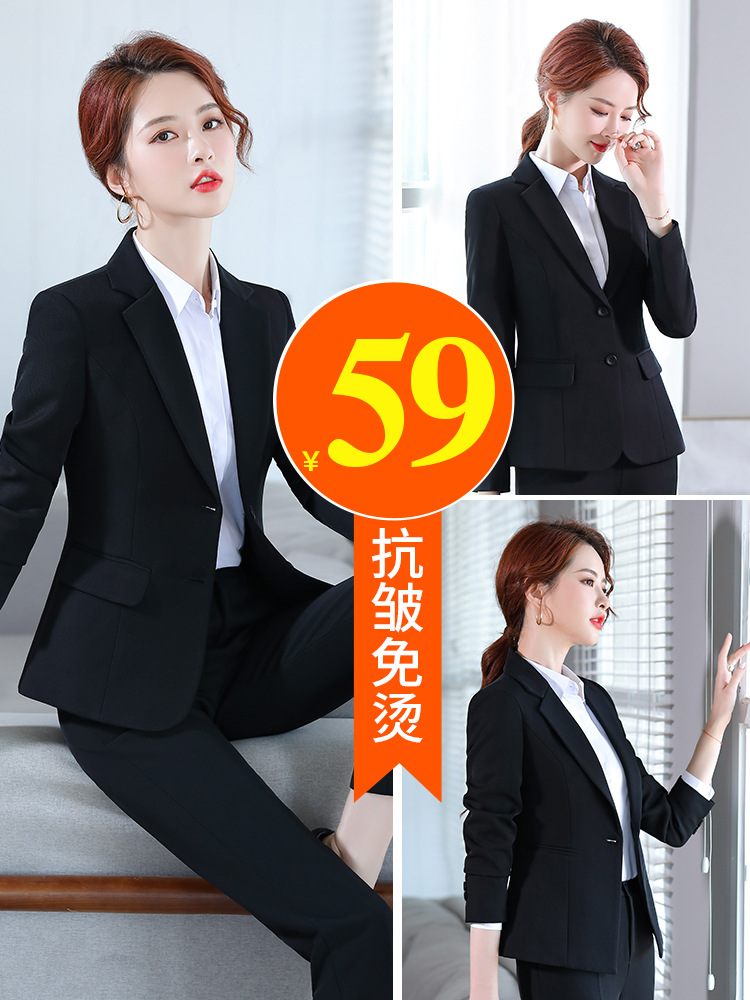 Вечернее платье женский профессиональный костюм деловой комбинезон темперамент Студенты колледжа весна и осень черный костюм пальто Женский Плюс Размер