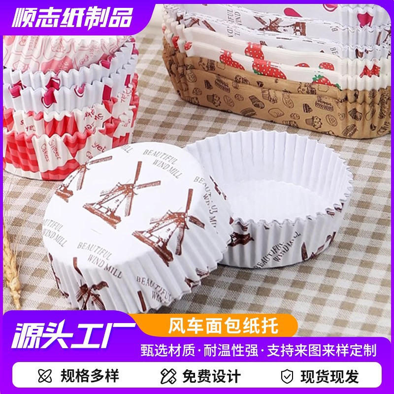 Индивидуальный бумажный поднос для торта, хлеба, ламинированный нижний поднос, устойчивый к высоким температурам, ветряная мельница, круглая лодка, упаковка, бумажный поднос для выпечки, одноразовый
