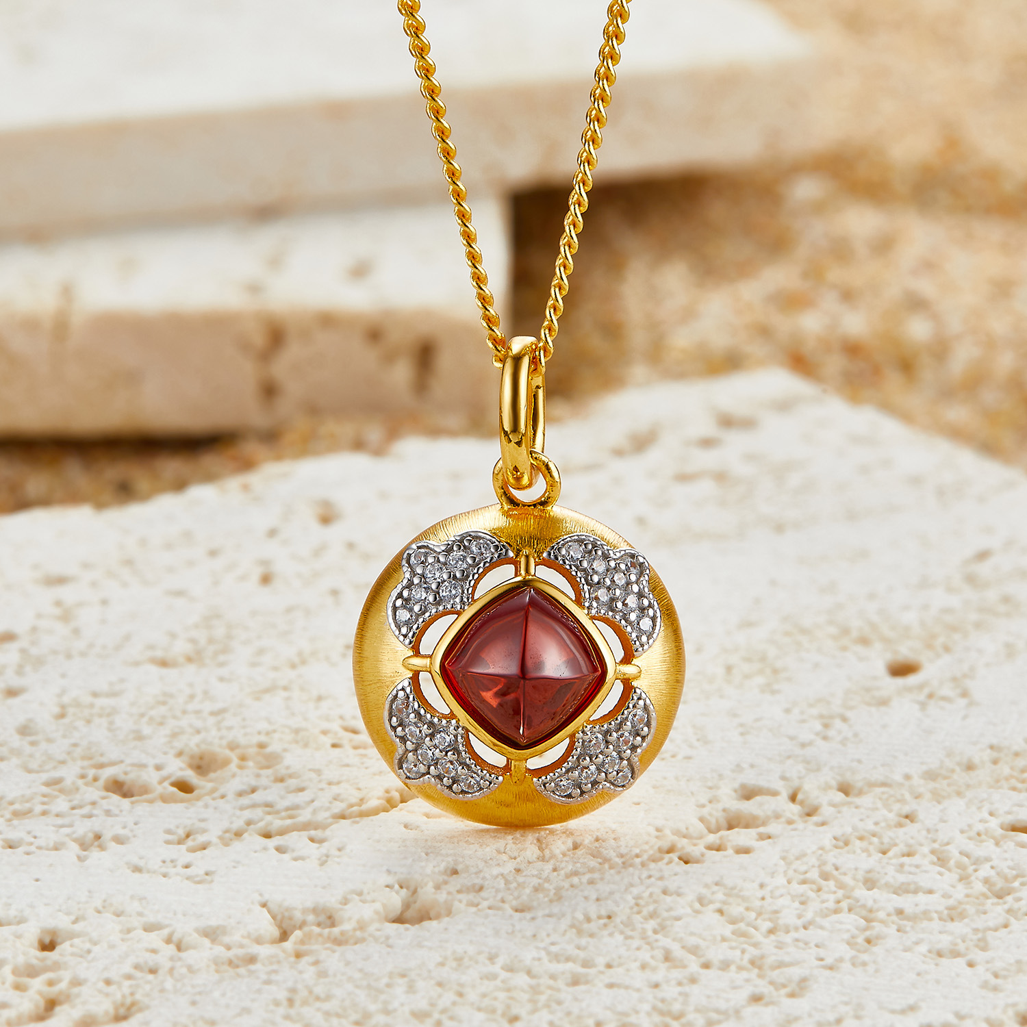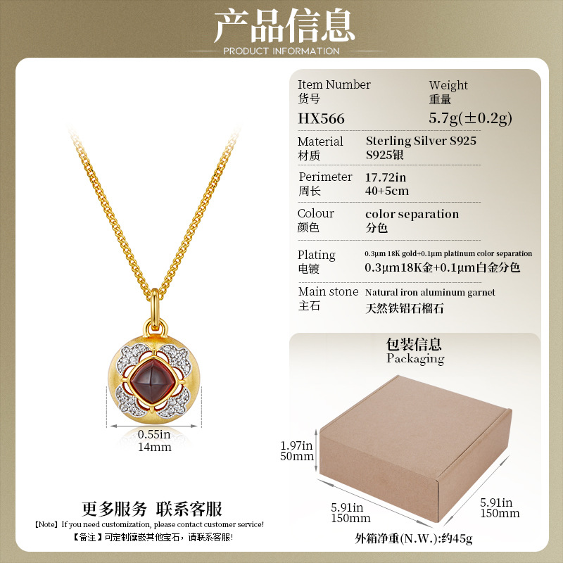 925 серебряное гранатовое ожерелье ручной работы из рисованной натуральной сахарной башни Caibao цветное гальваническое покрытие 18-каратного золота