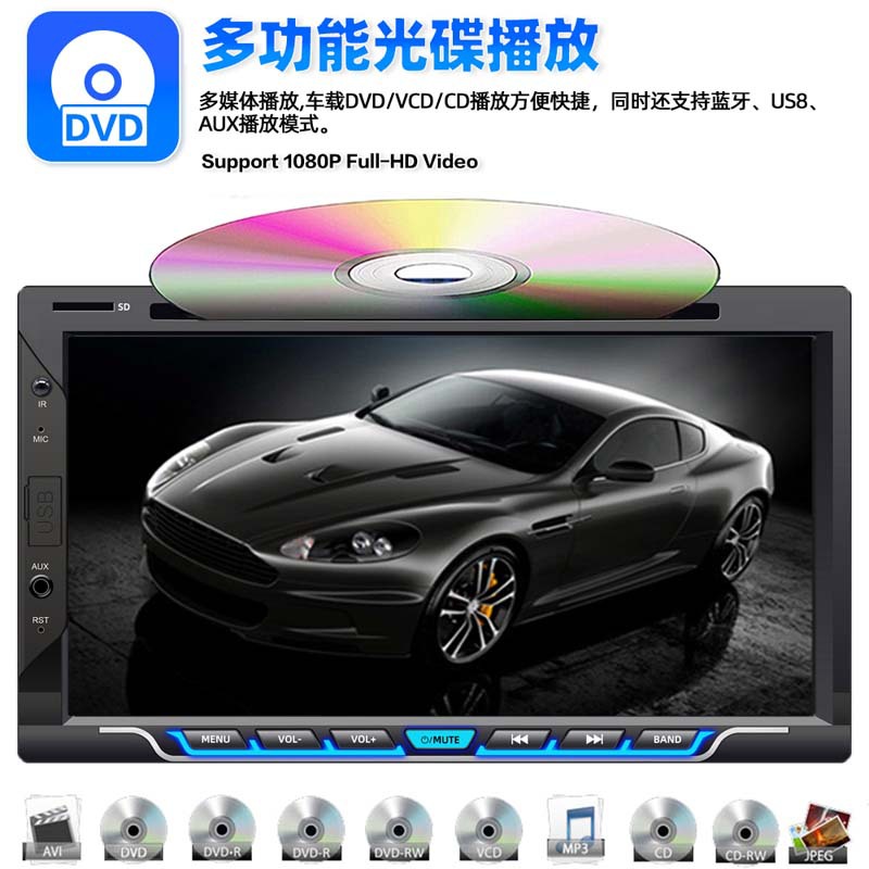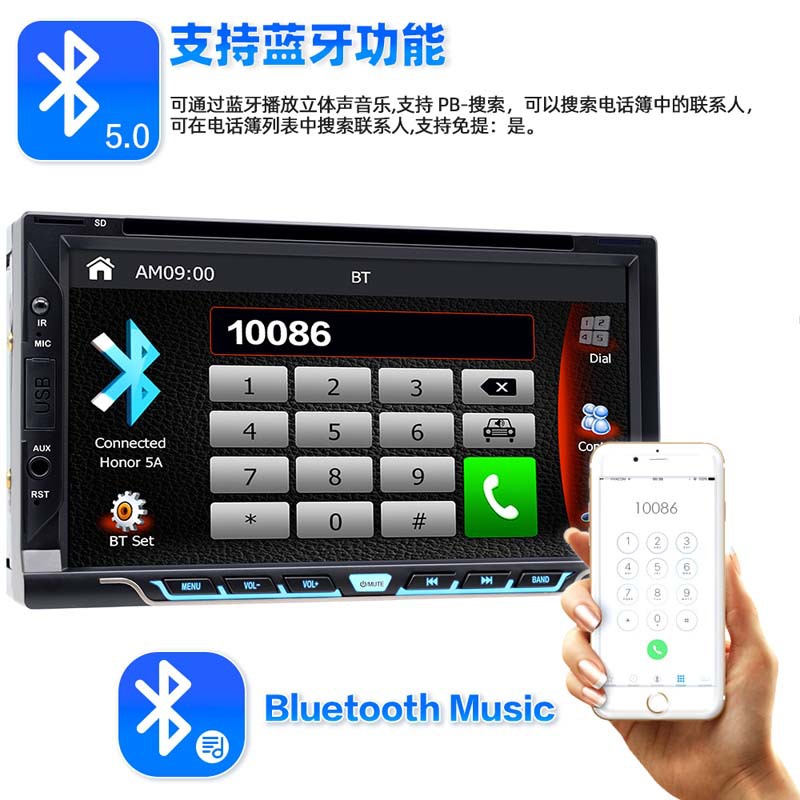 7-дюймовый двойной слиток автомобильный аудио CDDVD-плеер беспроводной CarPlay Android AutoFM Bluetooth USB-радио