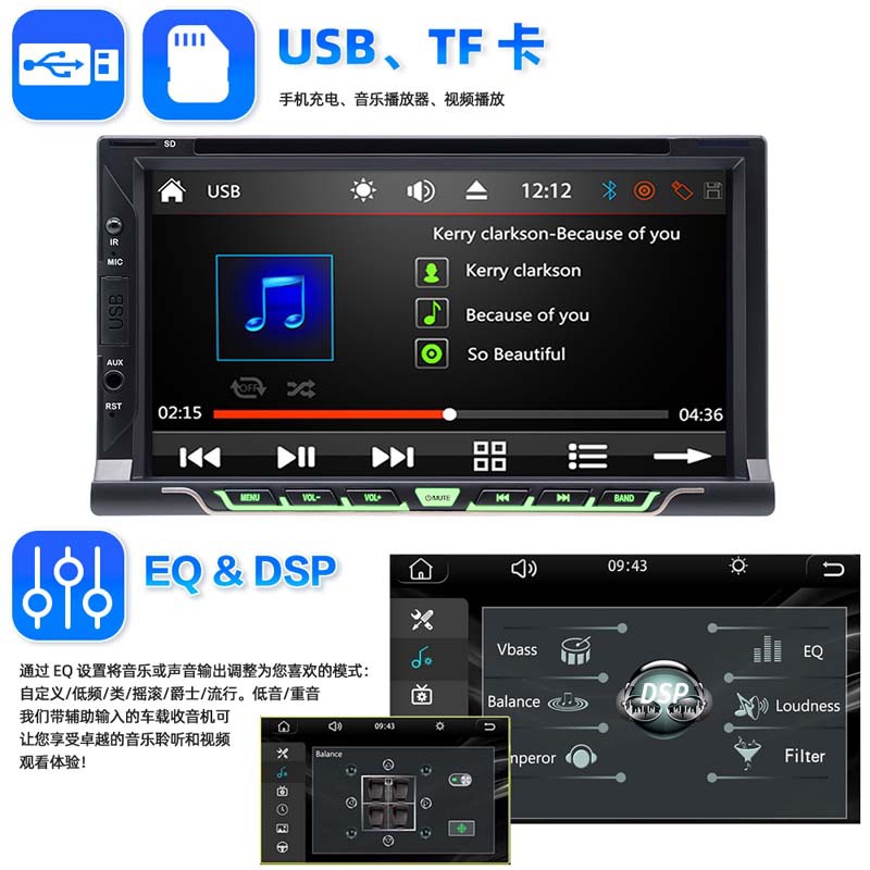 1. 100% 标准双DIN尺寸,这款汽车收音机完全适用于所有标准双DIN汽车。
