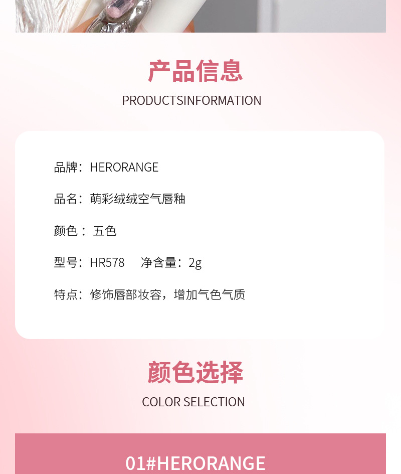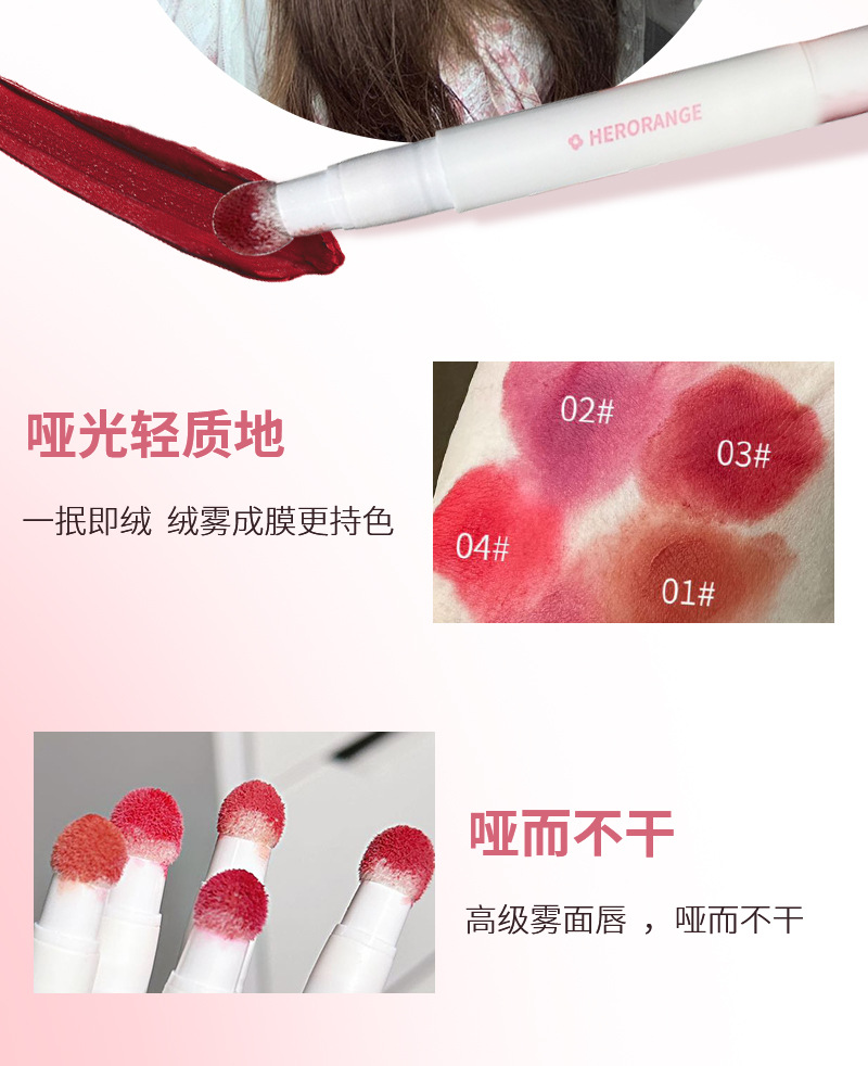 HERORANGE Цветная бархатная воздушная глазурь для губ