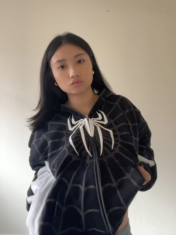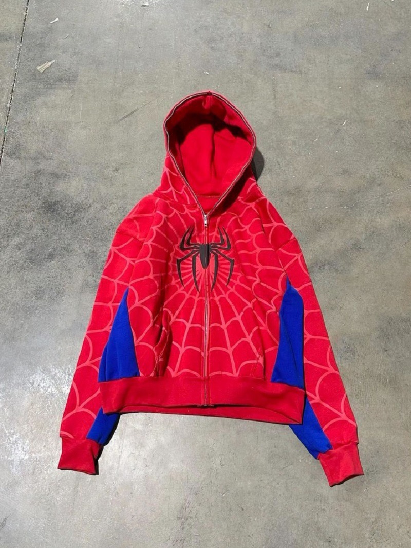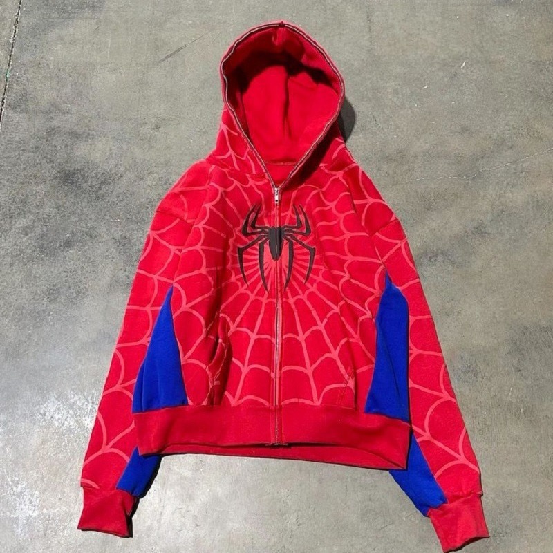 Европейский и американский трансграничный Новый Готический Темный кардиган с капюшоном и принтом паука, свободная Модная брендовая куртка-свитер с полной цепочкой для мужчин и женщин