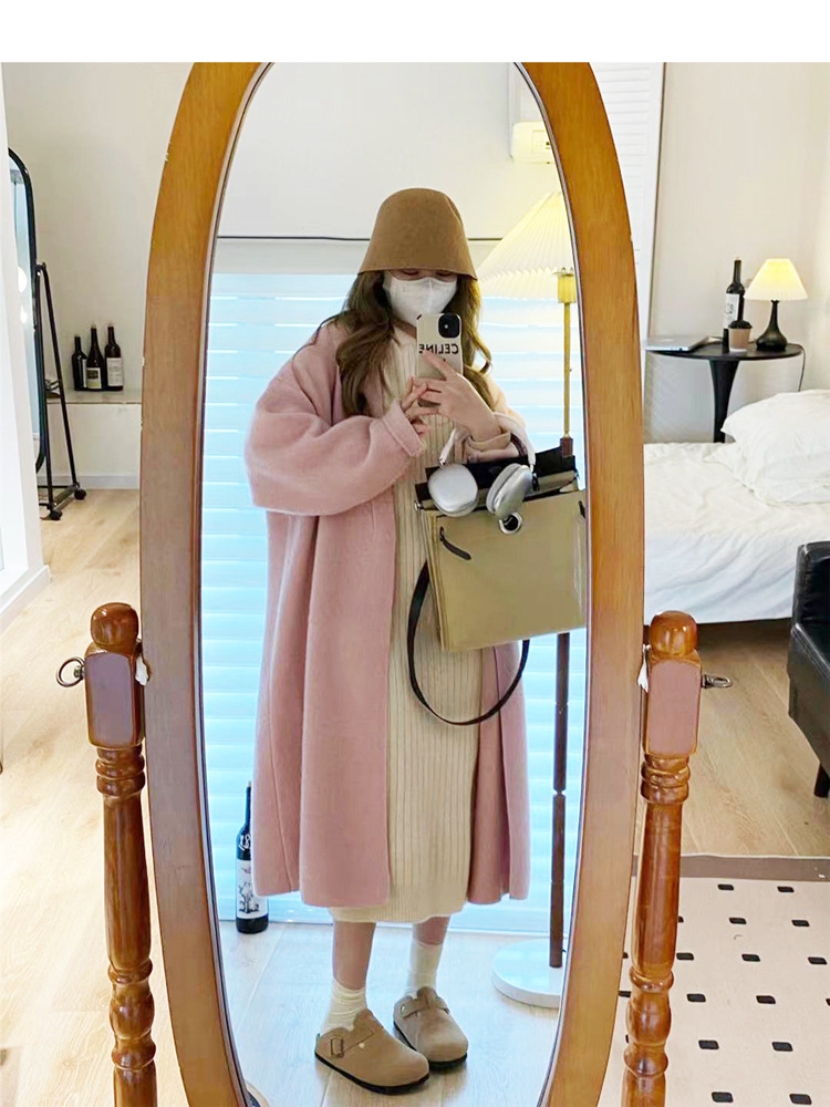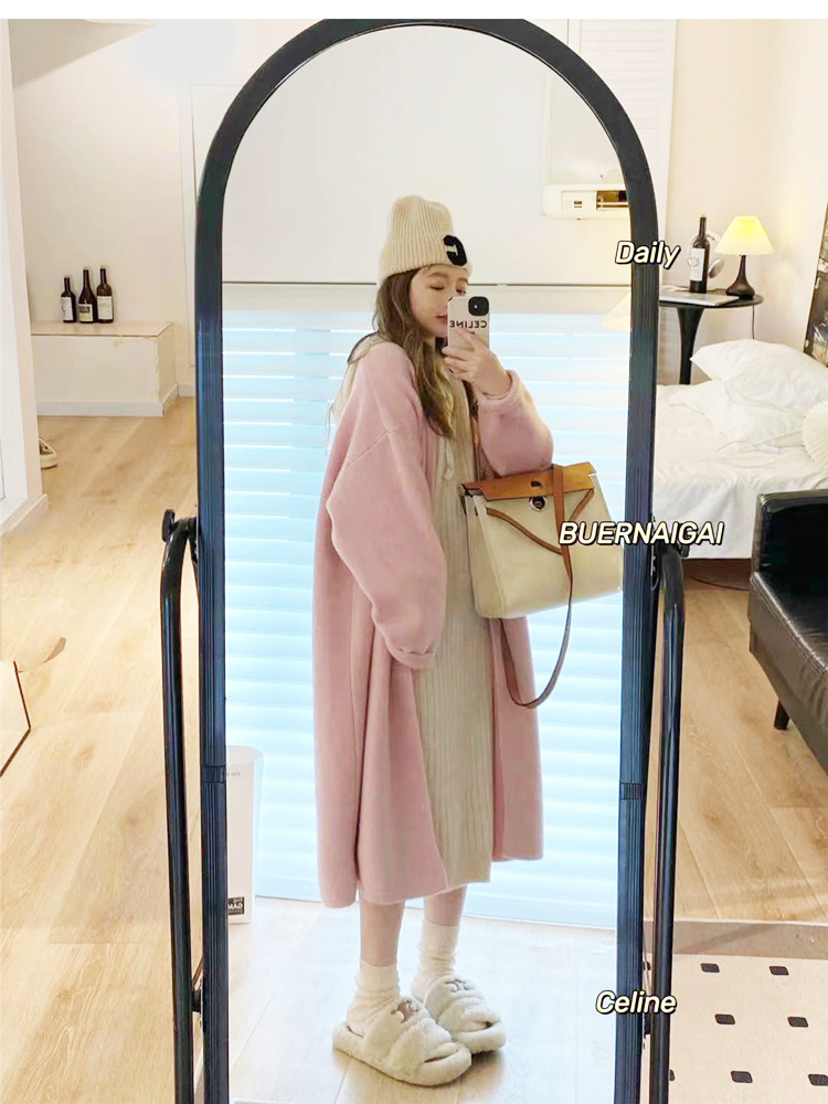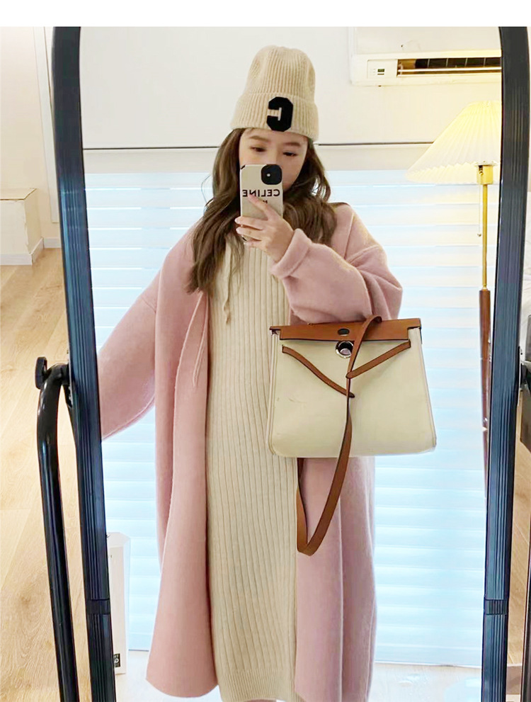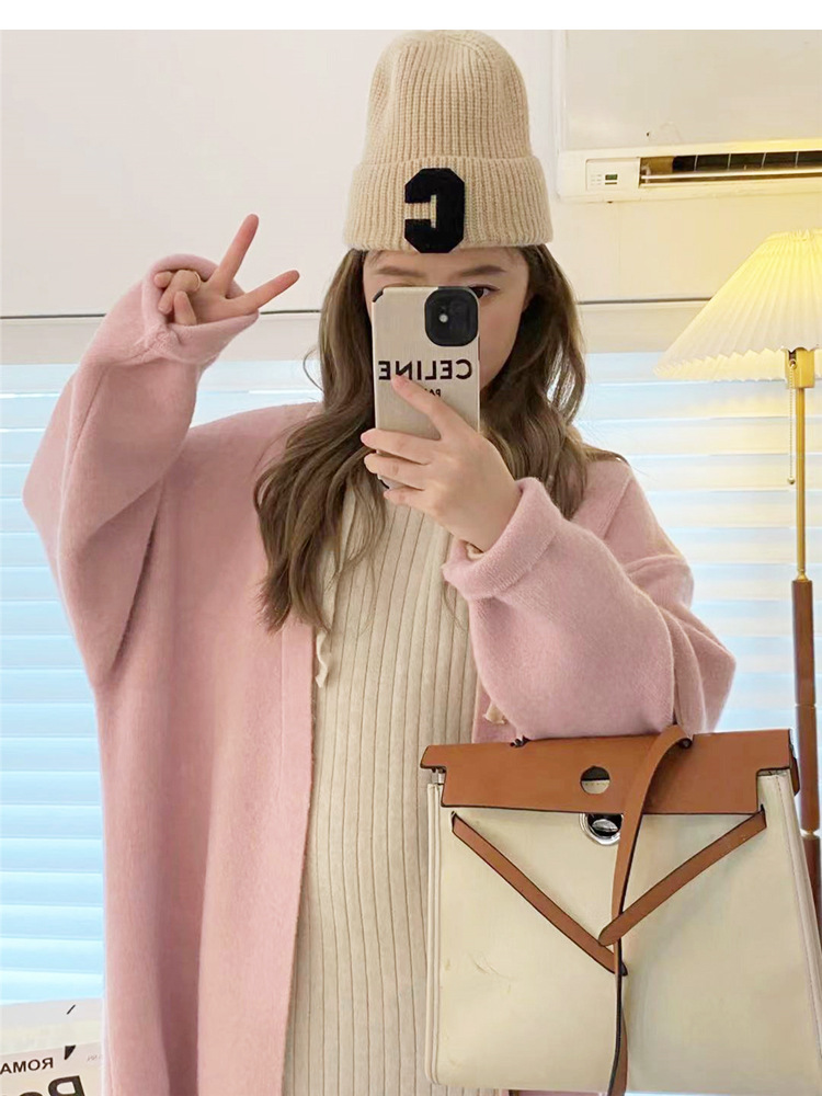 Осенне-зимний розовый свитер с коконом для беременных, длинное пальто с капюшоном, вязаное платье, костюм