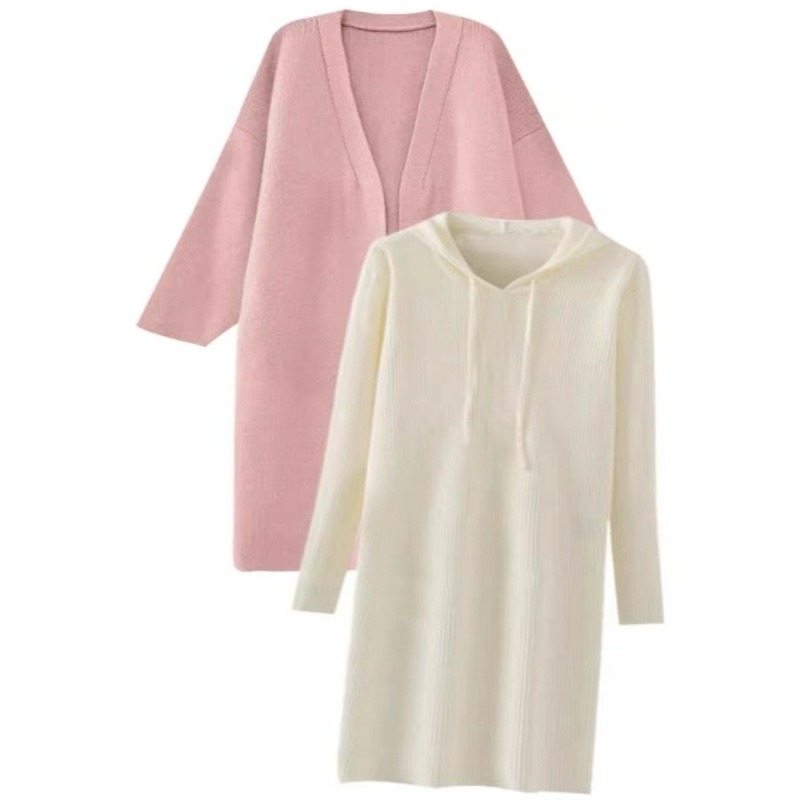 Розовый Кардиган; Абрикосовая юбка с капюшоном; Костюм