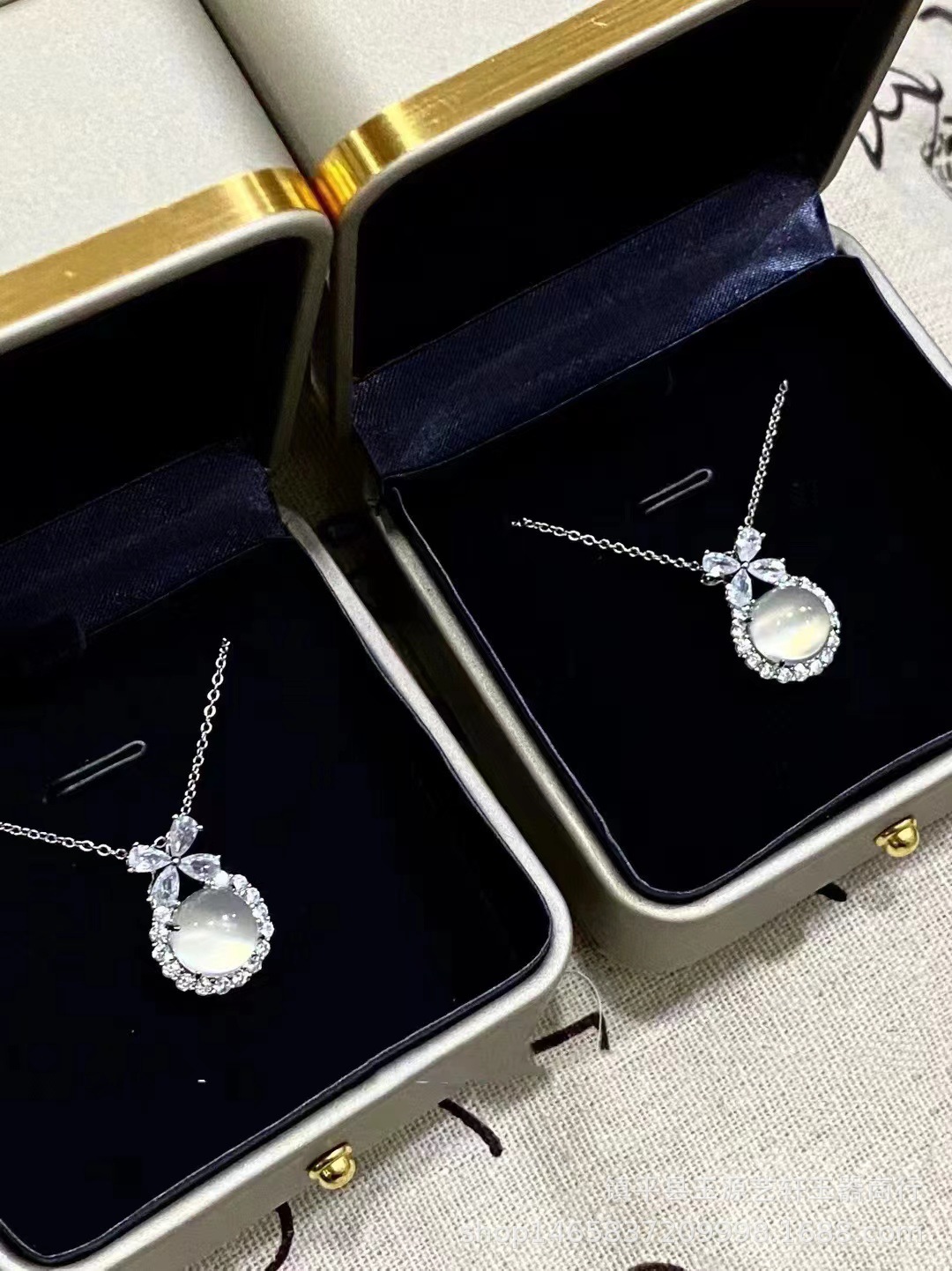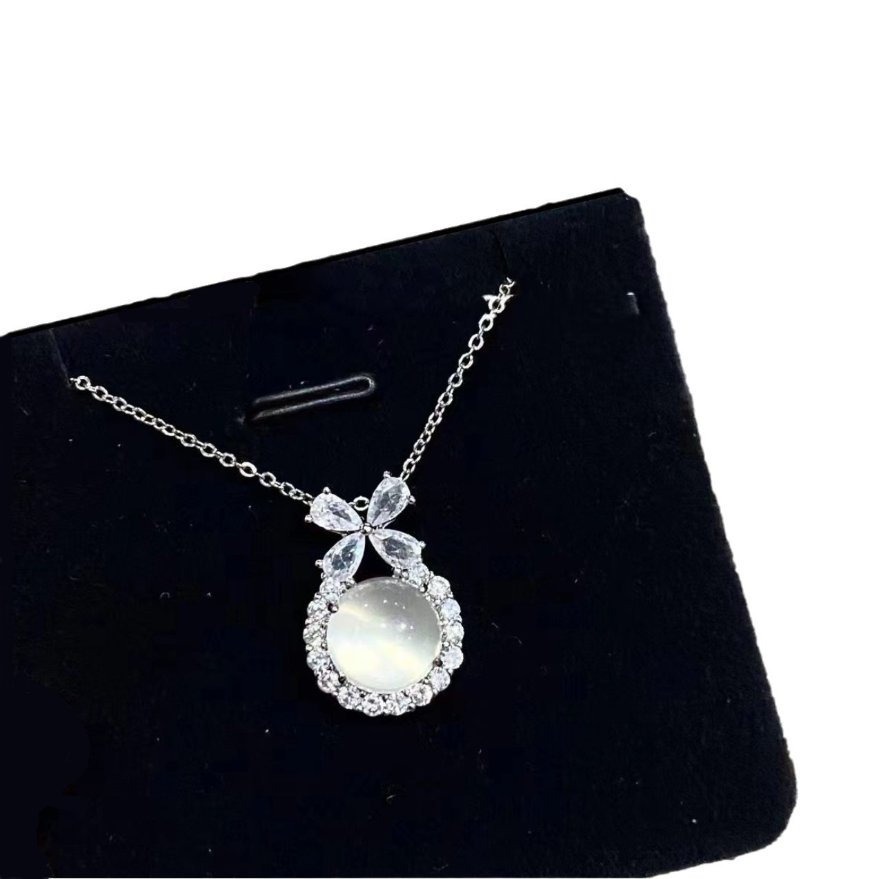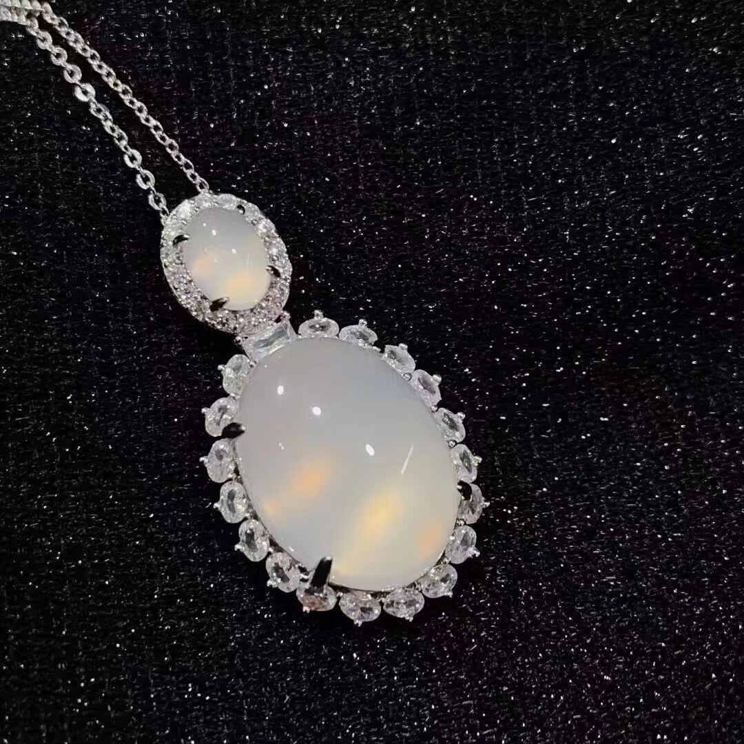 Маленькая Красная книга Новое поступление Серебряный бриллиант Материал ледяной лошади Белый халцедон Голубь Яйцо Подвеска Свет Роскошное сопоставимое ожерелье Женская цепочка на ключицу