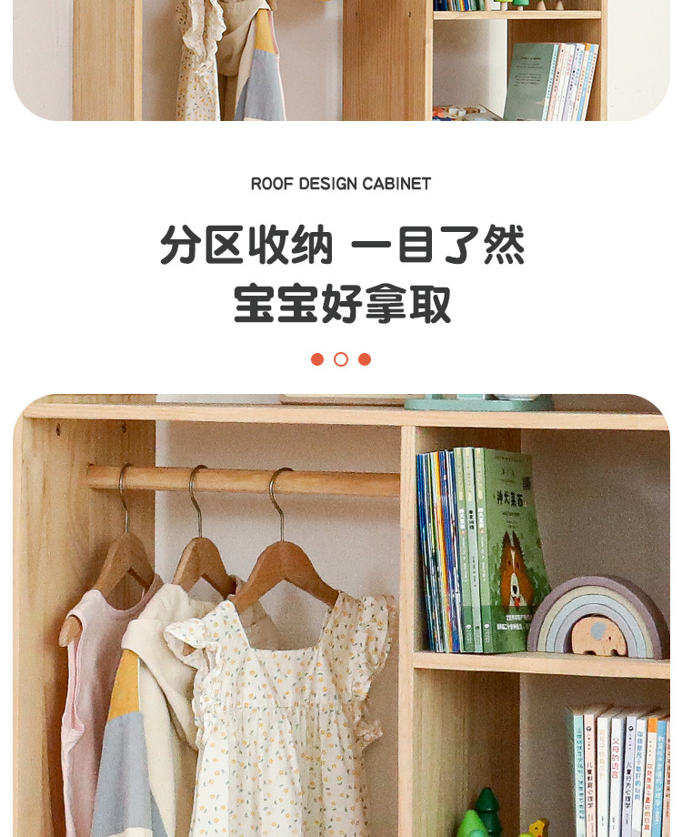 Детский шкаф для хранения вещей для дома, спальни, из массива дерева, с вешалками, для мальчиков и девочек, небольшой шкаф, трехрядный шкаф для хранения.