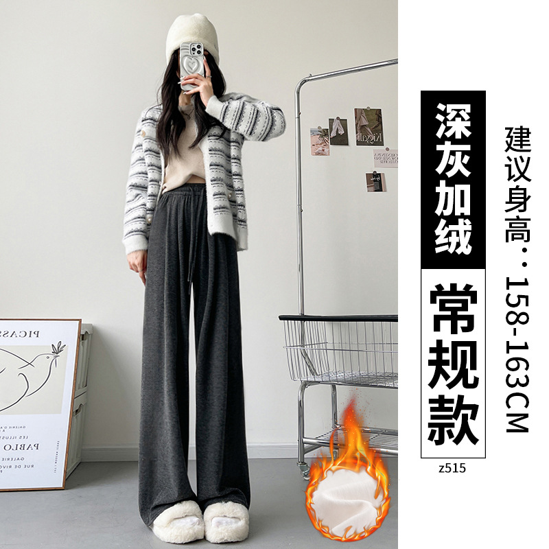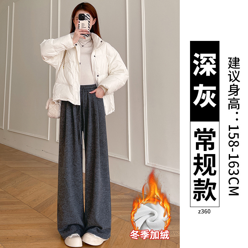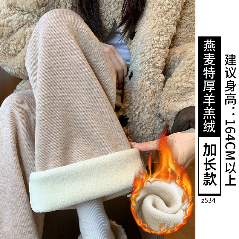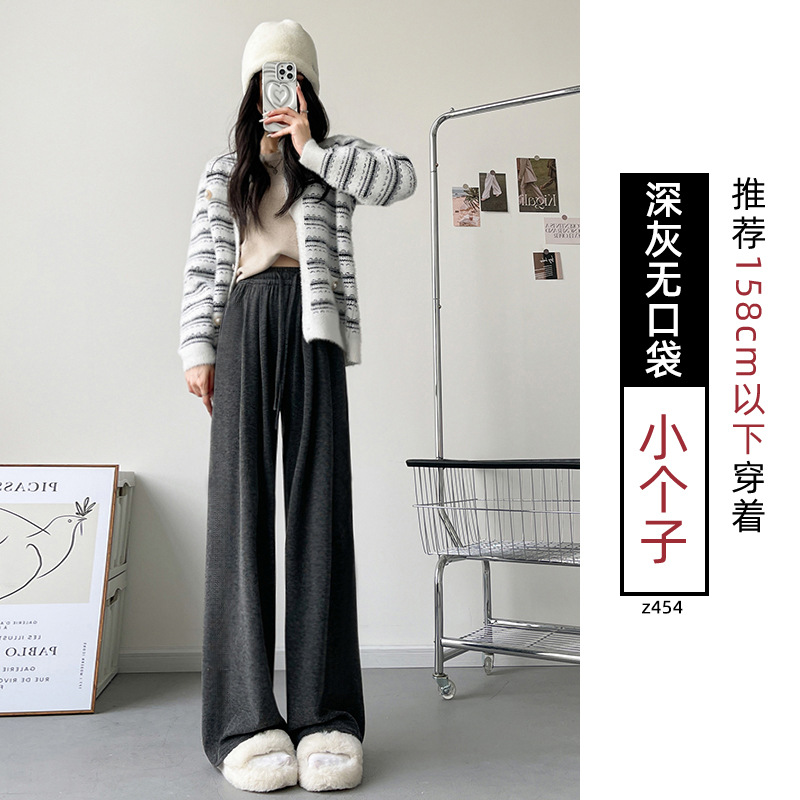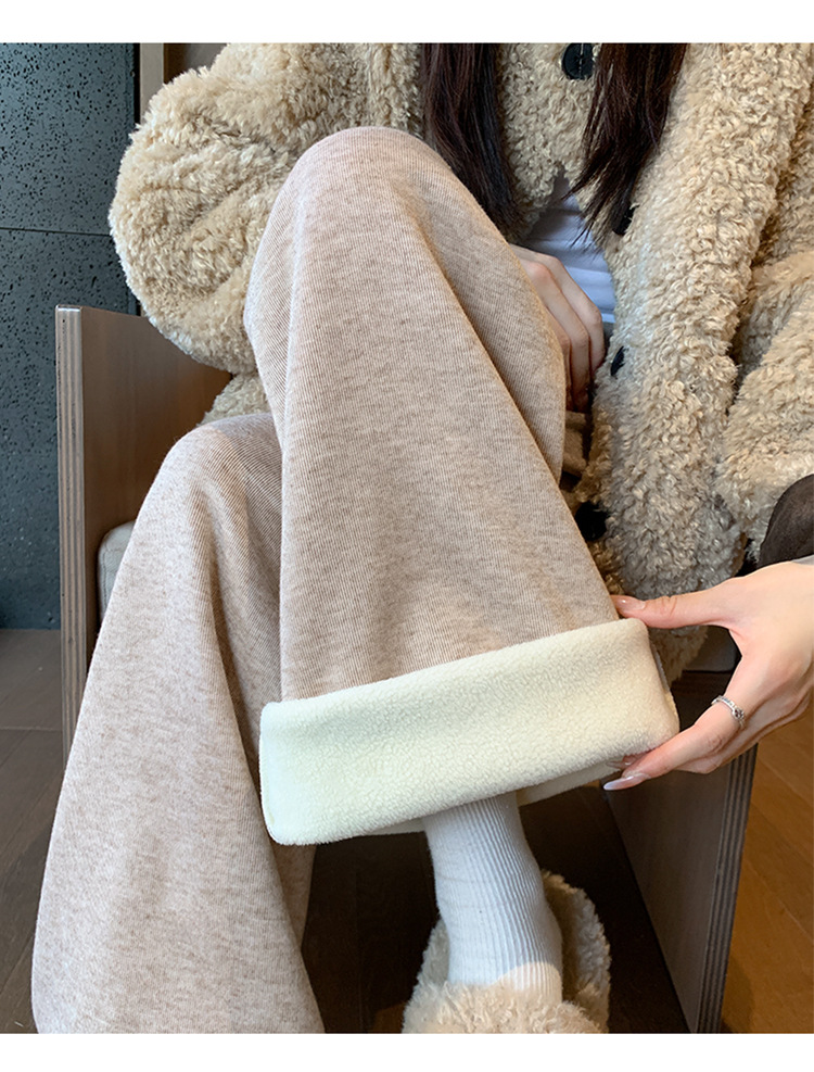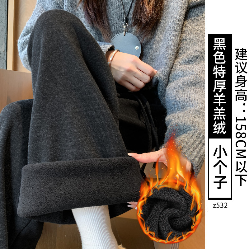 Женские брюки из овечьей шерсти и клейкого риса, новинка 2025 года, осенне-зимние, прямые, повседневные, на флисовой подкладке, утолщенные, для миниатюрных женщин, широкие штанины