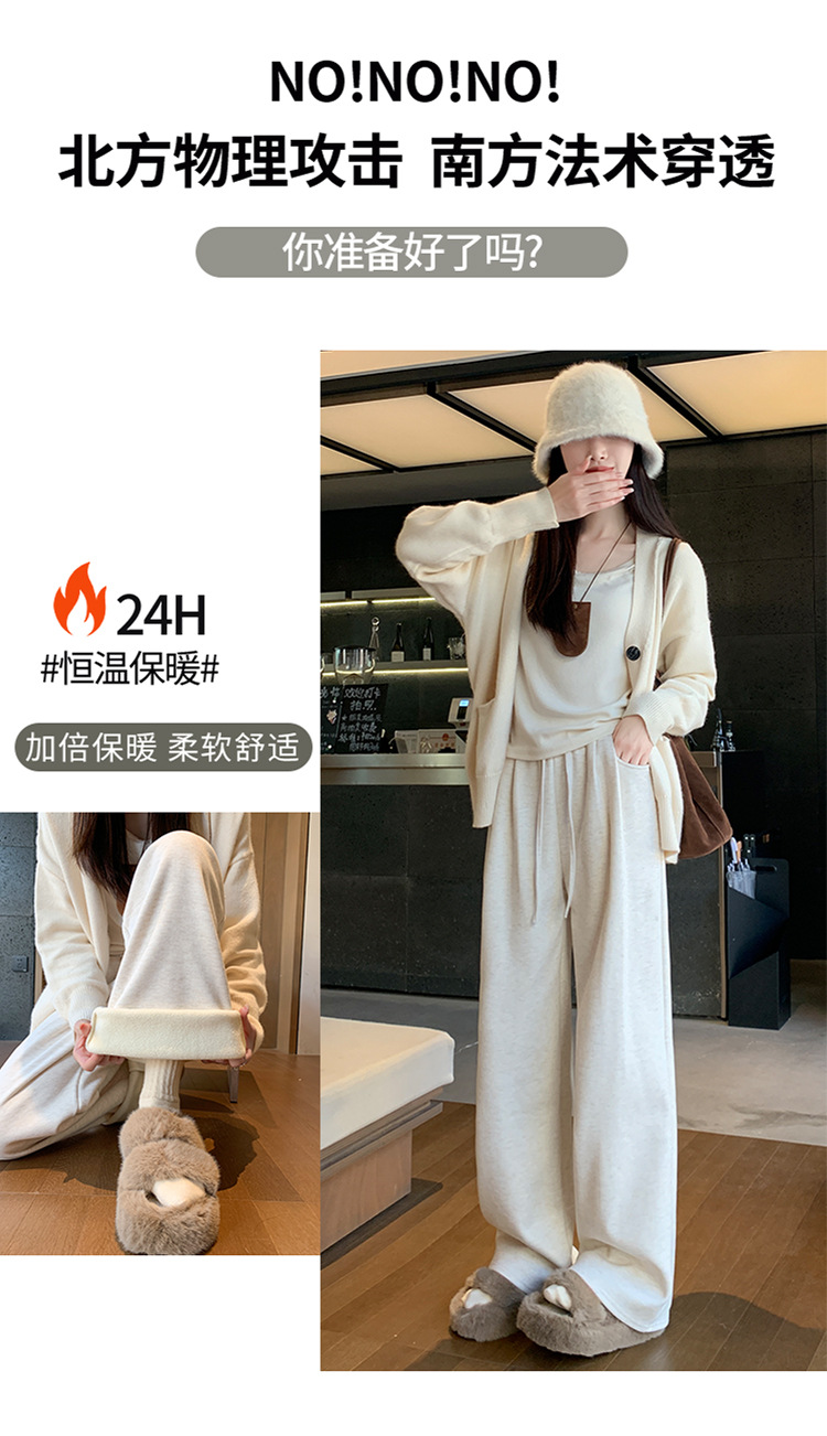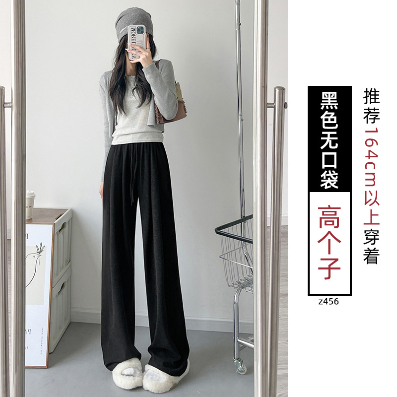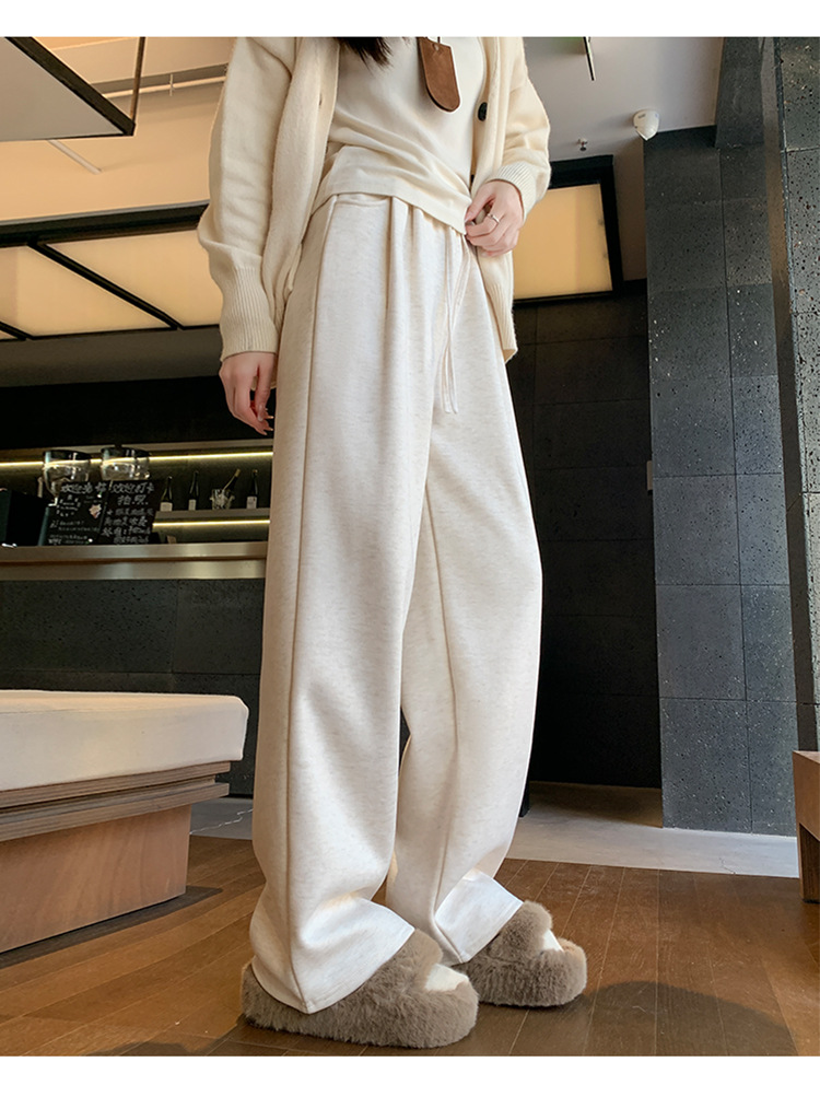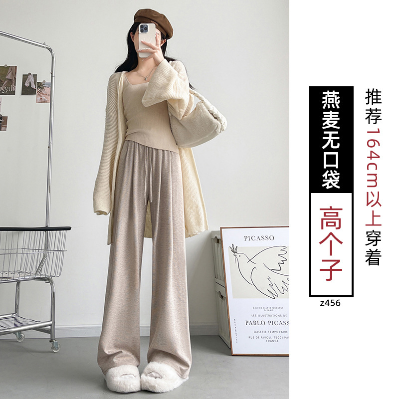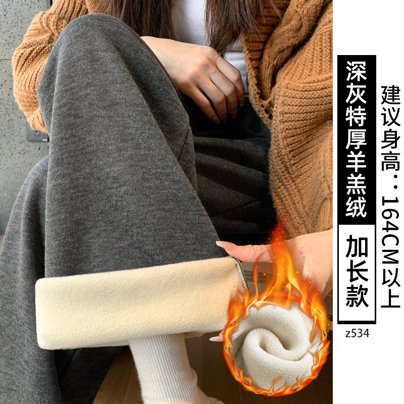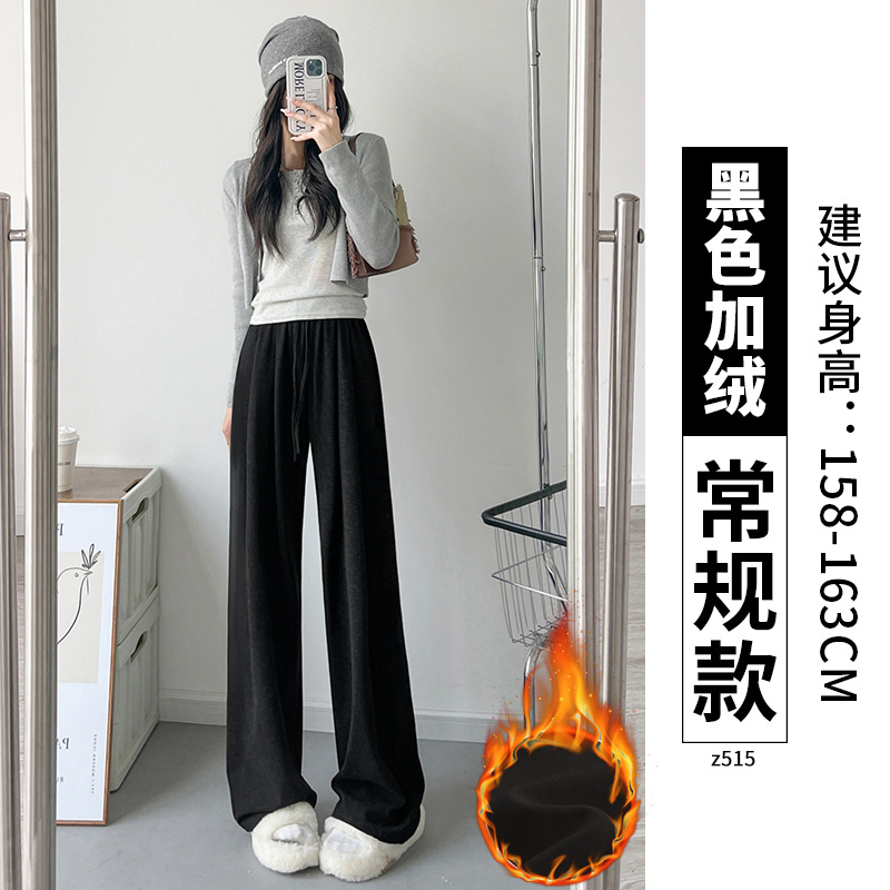 Женские брюки из овечьей шерсти и клейкого риса, новинка 2025 года, осенне-зимние, прямые, повседневные, на флисовой подкладке, утолщенные, для миниатюрных женщин, широкие штанины