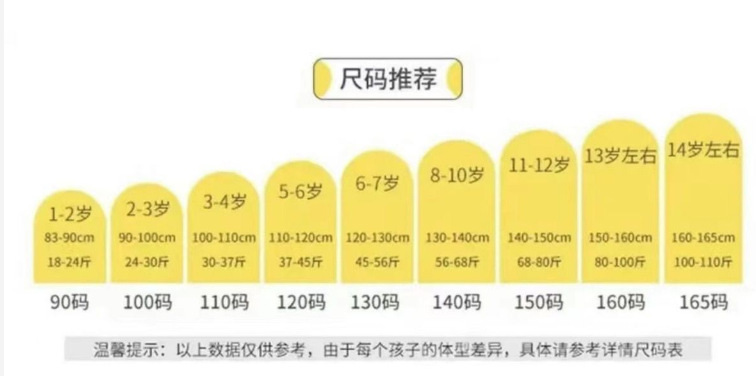 Дети средних и средних лет (3 ~ 8 лет, 100 ~ 140 см)