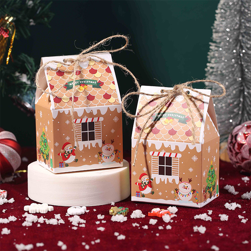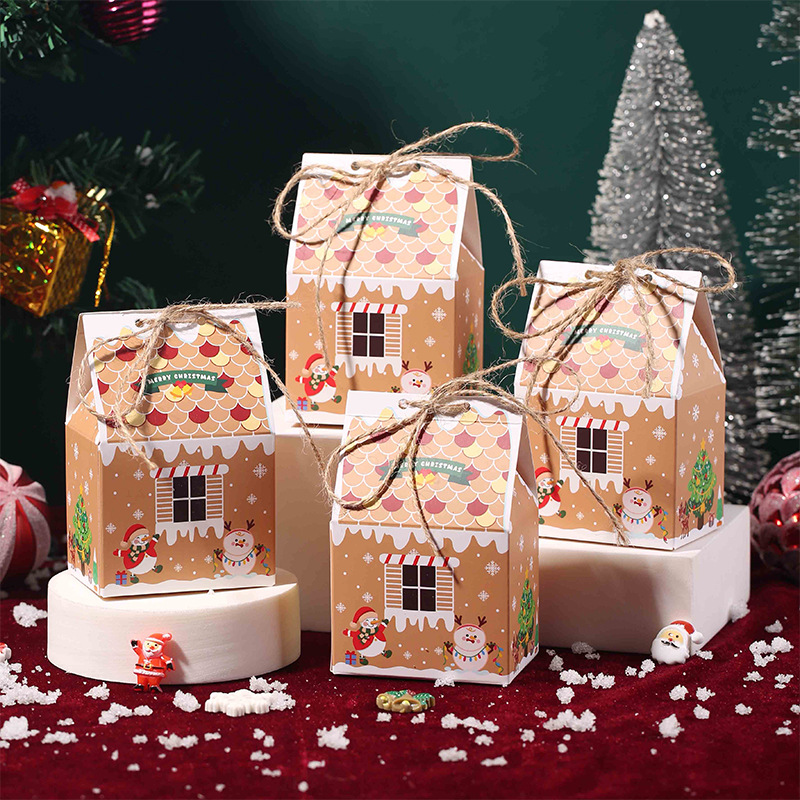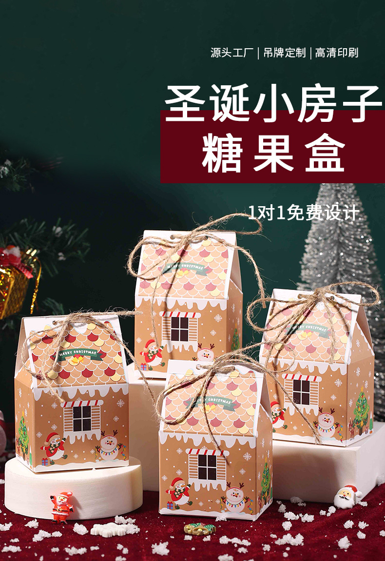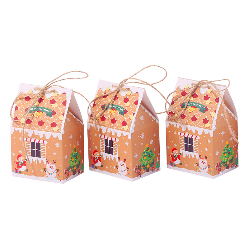 Новый трансграничный европейский стиль рождественские конфеты коробка крафт-бумага сахарная коробка рождественский маленький дом для выпечки упаковки конфет коробка спот