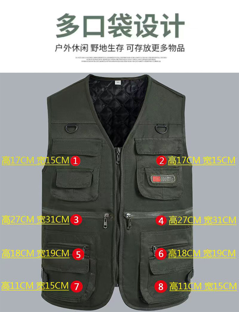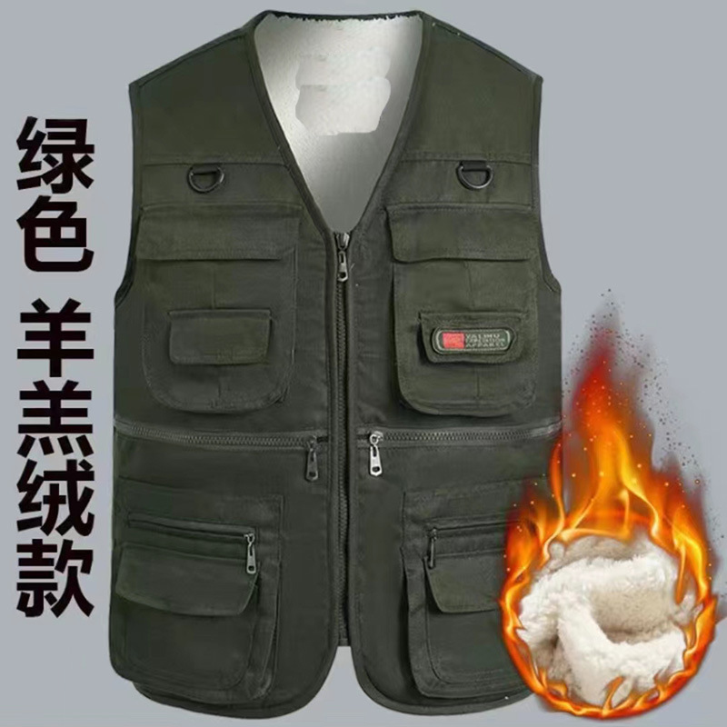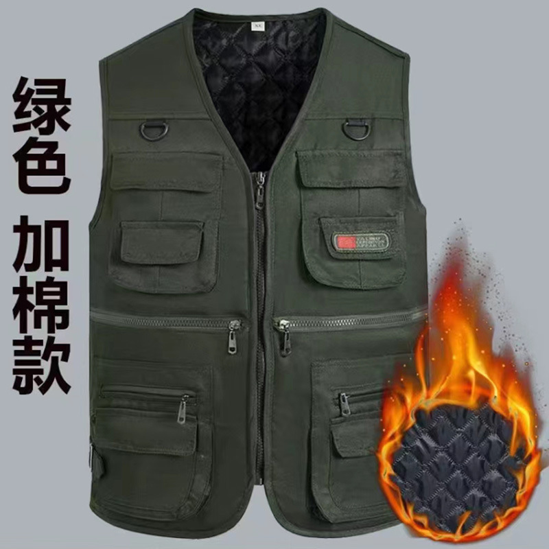Осенне-зимний хлопковый утолщенный жилет на флисовой подкладке для людей среднего и пожилого возраста, жилет для отдыха с несколькими карманами, теплый уличный жилет для рыбалки и фотосъемки