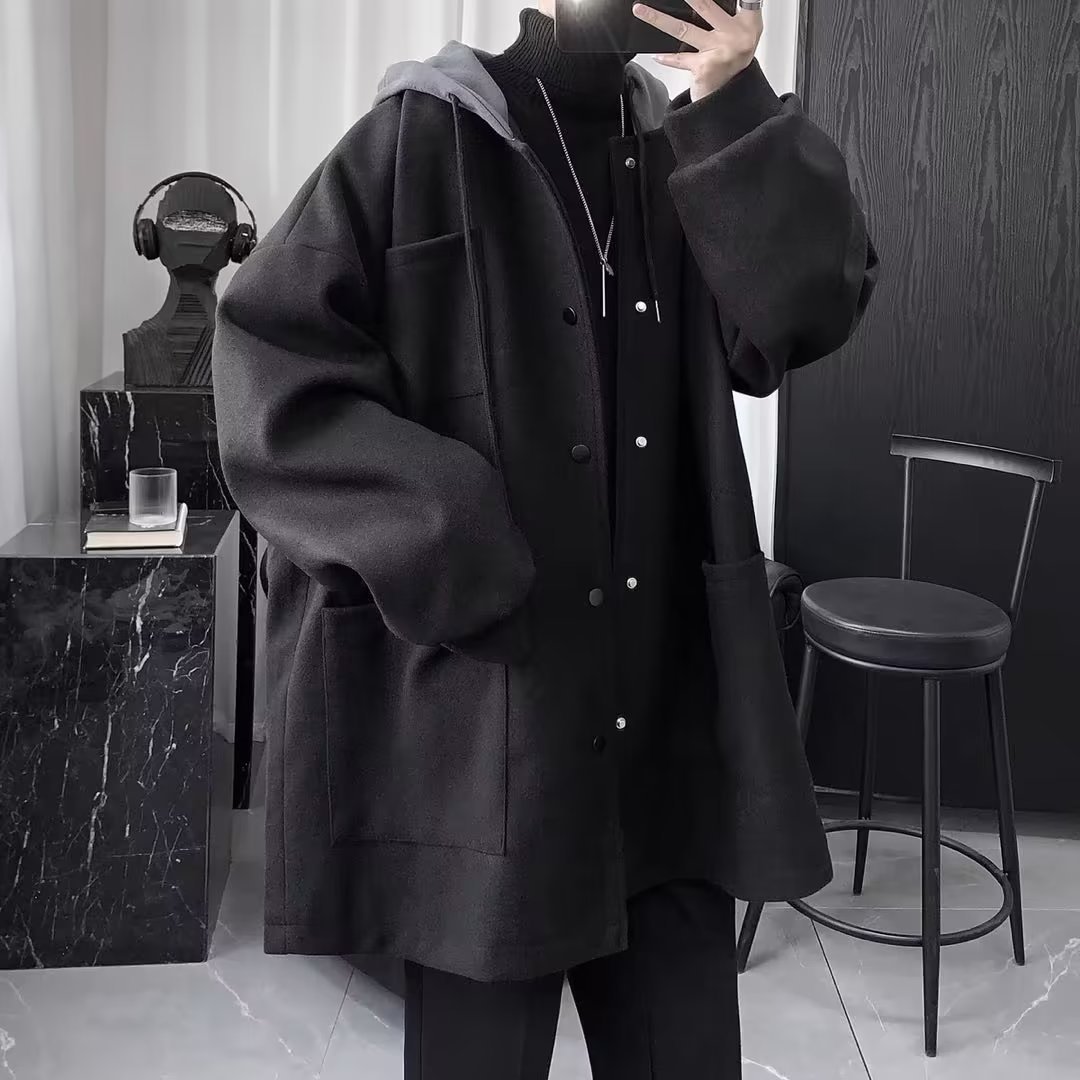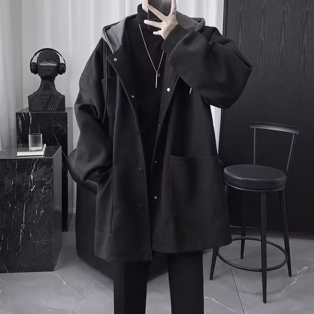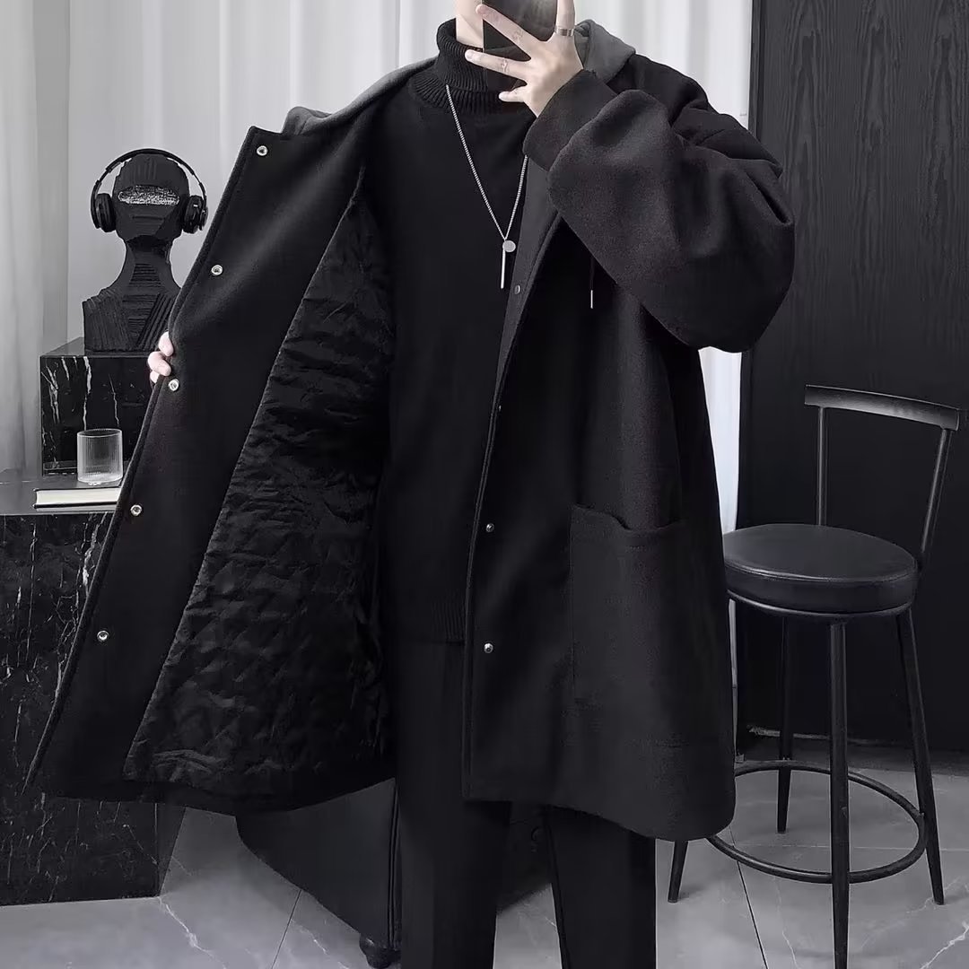 Осенне-зимнее мужское красивое с легким зрелым ветром длинное шерстяное пальто, весеннее высококачественное мужское хлопковое пальто с капюшоном
