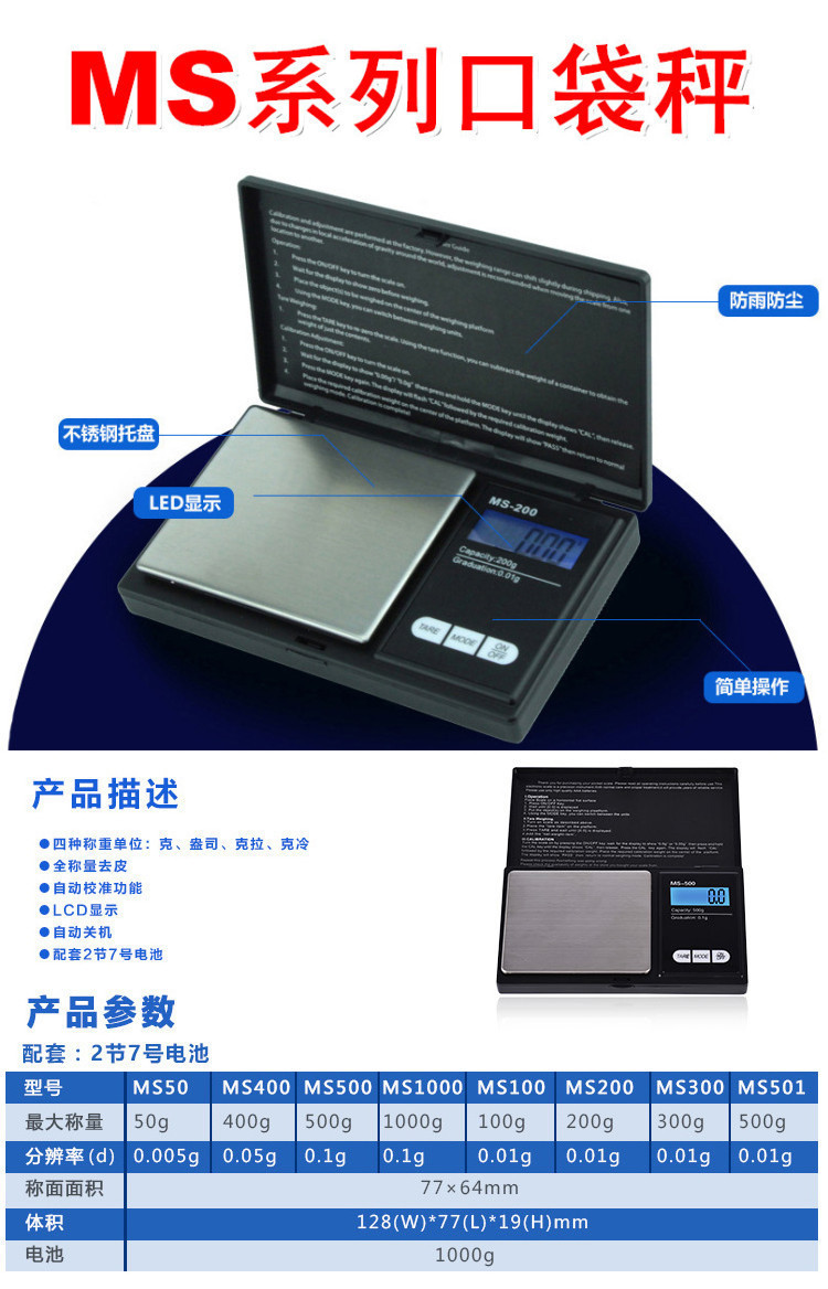 Серия G&G/Dangjie MS, карманные весы для брюк с клапаном, портативные весы, мини-цифровые весы, ладовые весы, небольшие граммовые весы, портативные весы