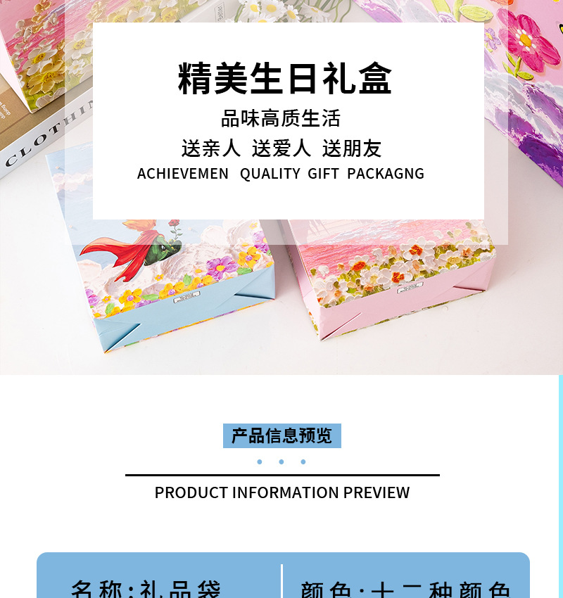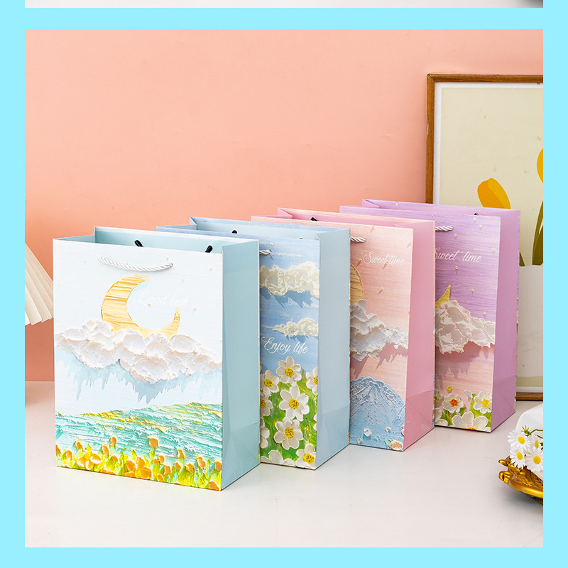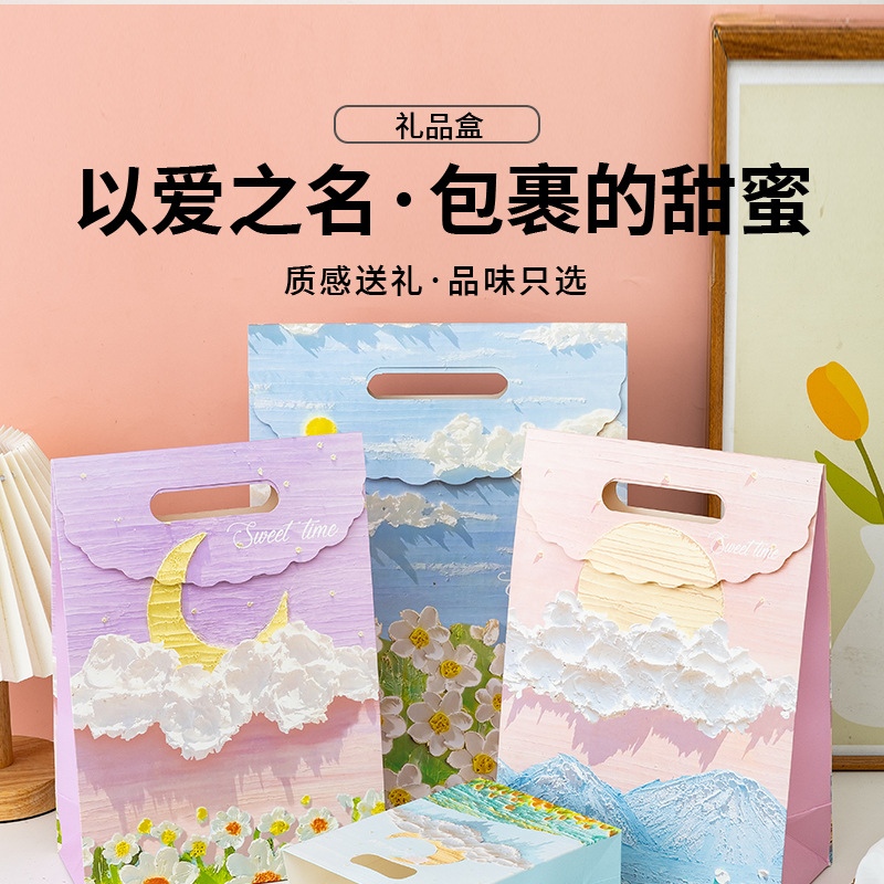 Художественная картина маслом Подарочная сумка Художественная сумка Фестиваль Изысканный мужской и женский Букет на день рождения Упаковка Подарочная бумажная сумка