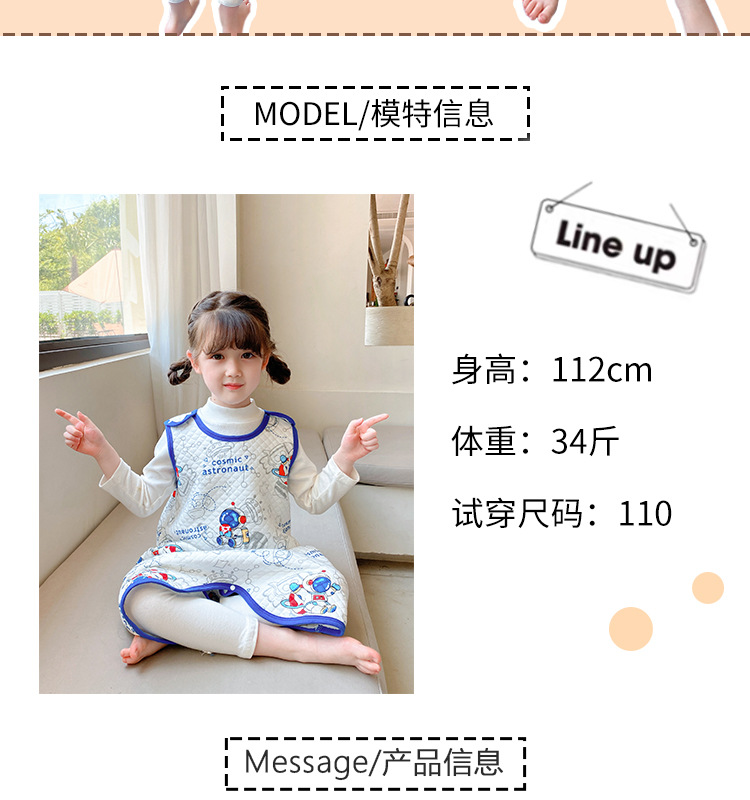 Детский цельный комбинезон для сна из чистого хлопка в скандинавском стиле, без рукавов, с защитой от раскрывания, утолщенный, для младенцев