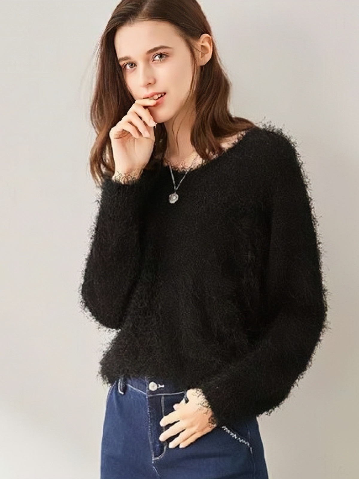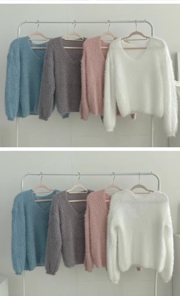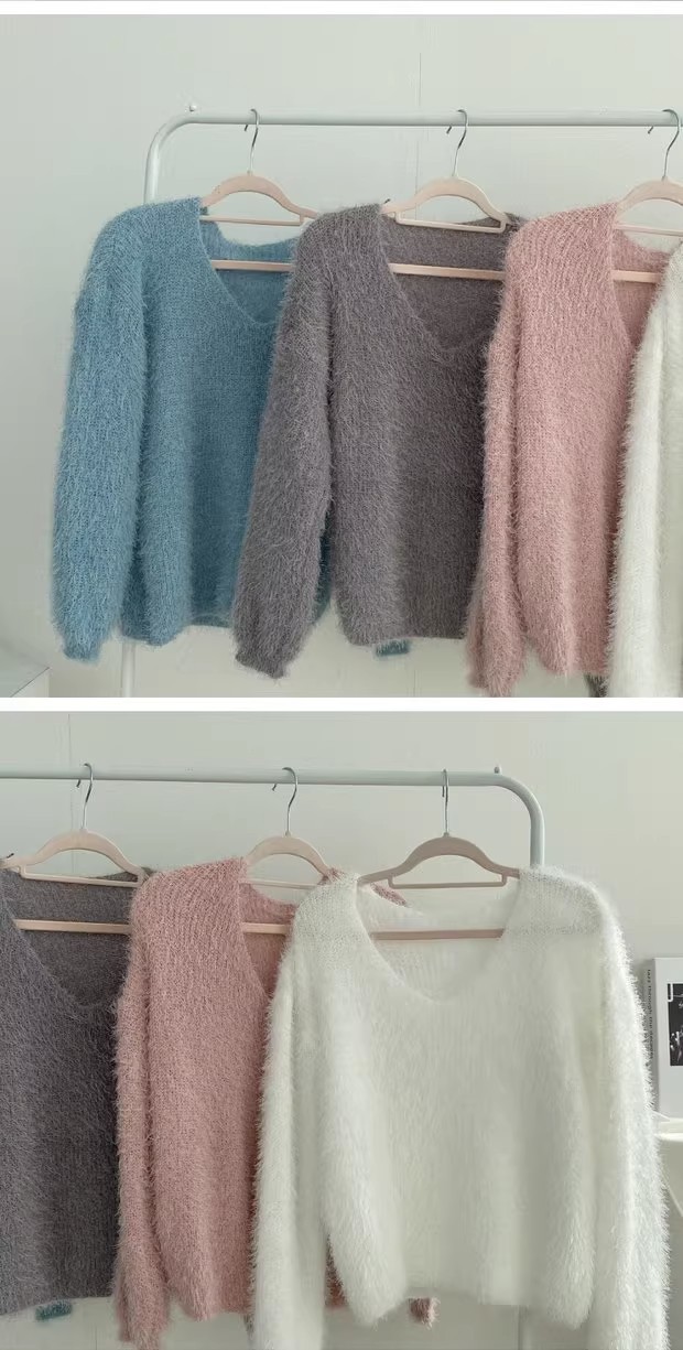 Трансграничный свитер Amazon Новый свободный осенне-зимний пуловер в европейском и американском стиле с V-образным вырезом, Однотонный женский свитер, толстый свитер из искусственного норкового бархата