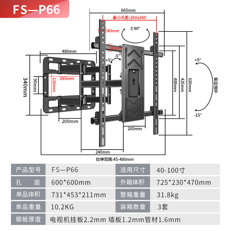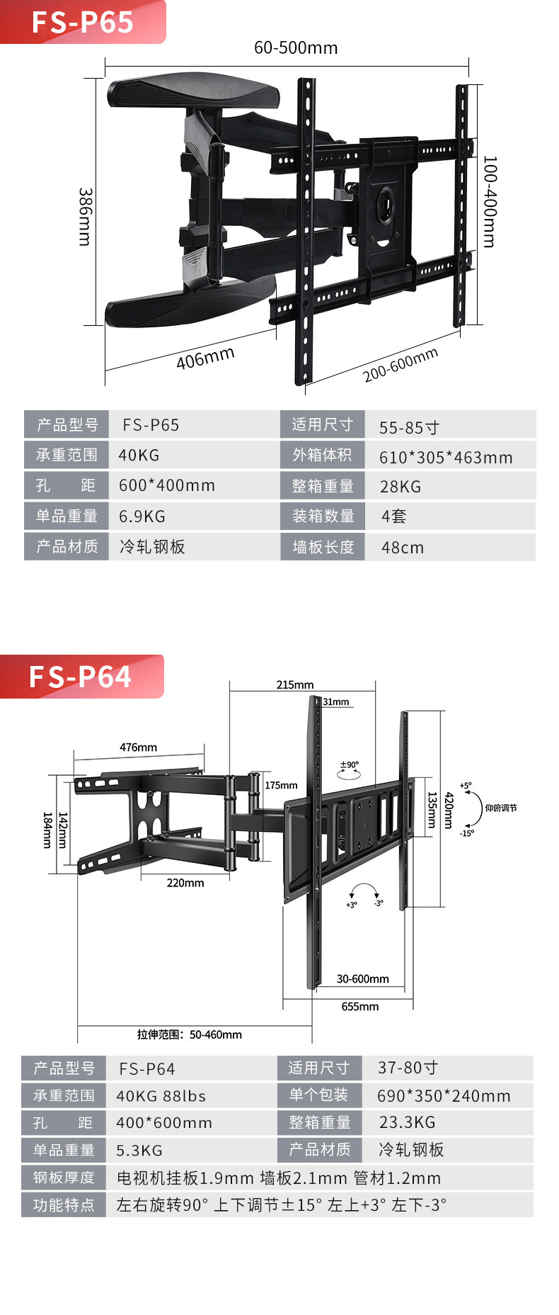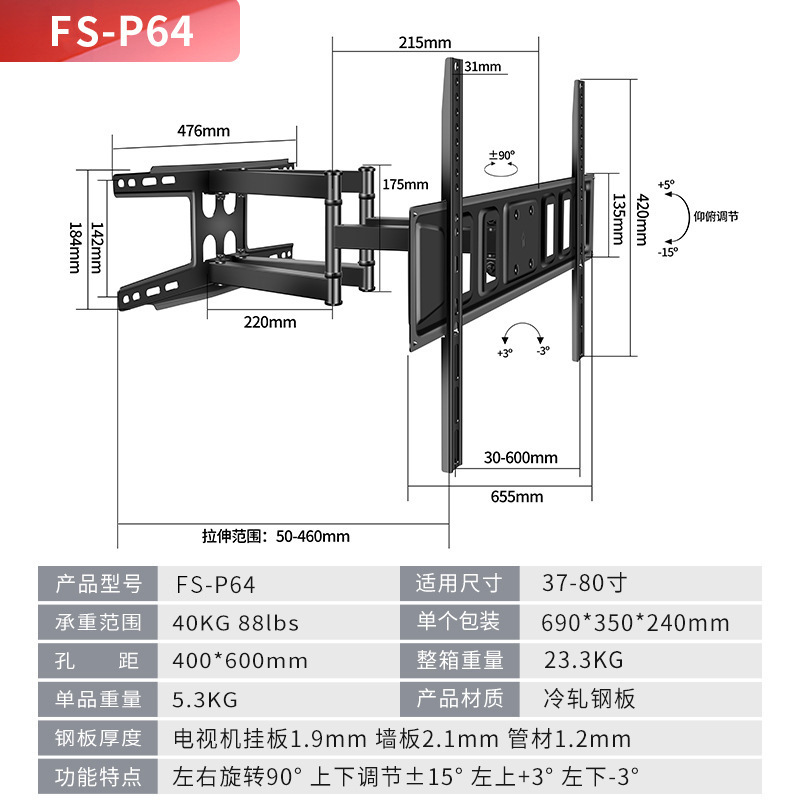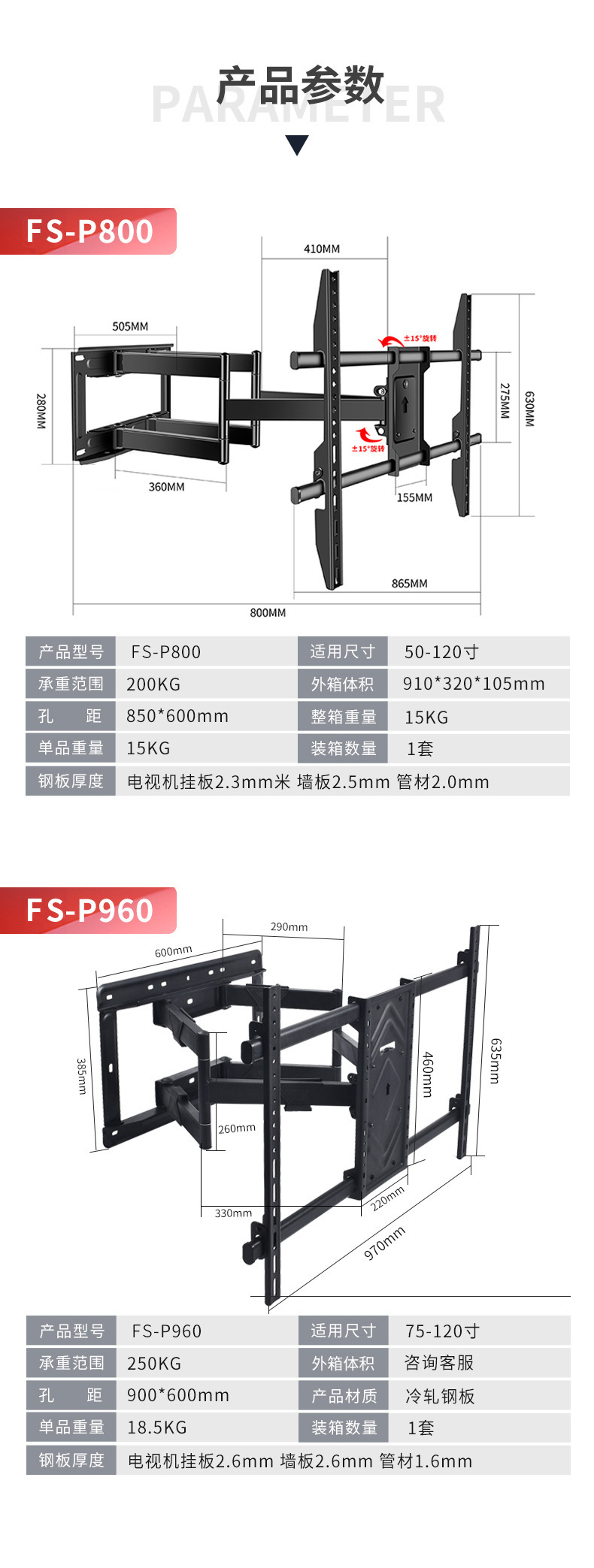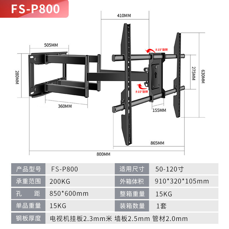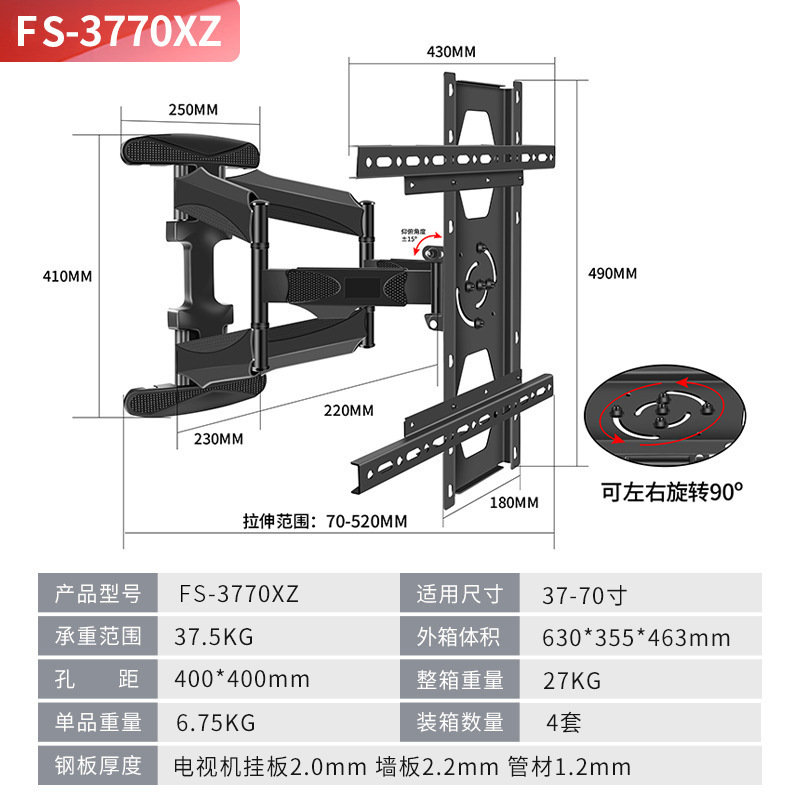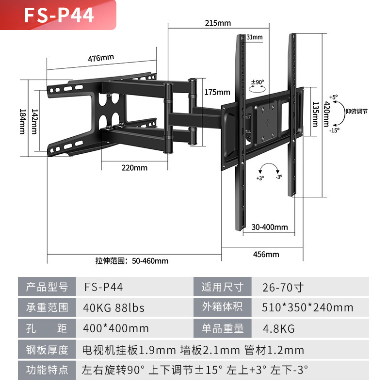 Телевизионная поворотная телескопическая настенная стойка 50-120 дюймов универсальная телевизионная кронштейна регулируемый угол