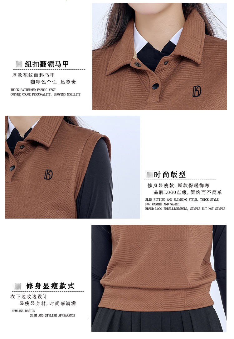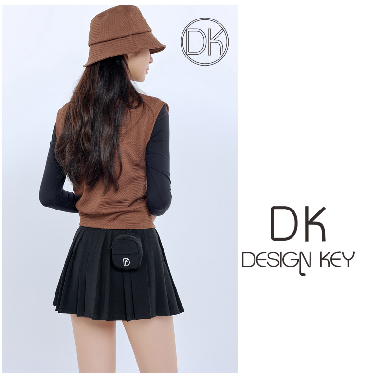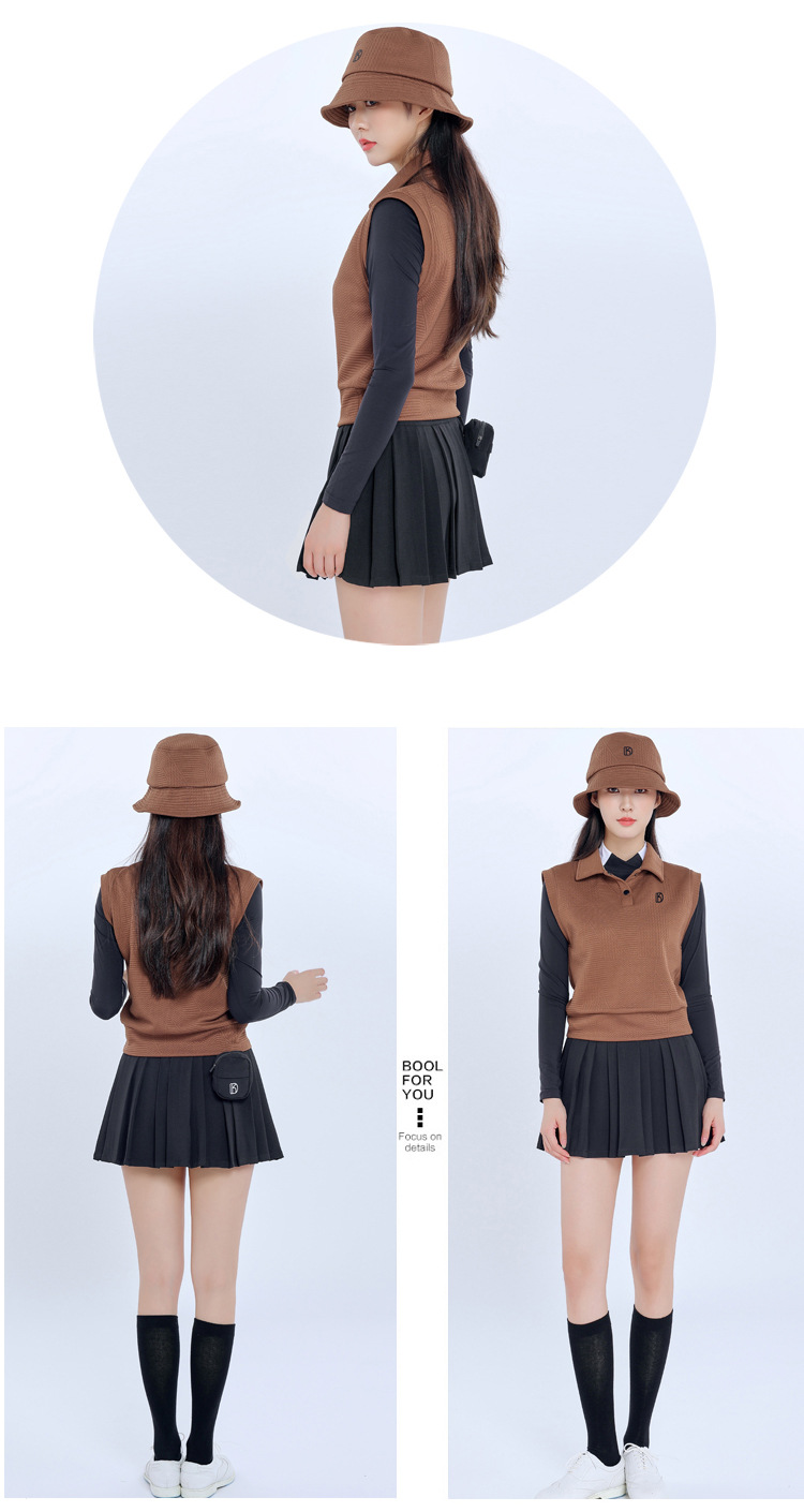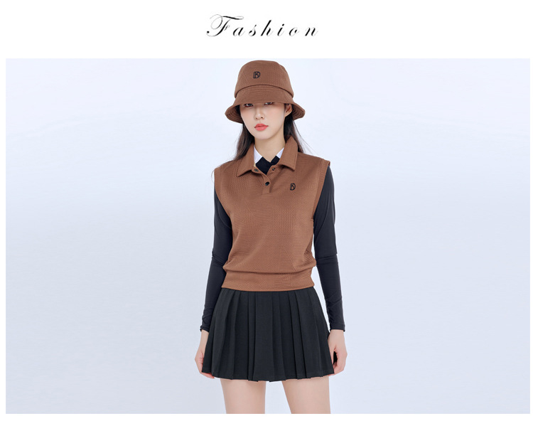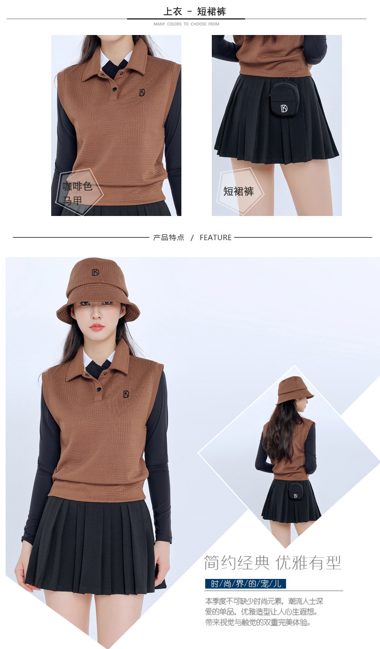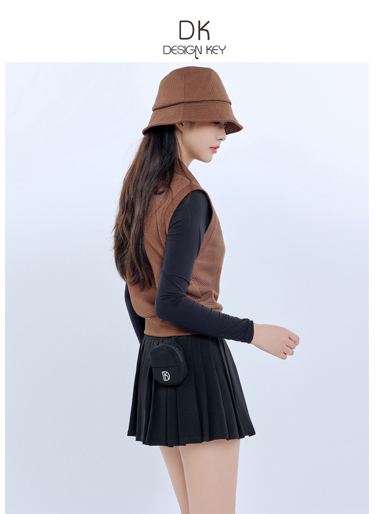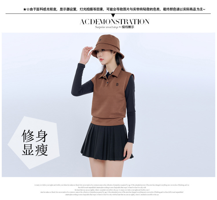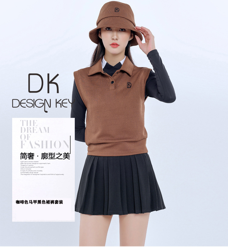 Женский новый жилет без рукавов Brown Golf, осенне-зимний тонкий жилет, теплое верхнее пальто, плиссированная юбка