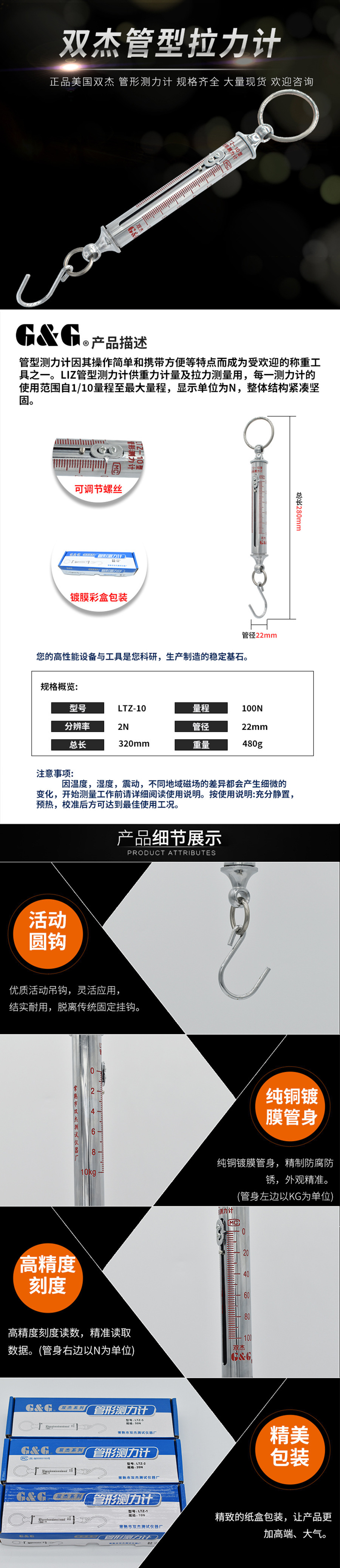 G & G/Shuangjie серии LTZ трубчатый динамометр пружинный Ньютон Натяжной гравиметр шкала крюк шкала