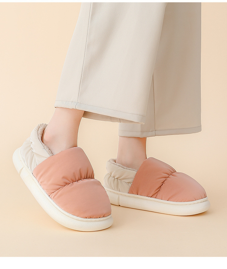 Хлопковые тапочки для женщин, новинка 2023 года, зимние домашние тапочки на каблуке, теплые, водонепроницаемые, на толстой подошве, нескользящие, для мужчин, зимний стиль