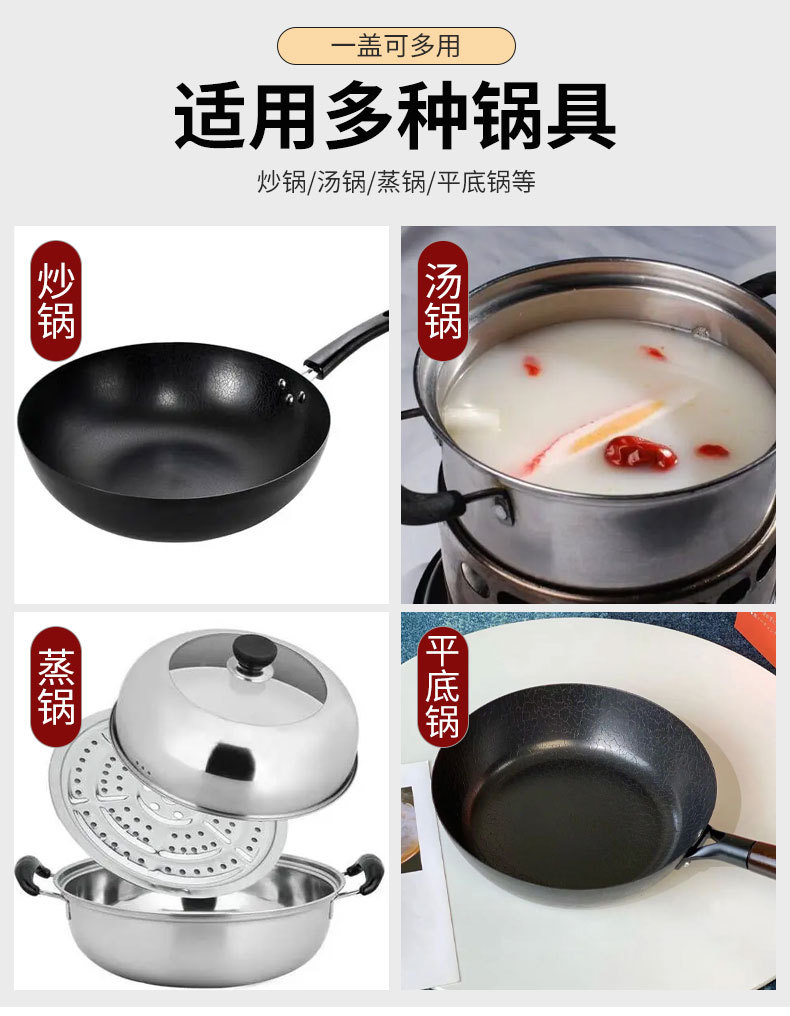 Крышки для кухонной посуды, нержавеющая сталь, вертикальные стеклянные крышки для кастрюль, ударопрочные, взрывобезопасные, с видимым окном, термостойкие, комбинированные крышки для кастрюль оптом