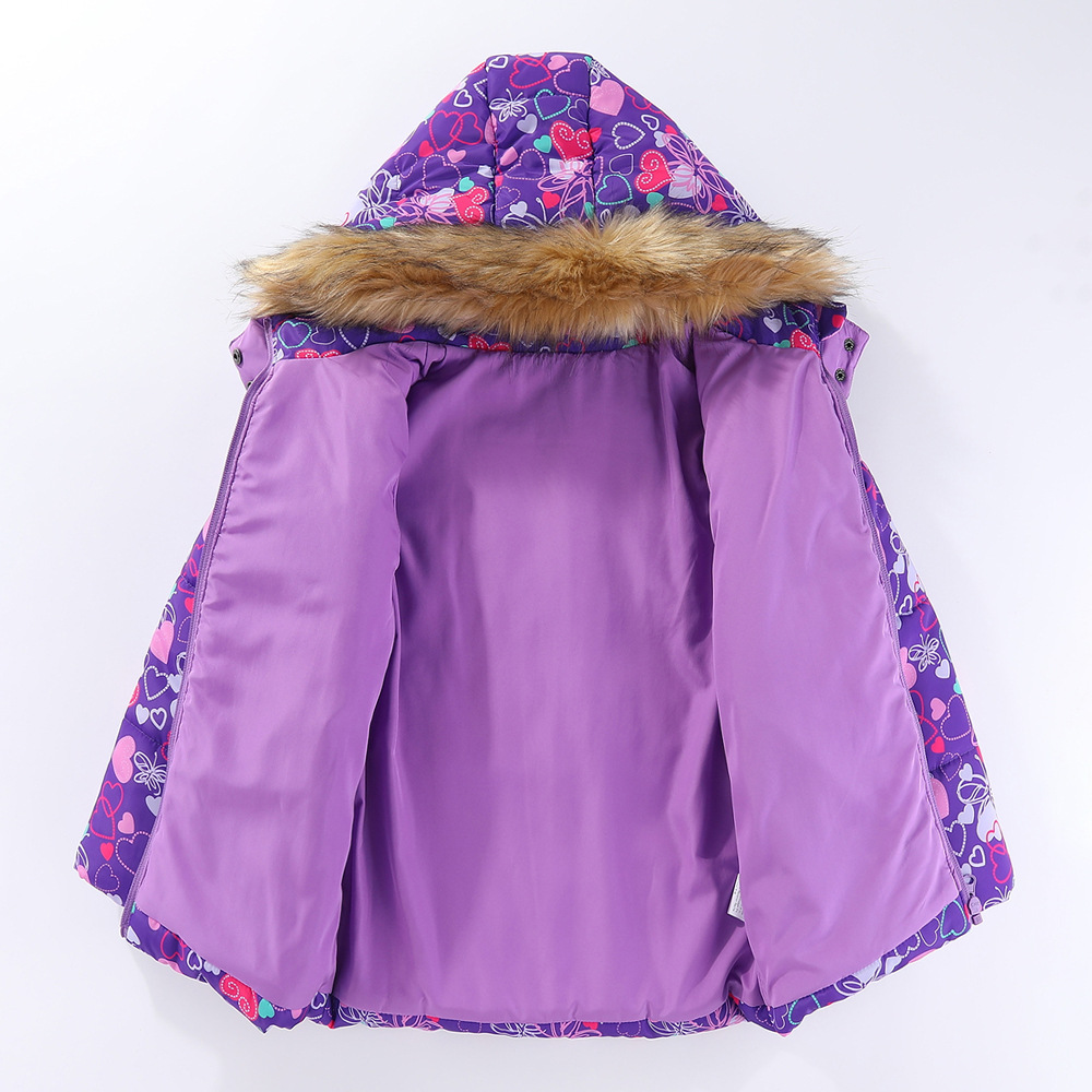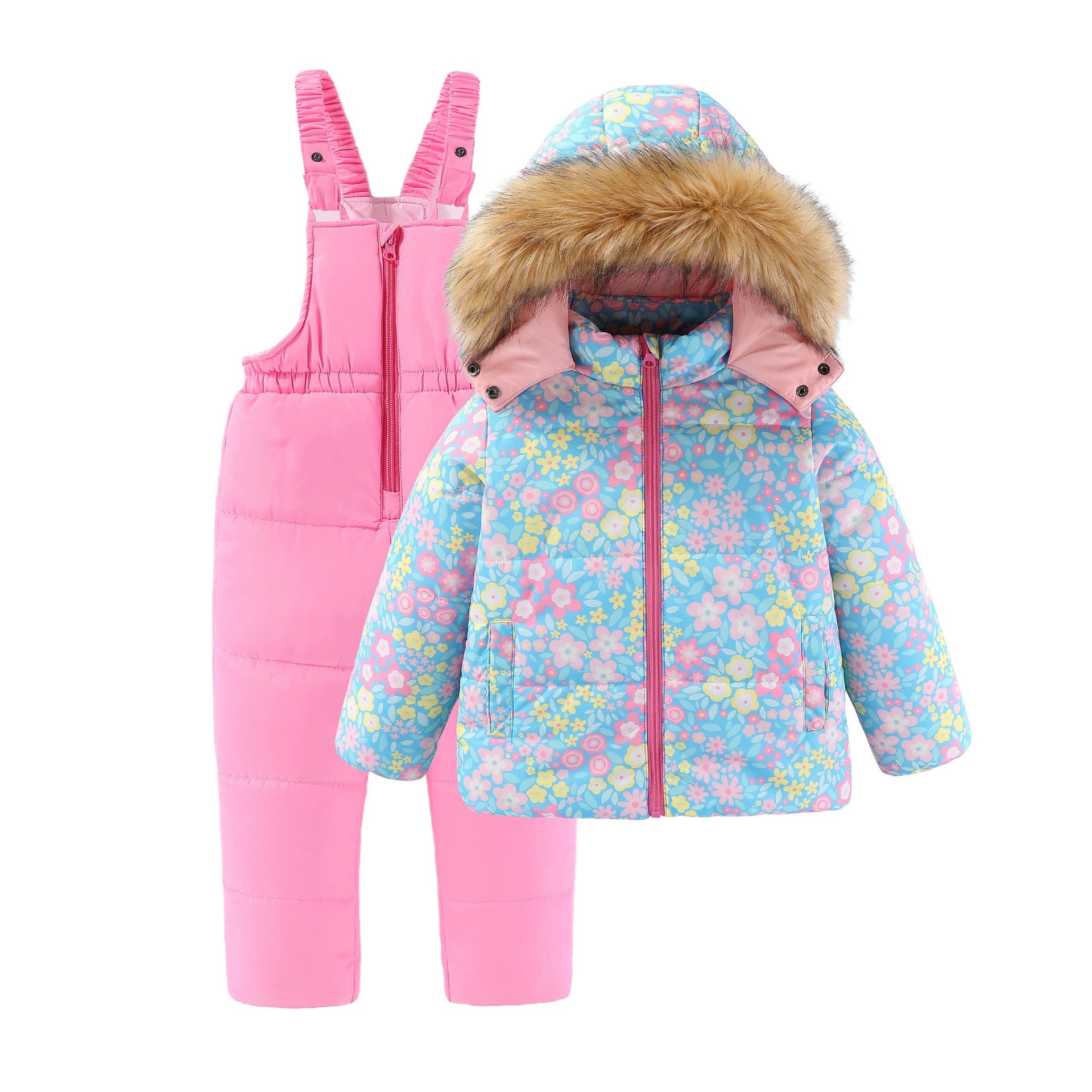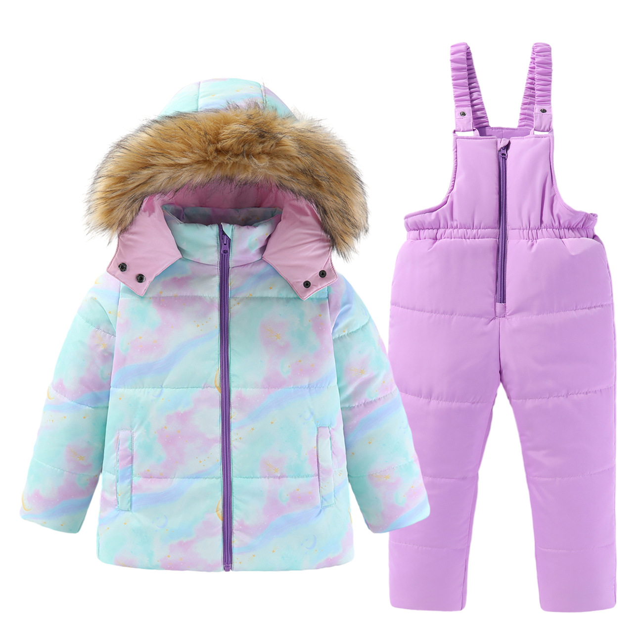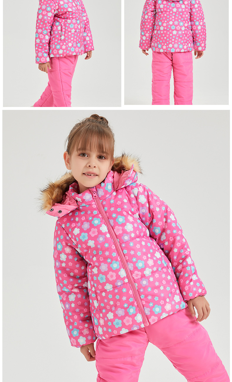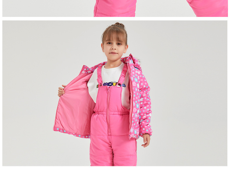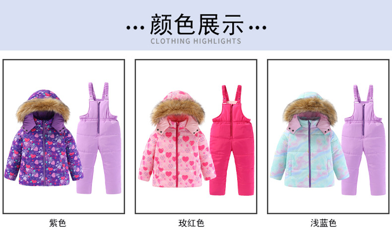 Новый зимний теплый костюм для девочек с хлопковой подкладкой и большим шерстяным воротником, трансграничный детский лыжный костюм для отдыха на открытом воздухе, комплект из двух предметов