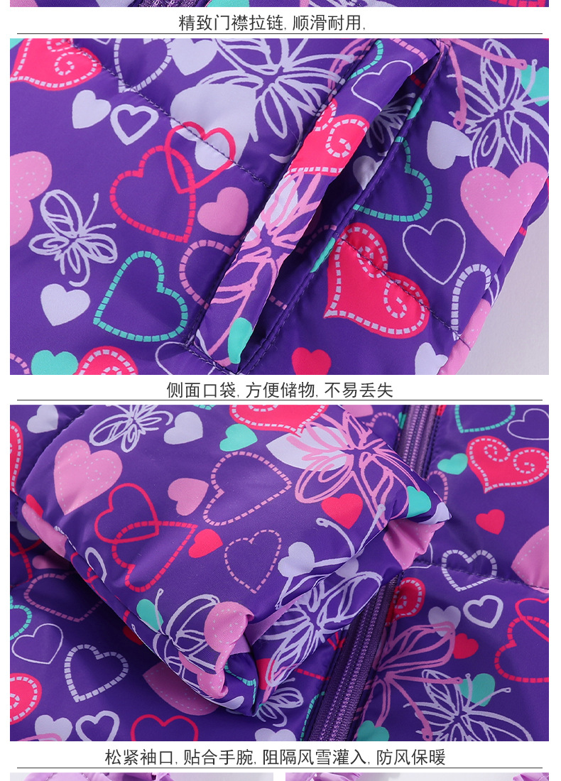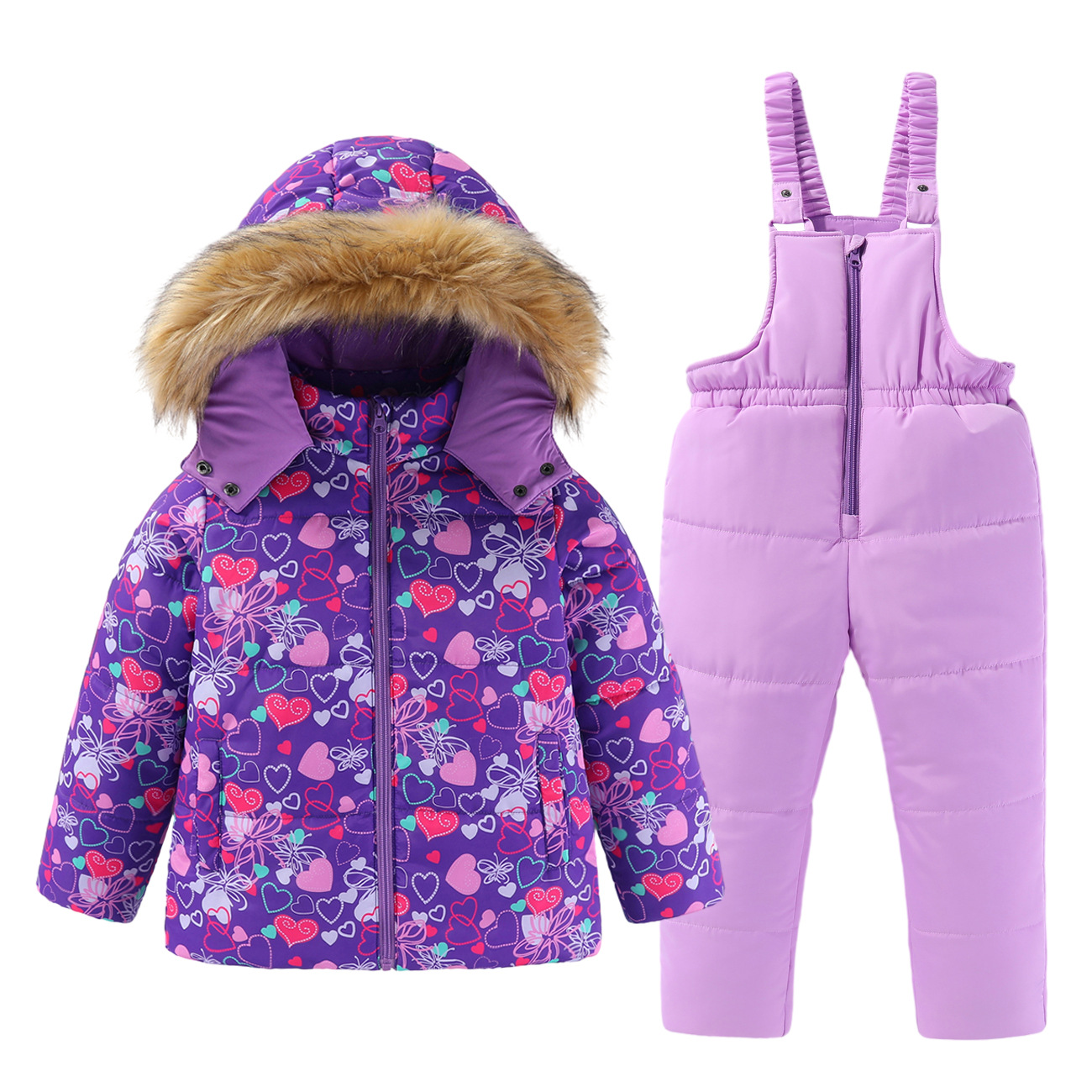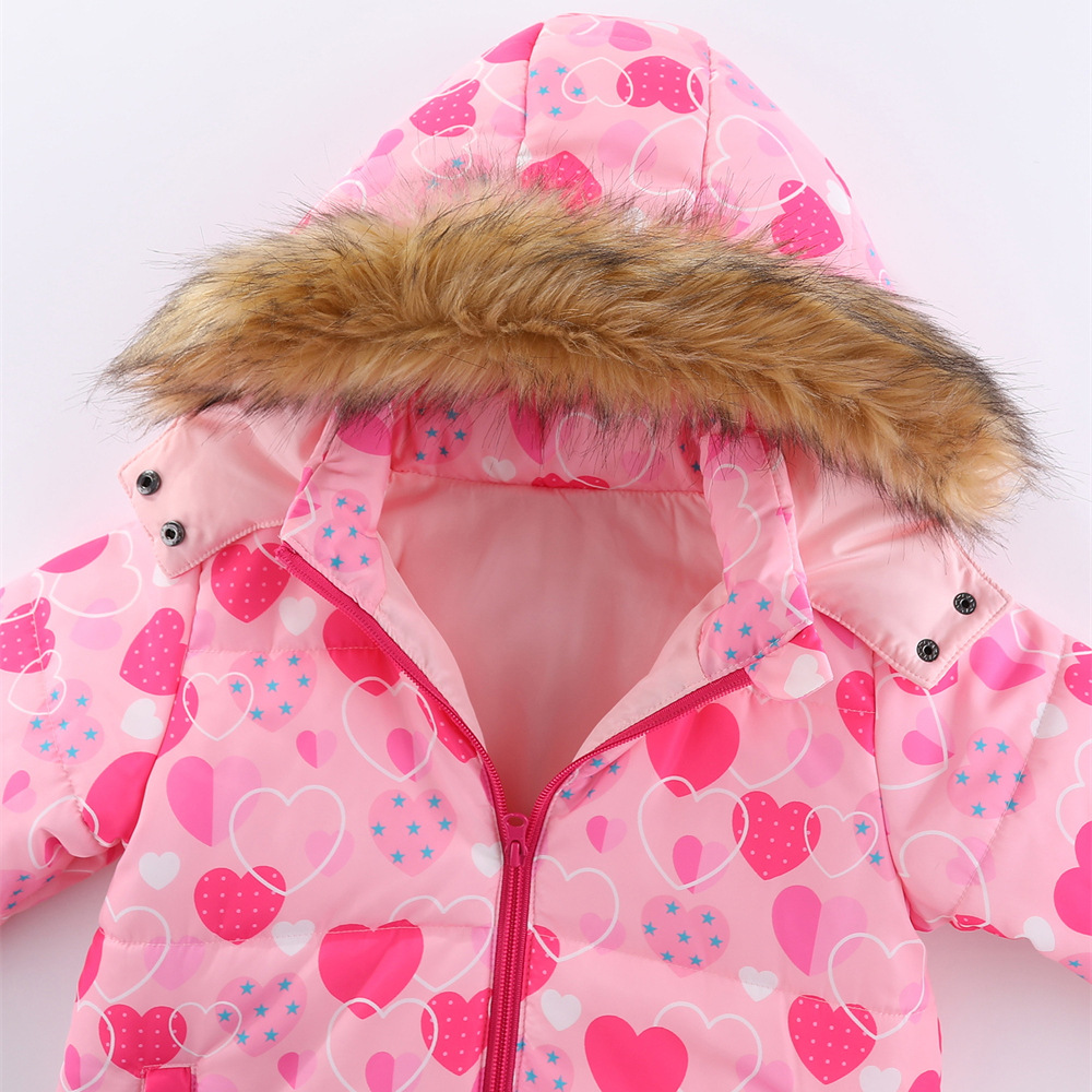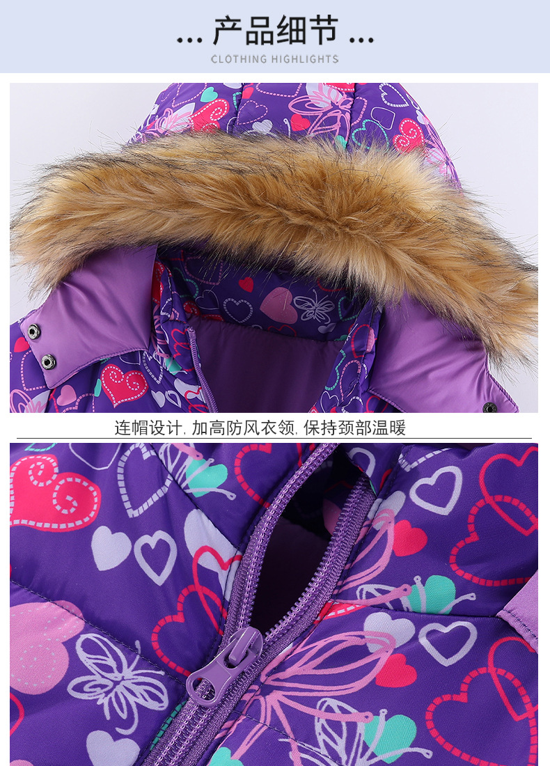 Новый зимний теплый костюм для девочек с хлопковой подкладкой и большим шерстяным воротником, трансграничный детский лыжный костюм для отдыха на открытом воздухе, комплект из двух предметов