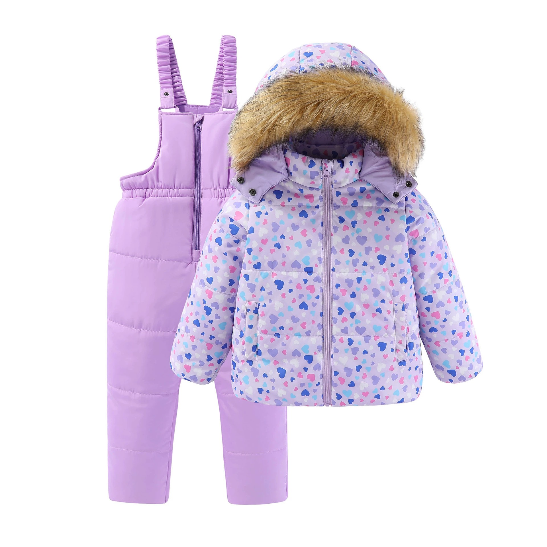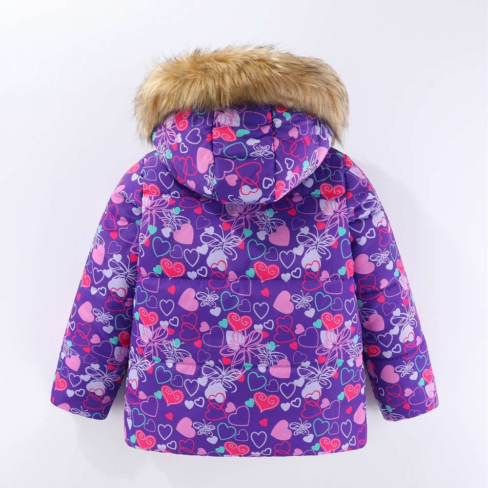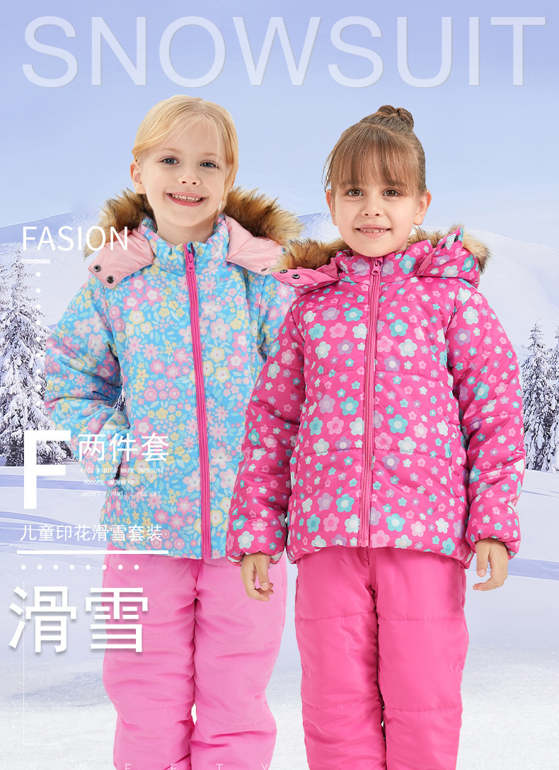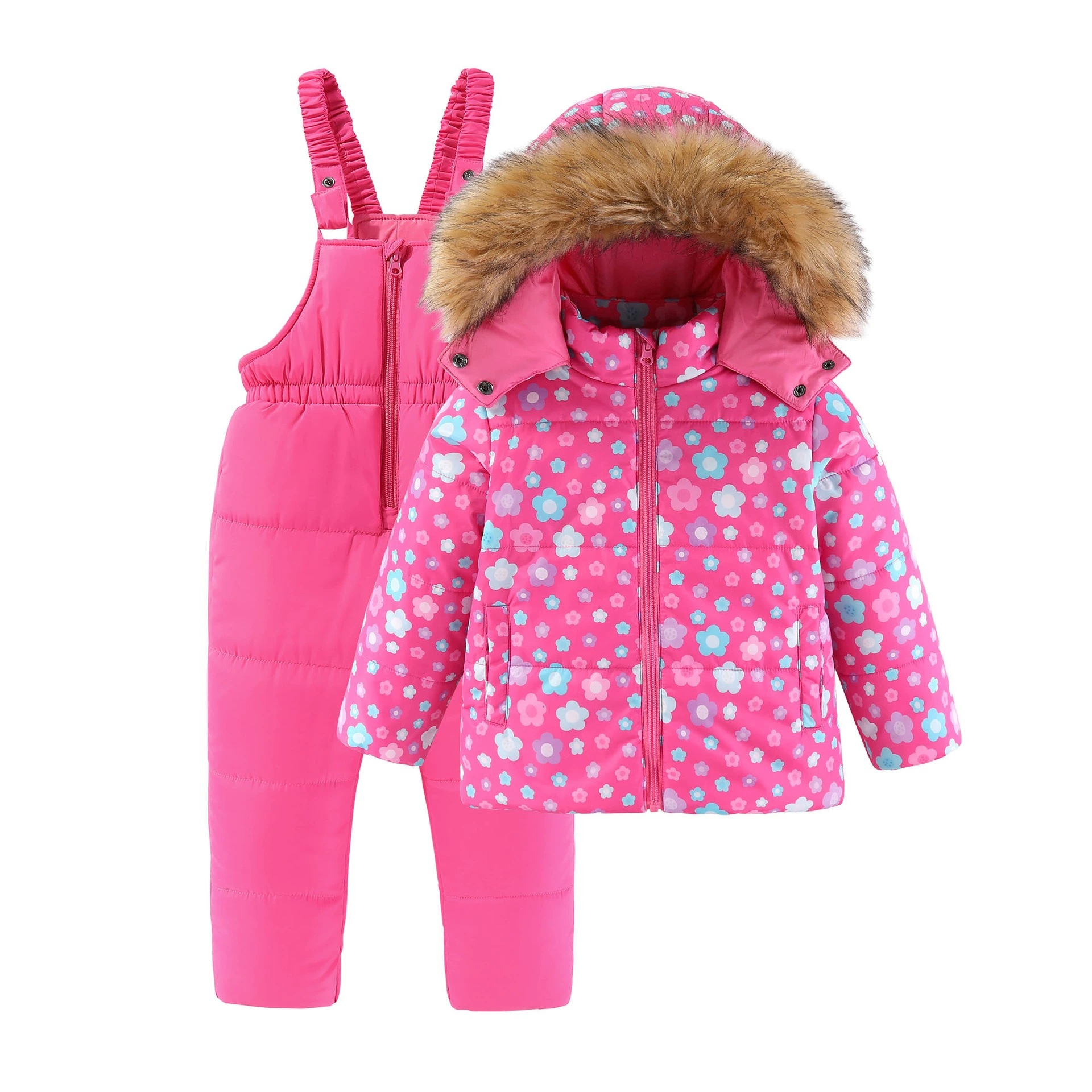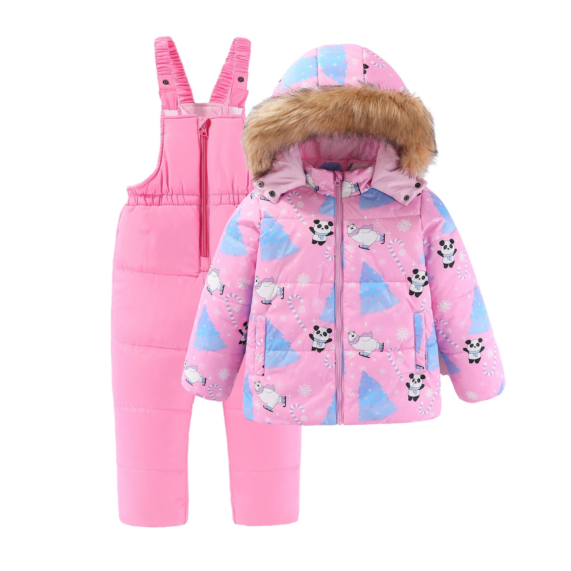 Новый зимний теплый костюм для девочек с хлопковой подкладкой и большим шерстяным воротником, трансграничный детский лыжный костюм для отдыха на открытом воздухе, комплект из двух предметов