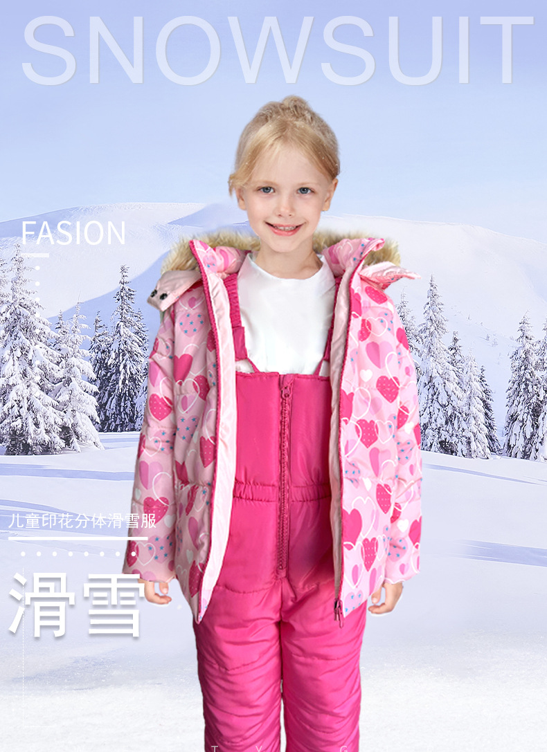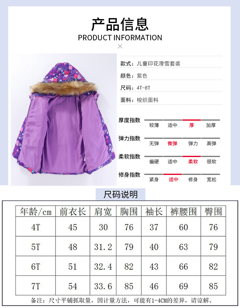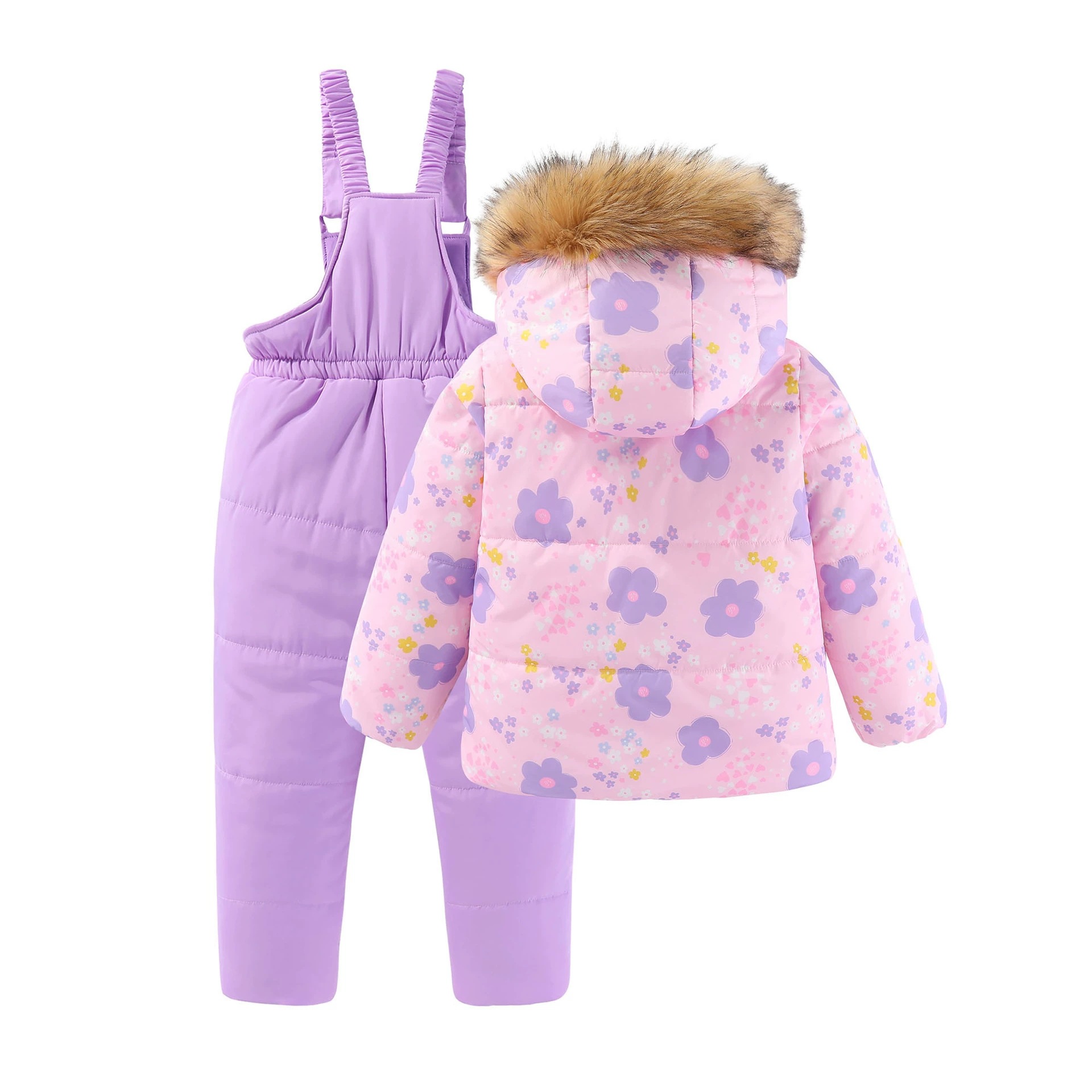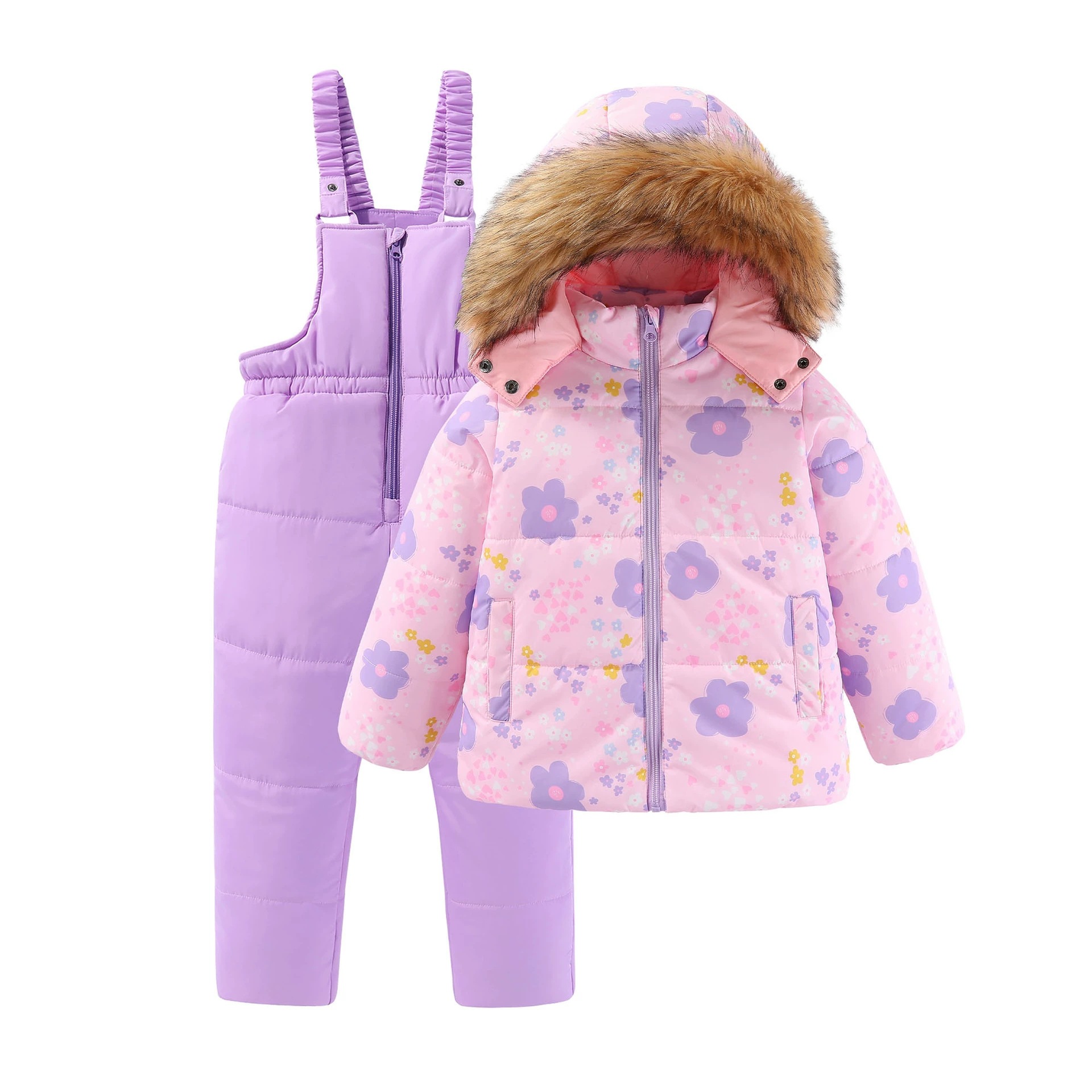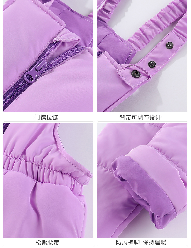 Новый зимний теплый костюм для девочек с хлопковой подкладкой и большим шерстяным воротником, трансграничный детский лыжный костюм для отдыха на открытом воздухе, комплект из двух предметов