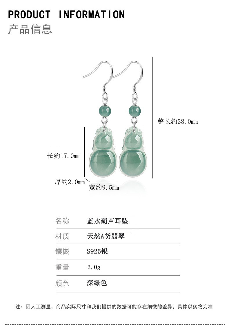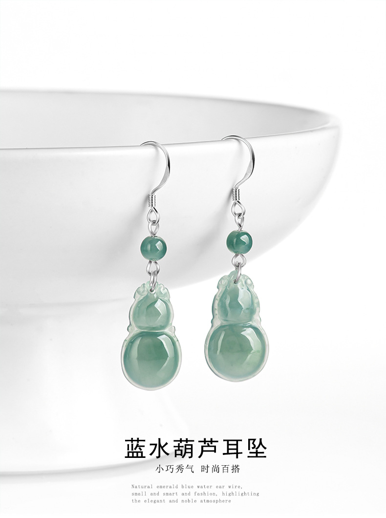 Высококачественные натуральные товары из нефрита, синяя водная тыква, серьги S925, серебро, ледяной нефрит, модные женские серьги, серьги