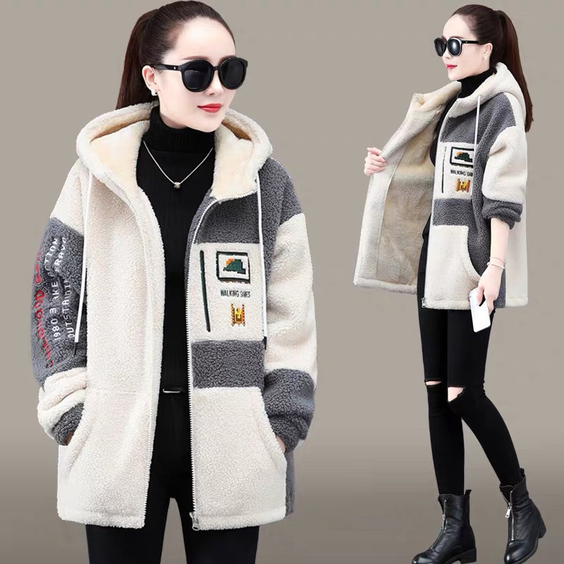 Женское флисовое пальто из ягненка 2023 Зимняя новая Корейская версия свободного пальто, Повседневный Кардиган на флисовой подкладке, модный свитер