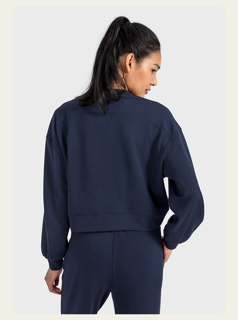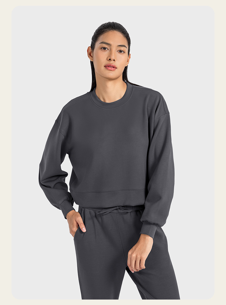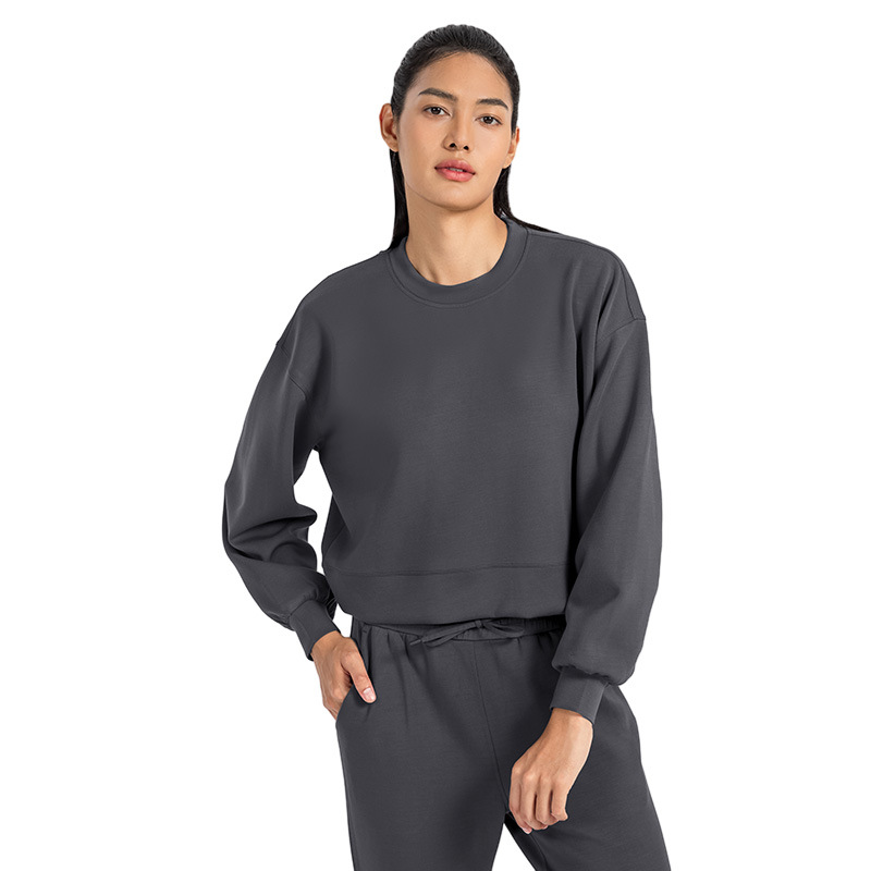 Новый воздушный слой с круглым вырезом, Простой повседневный Универсальный спортивный свитер для йоги с длинными рукавами, приятный для кожи, Быстросохнущий драпированный спортивный свитер для женщин