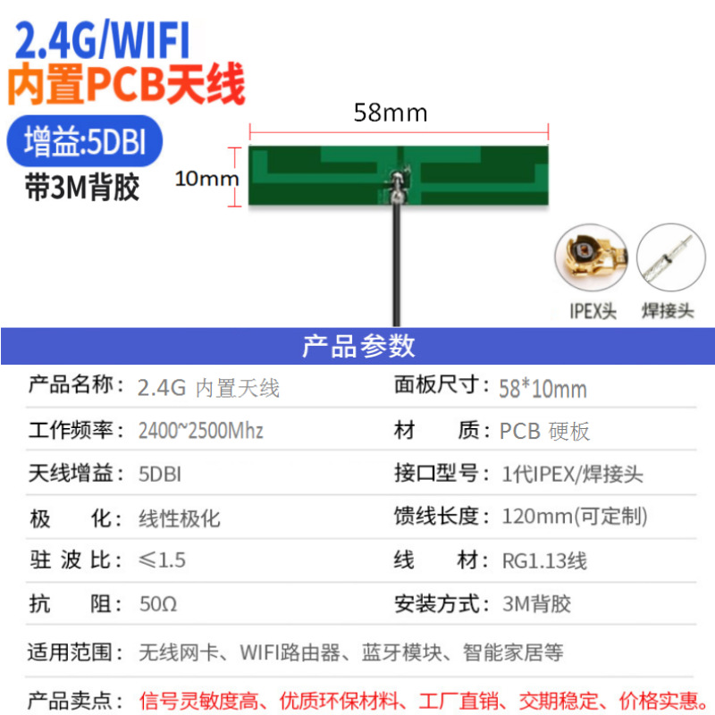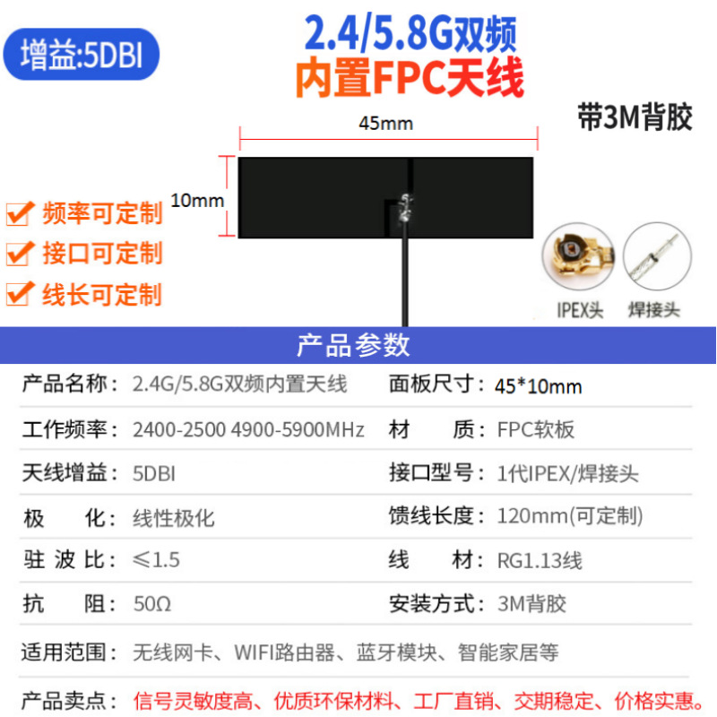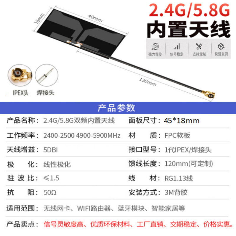 2400-2500/4800-5900*50*1.5 * 3-8DBI * сварной тип (1.13 провода) * 2.4G Встроенная FPC гибкая плата (45X10mm)* 5; 2400-2500/4800-5900*50*1.5 * 3-8DBI * IPEX 1 поколения (1.13 провода) * 2.4G Встроенная FPC Softping (45X10mm)* 5; 2400-2500/4800-5900*50*1.5 * 3-8DBI * IPEX 4 поколения (0.81 провода) * 2.4G Встроенная FPC Softping (45X10mm)* 5; 2400-2500/4800-5900*50*1.5 * 3-8DBI * сварной тип (1.13 провода) * 2.4G Встроенная FPC гибкая плата (46X8mm)* 5; 2400-2500/4800-5900*50*1.5 * 3-8DBI * IPEX 1 поколения (1.13 провода) * 2.4G Встроенная FPC Softping (46X8mm)* 5; 2400-2500/4800-5900*50*1.5 * 3-8DBI * IPEX 4 поколения (0.81 провода) * 2.4G Встроенная FPC Softping (46X8mm)* 5; 2400-2500/4800-5900*50*1.5 * 3-8DBI * сварной тип (1.13 провода) * 2.4G Встроенная FPC гибкая плата (49X4mm)* 5; 2400-2500/4800-5900*50*1.5 * 3-8DBI * IPEX 1 поколения (1.13 провода) * 2.4G Встроенная FPC Softping (49X4mm)* 5; 2400-2500/4800-5900*50*1.5 * 3-8DBI * IPEX 4 поколения (0.81 провода) * 2.4G Встроенная FPC Softping (49X4mm)* 5; 2400-2500/4800-5900*50*1.5 * 3-8DBI * сварной тип (1.13 провода) * 2.4G Встроенная FPC гибкая плата (40X18mm)* 5; 2400-2500/4800-5900*50*1.5 * 3-8DBI * IPEX 1 поколения (1.13 провода) * 2.4G Встроенная FPC Softpeer (40X18mm)* 5; 2400-2500/4800-5900*50*1.5 * 3-8DBI * IPEX 4 поколения (0.81 провода) * 2.4G Встроенная FPC Softping (40X18mm)* 5; 2400-2500/4800-5900*50*1.5 * 3-8DBI * сварной тип (1.13 провода) * 2.4G Встроенная FPC гибкая плата (34X9mm)* 5; 2400-2500/4800-5900*50*1.5 * 3-8DBI * IPEX 1 поколения (1.13 провода) * 2.4G Встроенная FPC Softping (34X9mm)* 5; 2400-2500/4800-5900*50*1.5 * 3-8DBI * IPEX 4 поколения (0.81 провода) * 2.4G Встроенная FPC Softping (34X9mm)* 5; 2400-2500/4800-5900*50*1.5 * 3-8DBI * сварной тип (1.13 провода) * 2.4G встроенная печатная плата (58X10mm)* 5; 2400-2500/4800-5900*50*1.5 * 3-8DBI * IPEX 1 поколения (1.13 провода) * 2.4G встроенная печатная плата (58X10mm)* 5; 2400-2500/4800-5900*50*1.5 * 3-8DBI * IPEX 4 поколения (0.81 провода) * 2.4G встроенная печатная плата (58X10mm)* 5; 2400-2500/4800-5900*50*1.5 * 3-8DBI * сварной тип (1.13 провода) * 2.4G встроенная печатная плата (46X8mm)* 5; 2400-2500/4800-5900*50*1.5 * 3-8DBI * IPEX 1 поколения (1.13 провода) * 2.4G встроенная печатная плата (46X8mm)* 5; 2400-2500/4800-5900*50*1.5 * 3-8DBI * IPEX 4 поколения (0.81 провода) * 2.4G встроенная печатная плата (46X8mm)* 5; 2400-2500/4800-5900*50*1.5 * 3-8DBI * Сварной тип (1.13 провода) * Двухдиапазонный встроенный FPC Softping (45X10mm)* 5; 2400-2500/4800-5900*50*1.5 * 3-8DBI * IPEX 1 поколения (1.13 провода) * Двухдиапазонный встроенный FPC Softpads (45X10mm)* 5; 2400-2500/4800-5900*50*1.5 * 3-8DBI * IPEX 4 поколения (0.81 провода) * Двухдиапазонный встроенный FPC Softpads (45X10mm)* 5; 2400-2500/4800-5900*50*1.5 * 3-8DBI * Сварной тип (1.13 провода) * Двухдиапазонный встроенный FPC Softping (40X18mm)* 5; 2400-2500/4800-5900*50*1.5 * 3-8DBI * IPEX 1 поколения (1.13 провода) * Двухдиапазонный встроенный FPC Softpads (40X18mm)* 5; 2400-2500/4800-5900*50*1.5 * 3-8DBI * IPEX 4 поколения (0.81 провода) * Двухдиапазонный встроенный FPC Softpads (40X18mm)* 5; 2400-2500/4800-5900*50*1.5 * 3-8DBI * Сварной тип (1.13 провода) * Двухдиапазонный встроенный FPC Softping (30X11mm)* 5; 2400-2500/4800-5900*50*1.5 * 3-8DBI * IPEX 1 поколения (1.13 провода) * Двухдиапазонный встроенный FPC Softpads (30X11mm)* 5; 2400-2500/4800-5900*50*1.5 * 3-8DBI * IPEX 4 поколения (0.81 провода) * Двухдиапазонный встроенный FPC Softpads (30X11mm)* 5; 2400-2500/4800-5900*50*1.5 * 3-8DBI * сварной тип (1.13 провода) * двухдиапазонный встроенный PCB жесткая плата (90 X10 mm)* 5; 2400-2500/4800-5900*50*1.5 * 3-8DBI * IPEX 1 поколения (1.13 провода) * Двухдиапазонный встроенный PCB жесткая плата (90 X10 mm)* 5; 2400-2500/4800-5900*50*1.5 * 3-8DBI * IPEX 4 поколения (0.81 провода) * Двухдиапазонный встроенный PCB жесткая плата (90 X10 mm)* 5; 2400-2500/4800-5900*50*1.5 * 3-8DBI * сварной тип (1.13 провода) * 4G Встроенная FPC Soft (40X15mm)* 5; 2400-2500/4800-5900*50*1.5 * 3-8DBI * IPEX 1 поколения (1.13 провода) * 4G Встроенная FPC Softpeer (40X15mm)* 5; 2400-2500/4800-5900*50*1.5 * 3-8DBI * IPEX 4 поколения (0.81 провода) * 4G Встроенная FPC Softpeer (40X15mm)* 5; 2400-2500/4800-5900*50*1.5 * 3-8DBI * сварной тип (1.13 провода) * 433 Встроенная FPC гибкая плата (44X20mm)* 5; 2400-2500/4800-5900*50*1.5 * 3-8DBI * IPEX 1 поколения (1.13 провода) * 433 Встроенная FPC Softpeg (44X20mm)* 5; 2400-2500/4800-5900*50*1.5 * 3-8DBI * IPEX 4 поколения (0.81 провода) * 433 Встроенная FPC Softpeg (44X20mm)* 5; 2400-2500/4800-5900*50*1.5 * 3-