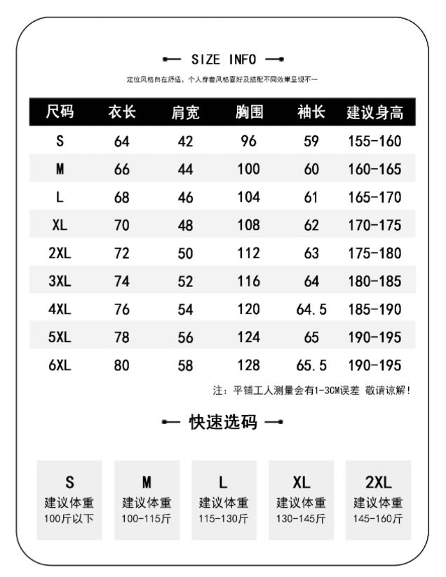 S; M; L; XL; 2XL; 3XL; 4XL; 5XL; 6XL