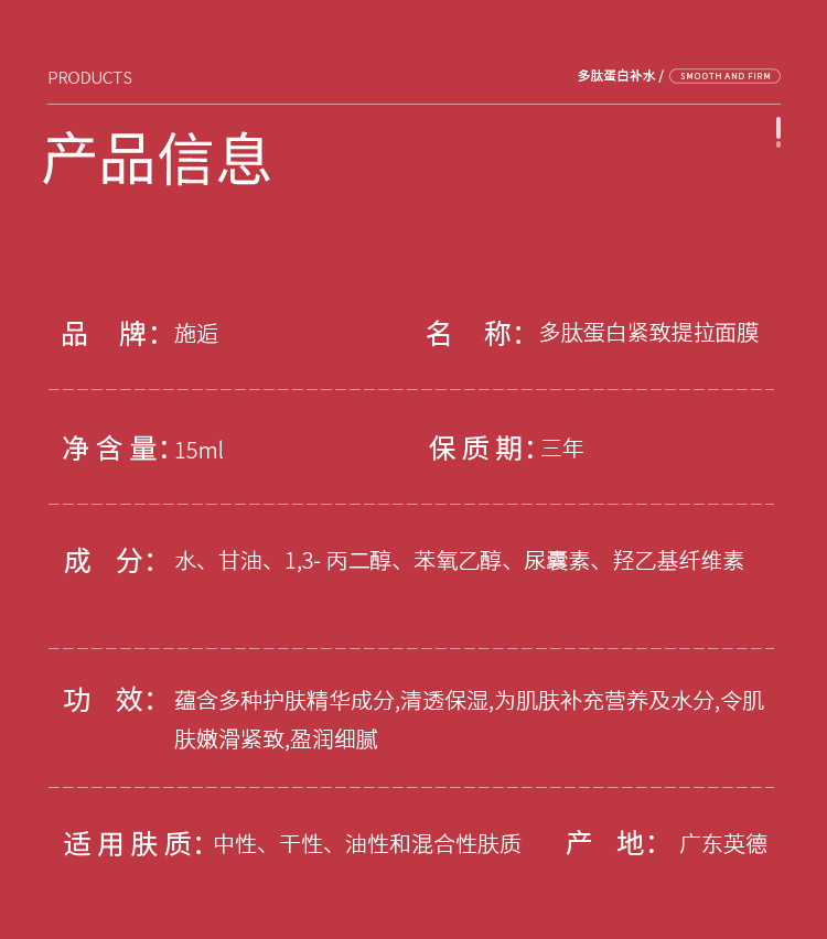 Укрепляющая и лифтинг-маска с полипептидным белком Shitou (листовая); Увлажняющая маска с гиалуроновой кислотой [лист]; Маска-порошок с лизофильной сывороткой с гиалуроновой кислотой [лист]; Увлажняющая лиофилизированная маска с ниацинамидом [листовая упаковка]; Маска из огурца и центеллы азиатской [листовой пакет]; Фуллереновая сублимационная увлажняющая ледяная маска [лист]; Омолаживающая маска Shi Tiao Yellow Water Lily Stay Up Late (листовая); Освежающая и гладкая маска для лица Shitu Green Tea (листовая); Омолаживающая и увлажняющая маска Shitou Natto (листовая); Увлажняющая и омолаживающая маска Resurrection Grass (листовая); Маска с ретинолом Shitu (листовая); Шелковая маска для омоложения кожи с экстрактом ледяной кожи и арбутином (лист); Экстракт ледяной кожи, ниацинамид, увлажняющая и полупрозрачная шелковая маска (лист); Увлажняющая шелковая маска с экстрактом ледяной кожи и жемчужной гиалуроновой кислотой (лист); Увлажняющая и увлажняющая маска с медом Boquanyun (листовая); Увлажняющая маска Boquanyun Olive (листовая); Свежая и увлажняющая маска для лица Boquanyun Red Pomegranate (листовая); Увлажняющая и разглаживающая маска Boquanyun Cucumber (листовая); Увлажняющая маска Boquanyun Blueberry Beauty (листовая); Увлажняющая косметическая маска Boquanyun Aloe Vera (листовая)
