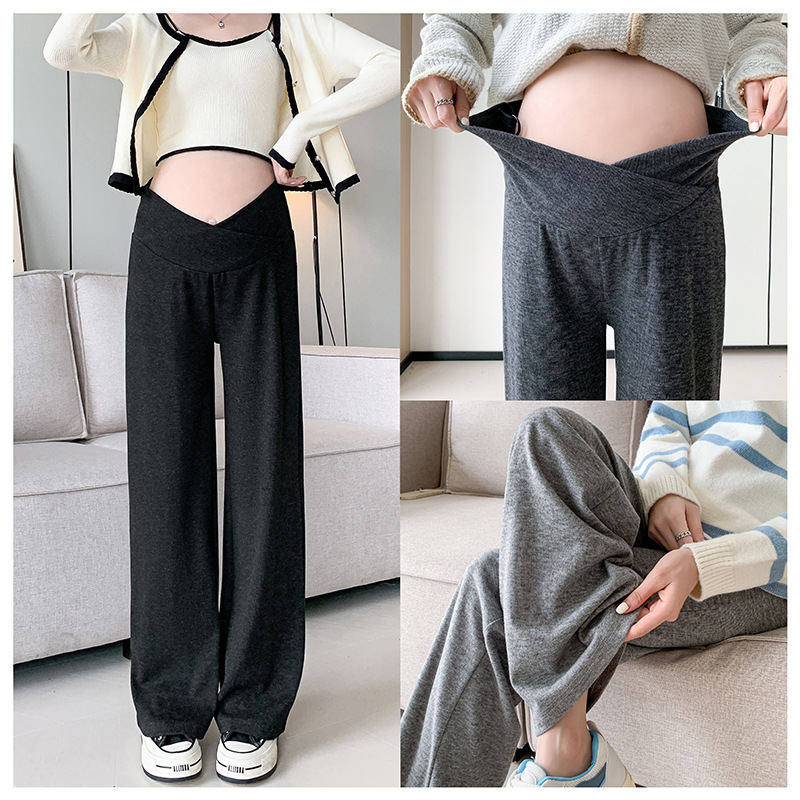 Послеродовые носимые брюки для беременных, осенние и зимние бархатные утолщенные брюки с низкой талией, новинка 2024, свободные прямые узкие широкие брюки