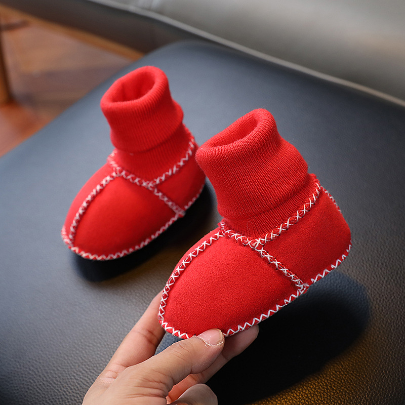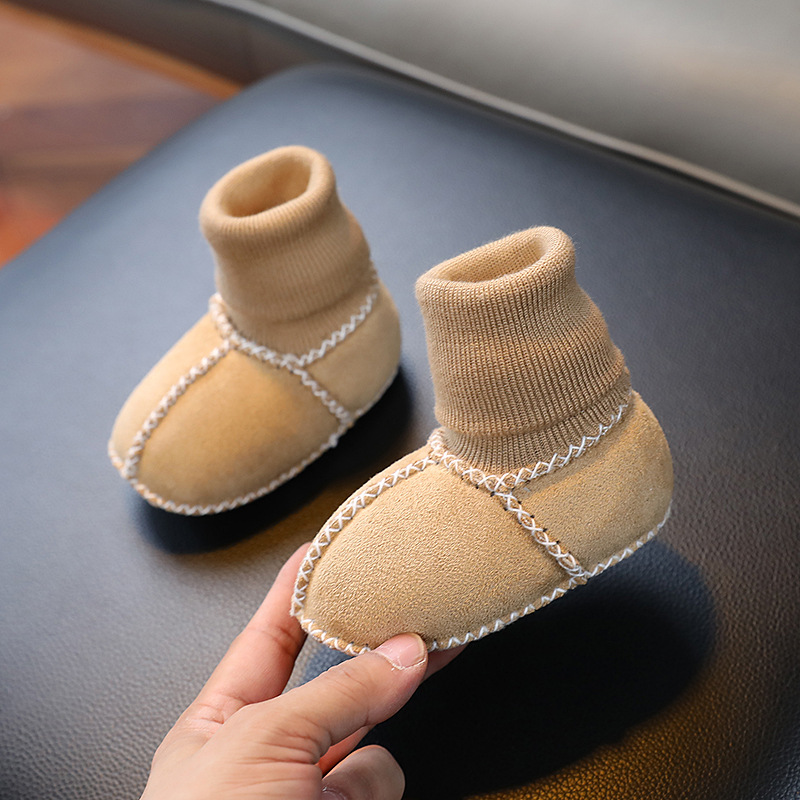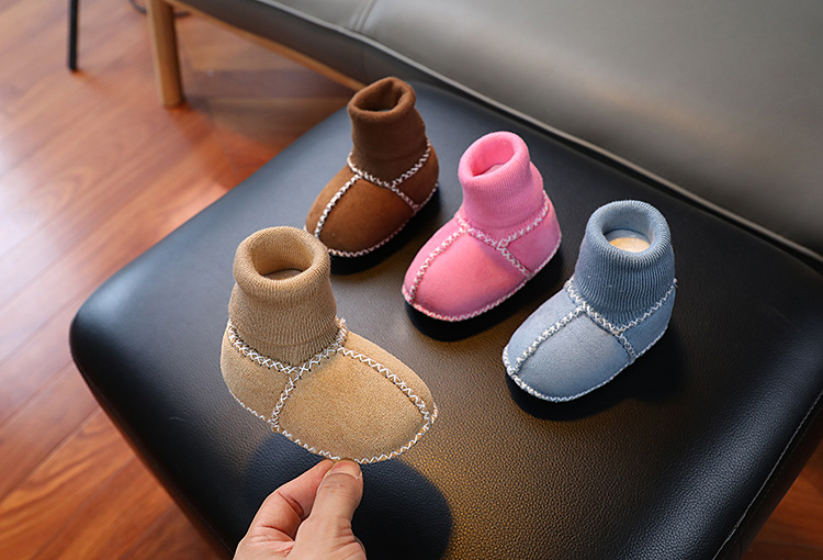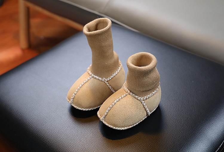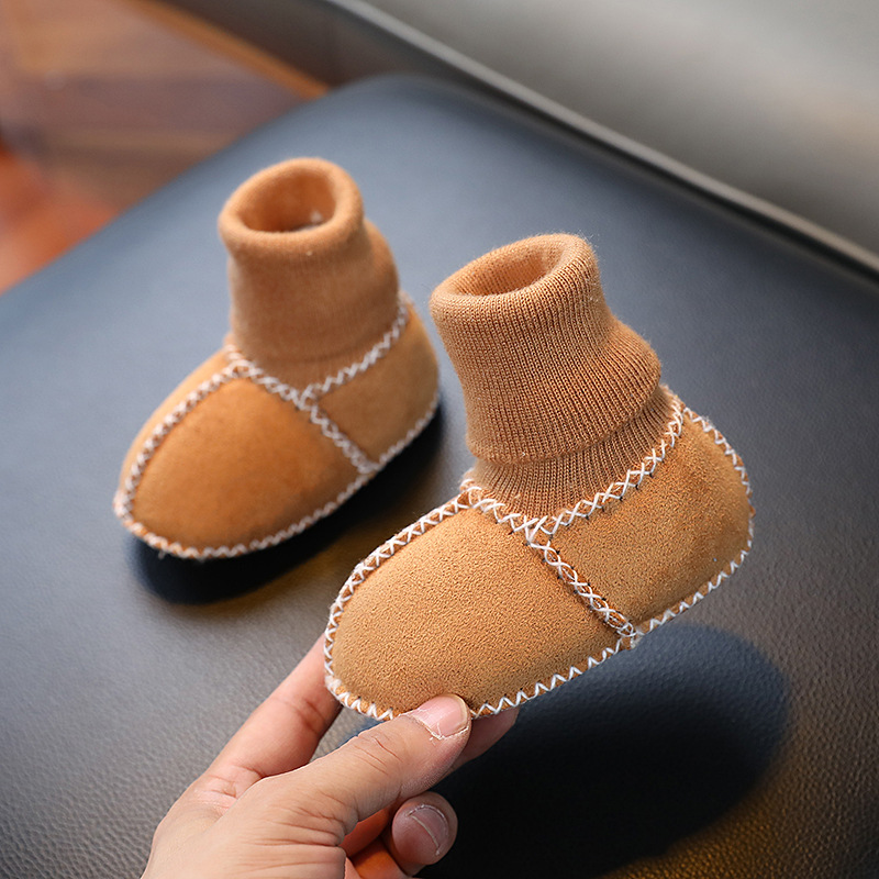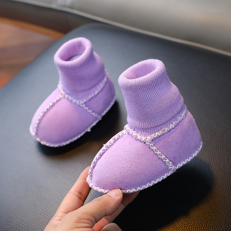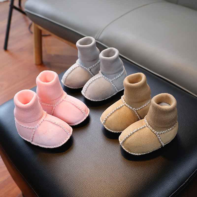 Имитация меховых детских носков обувь детская теплая осень и зима мягкая подошва хлопчатобумажная обувь замша 0-3-6-12 месяцев