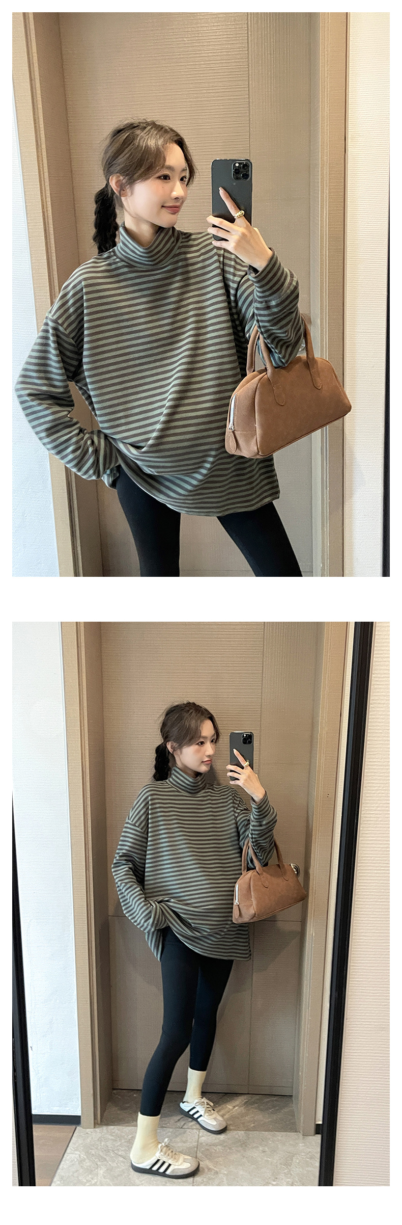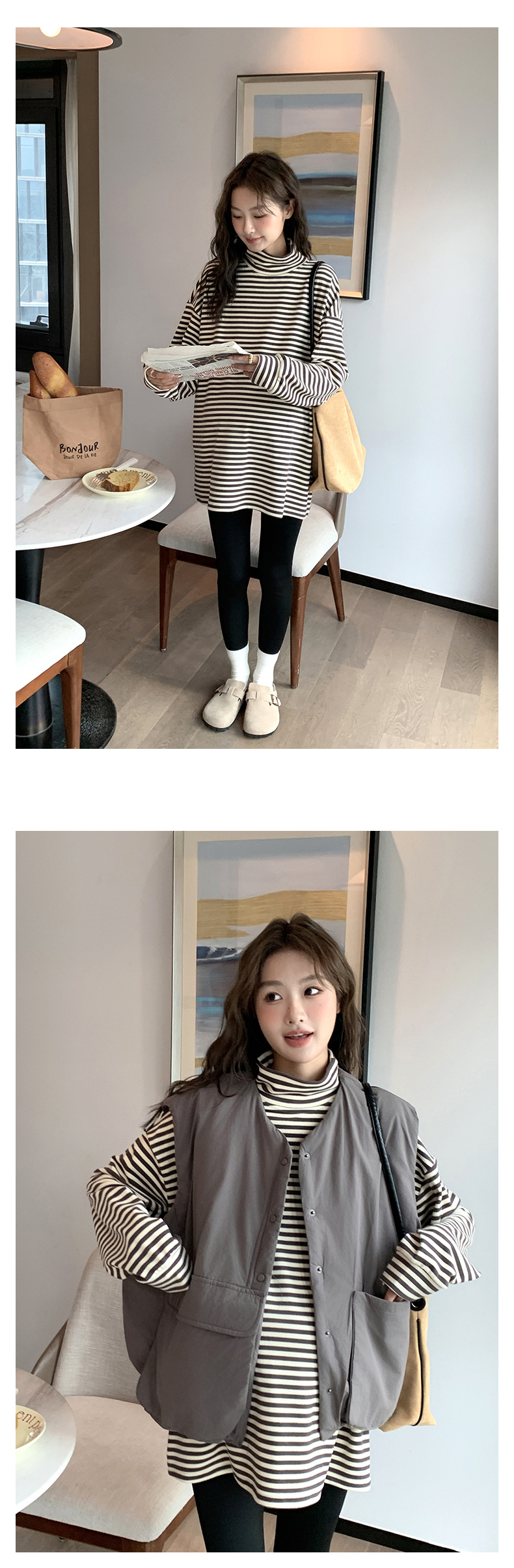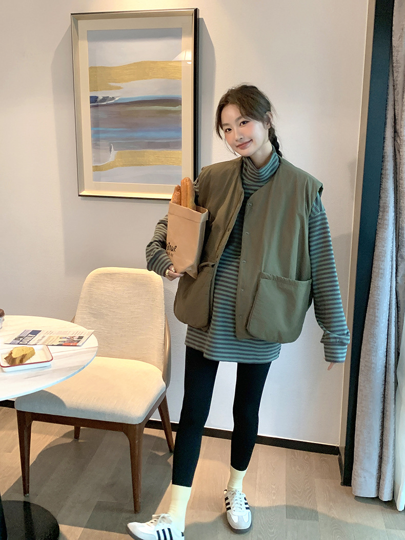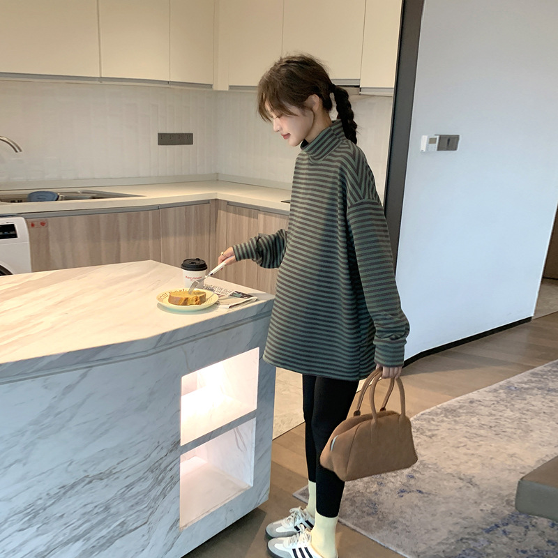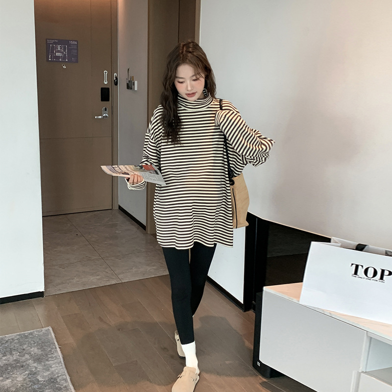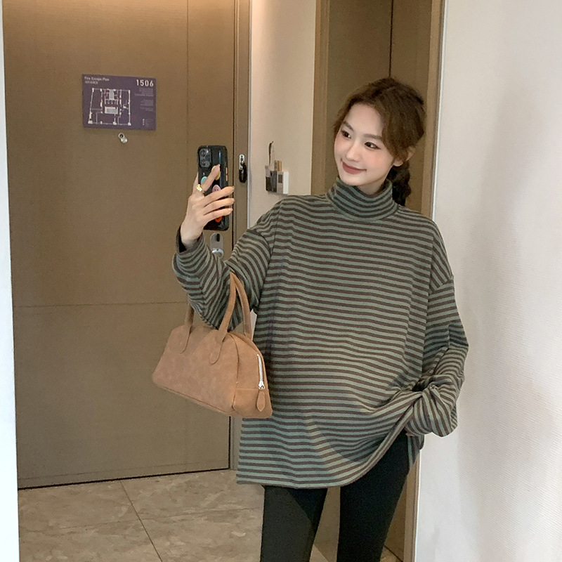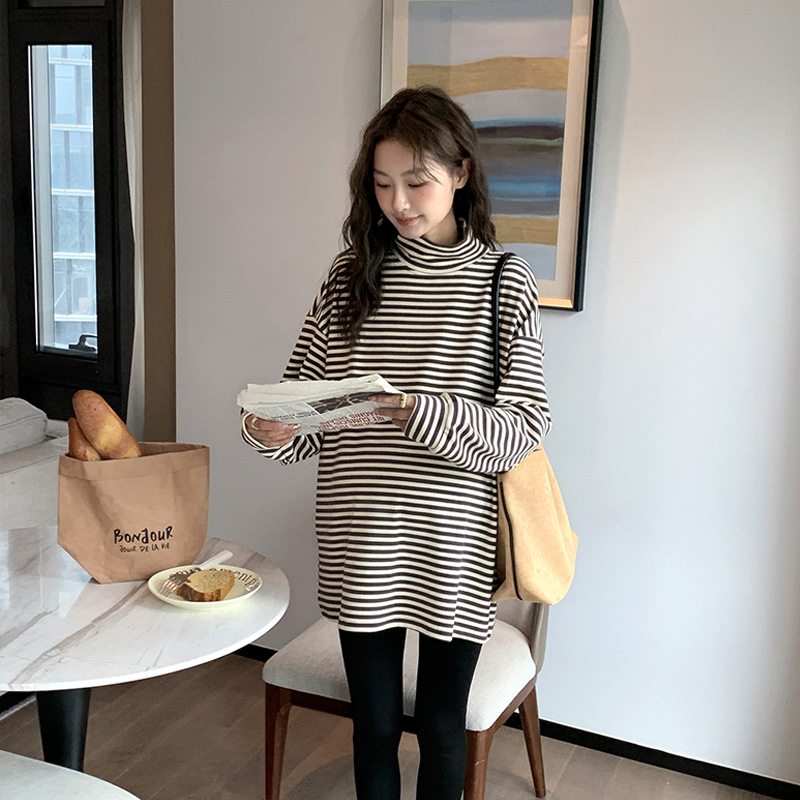 Зимняя Одежда для беременных, Корейская Полосатая Футболка для беременных, утолщенная австралийская бархатная немецкая бархатная Базовая рубашка, свободная, больших размеров, в ленивом стиле