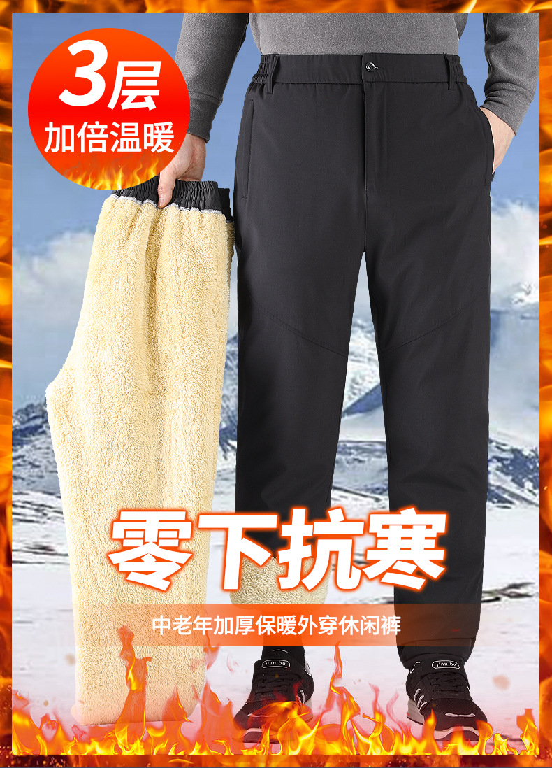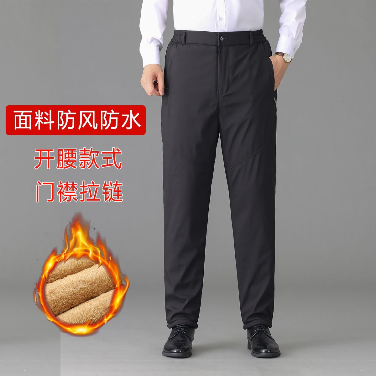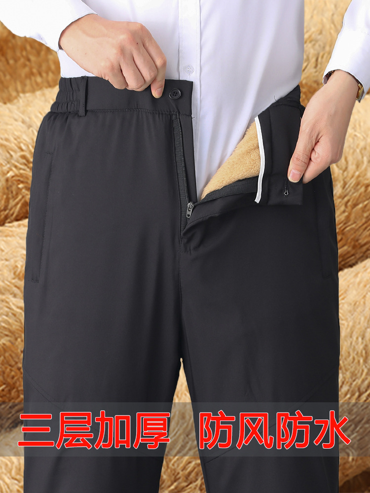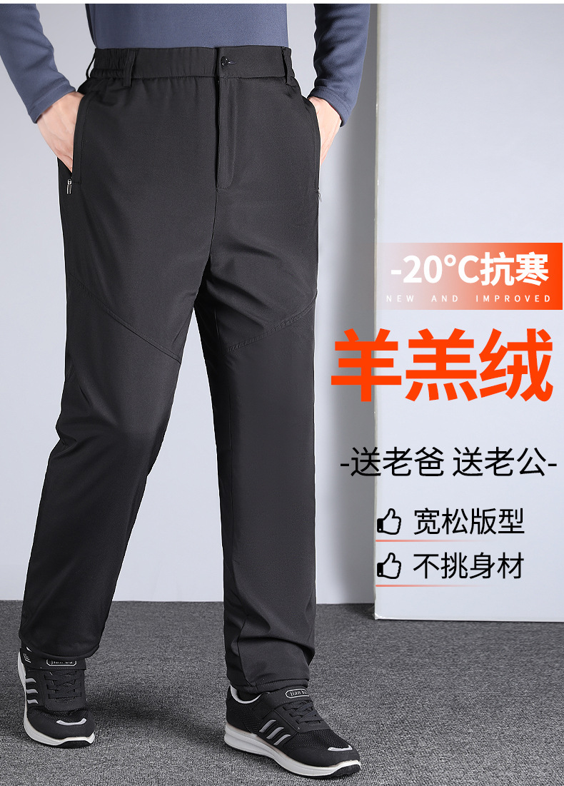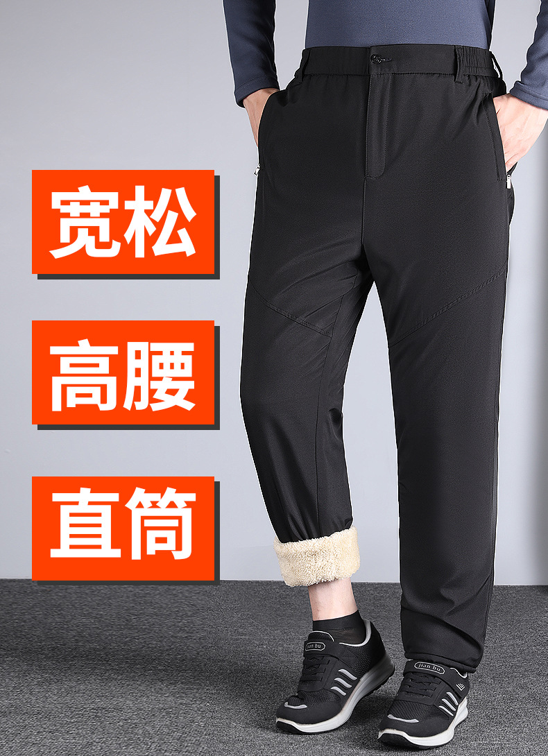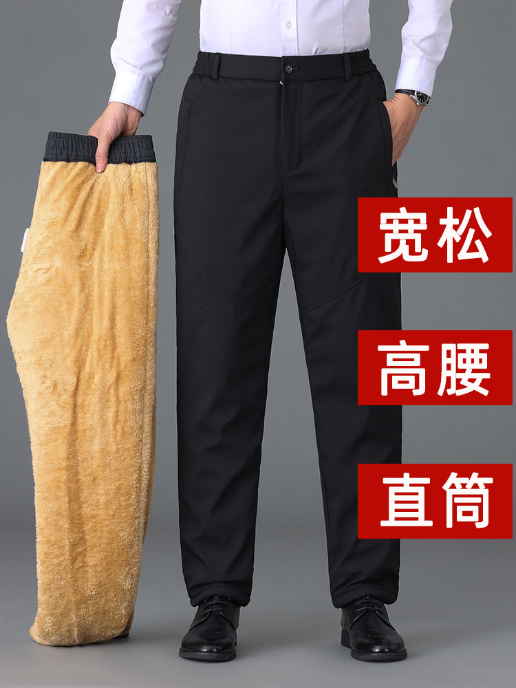 Зимние хлопчатобумажные брюки для папы надеть бархатные брюки для пожилых мужчин с высокой талией и утолщенные кашемировые повседневные брюки