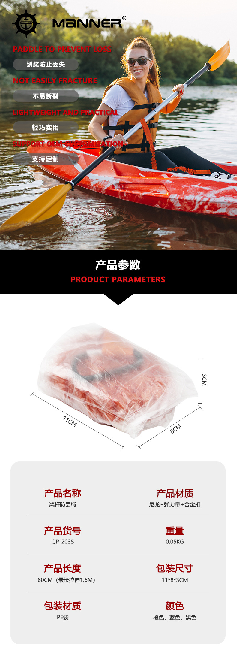 产品名称:QP-2035桨杆防丢绳(黑色/橙色/蓝色)