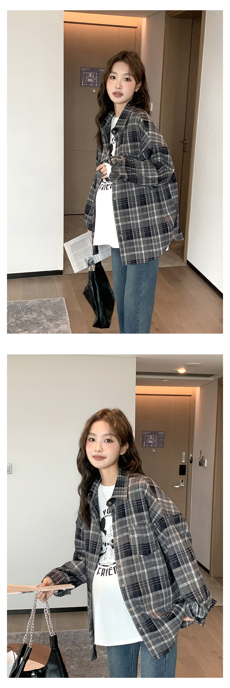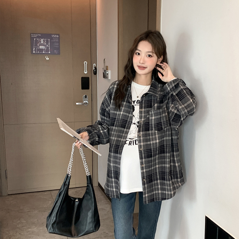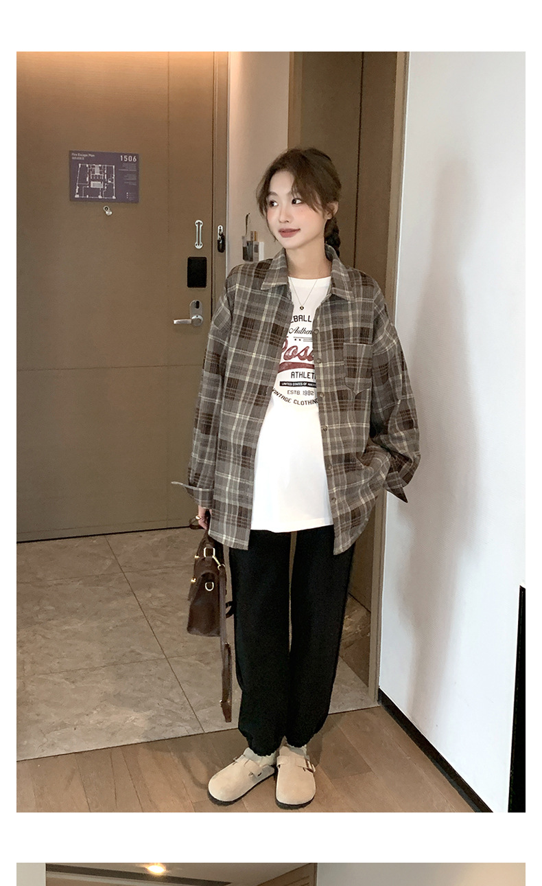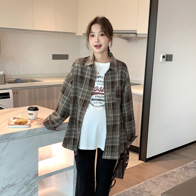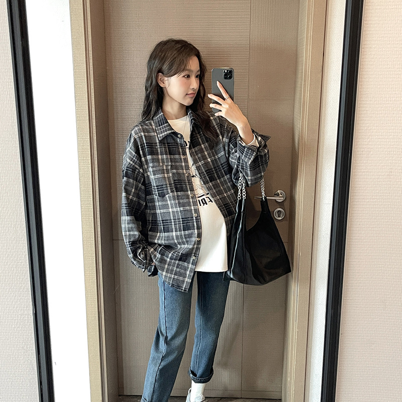 Осенне-зимняя женская одежда для беременных, клетчатая рубашка в Корейском стиле для беременных, Повседневная винтажная Свободная рубашка для беременных в западном стиле, Топ больших размеров