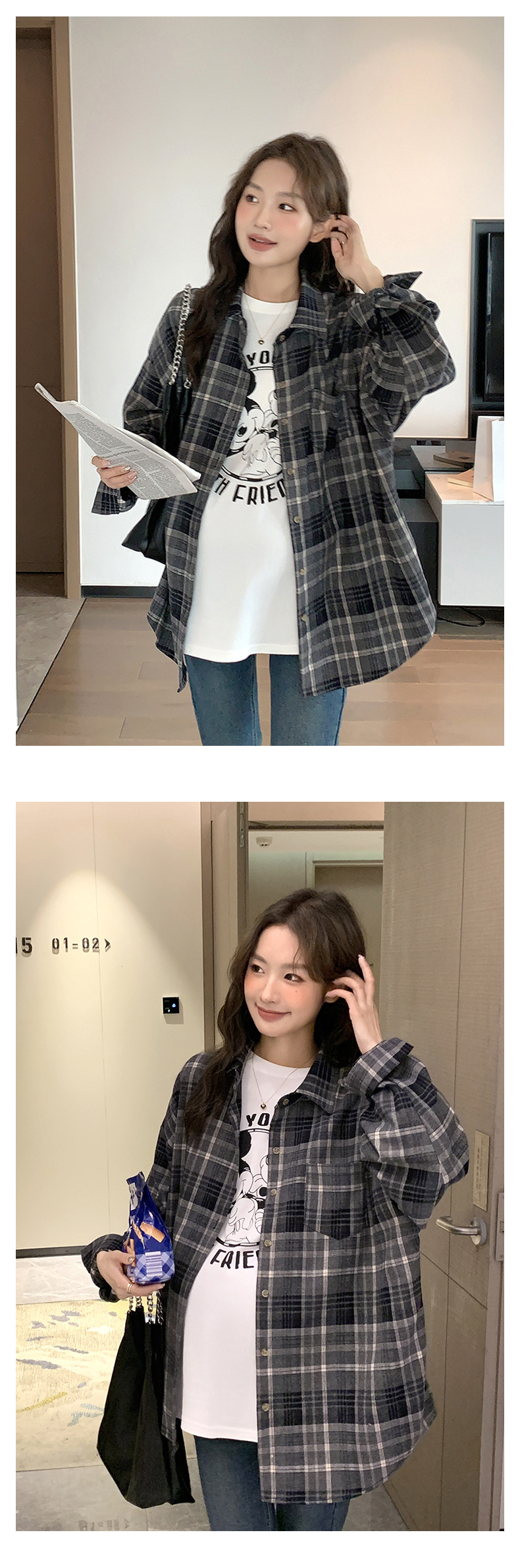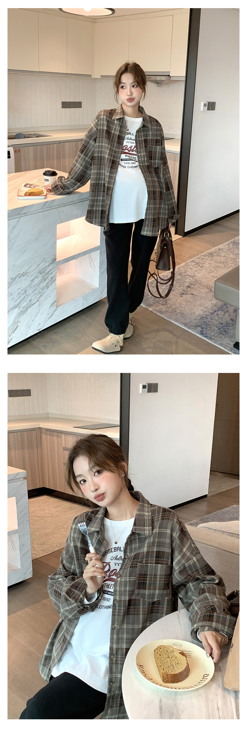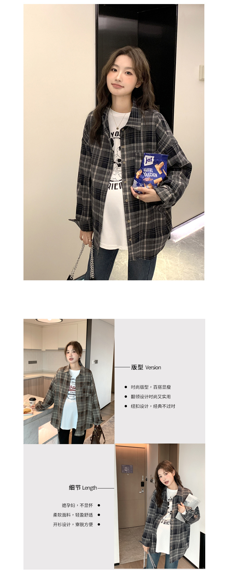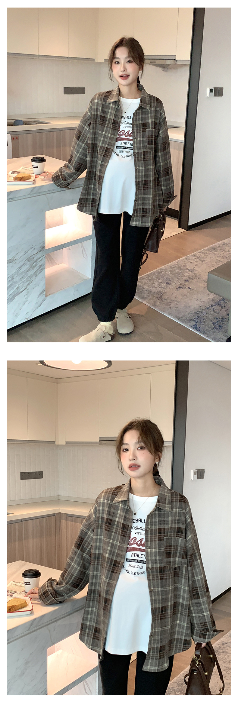 Осенне-зимняя женская одежда для беременных, клетчатая рубашка в Корейском стиле для беременных, Повседневная винтажная Свободная рубашка для беременных в западном стиле, Топ больших размеров