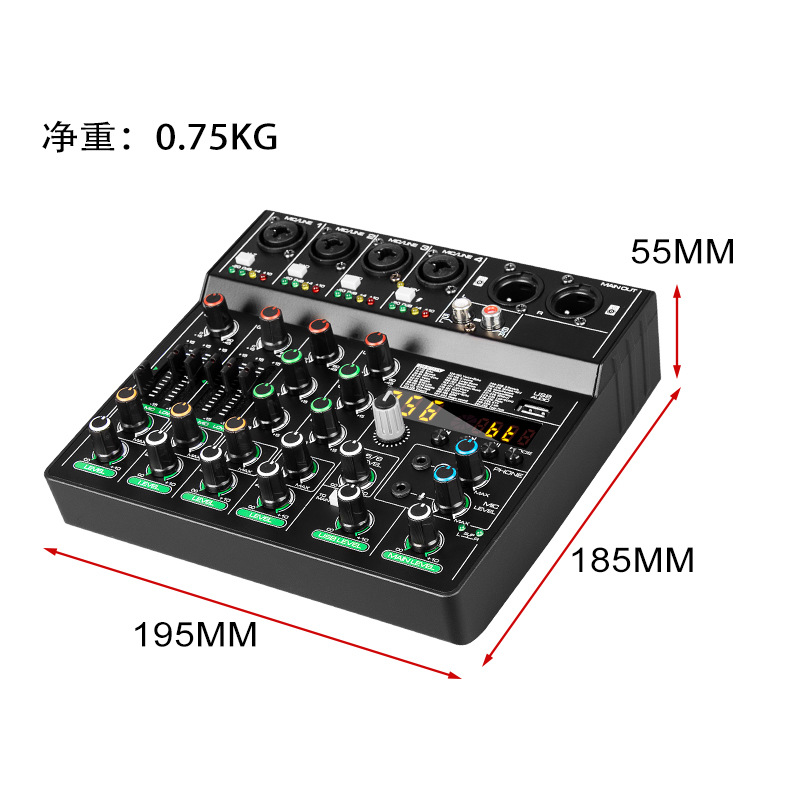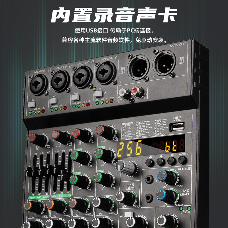 USB Bluetooth 6-полосный микшер 256 видов DSP сбалансированный эффект компьютерная запись конференции домашняя небольшая встреча на открытом воздухе