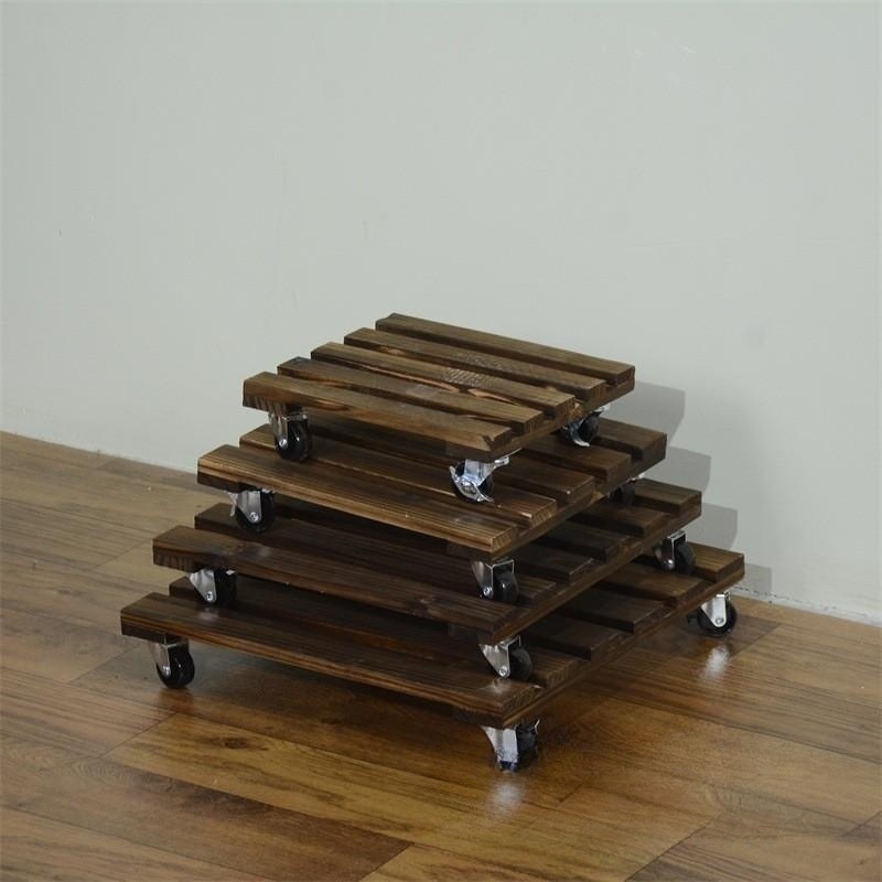 Оптовая продажа деревянного подвижного подноса для цветочных горшков, подноса для цветов из цельного дерева, универсального подноса для цветочных горшков на колесиках, деревянной подставки, деревянного подноса